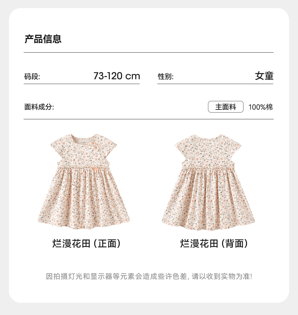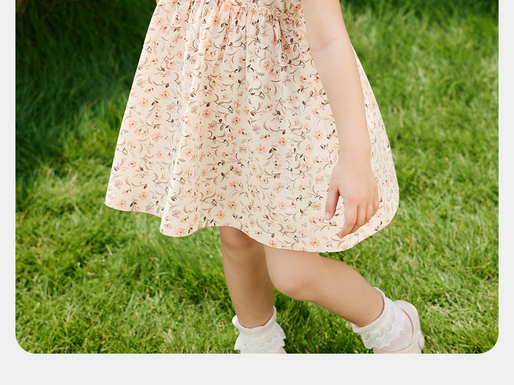 英氏女童连衣裙夏季短袖纯棉甜美女宝宝A字裙2025新款碎花裙