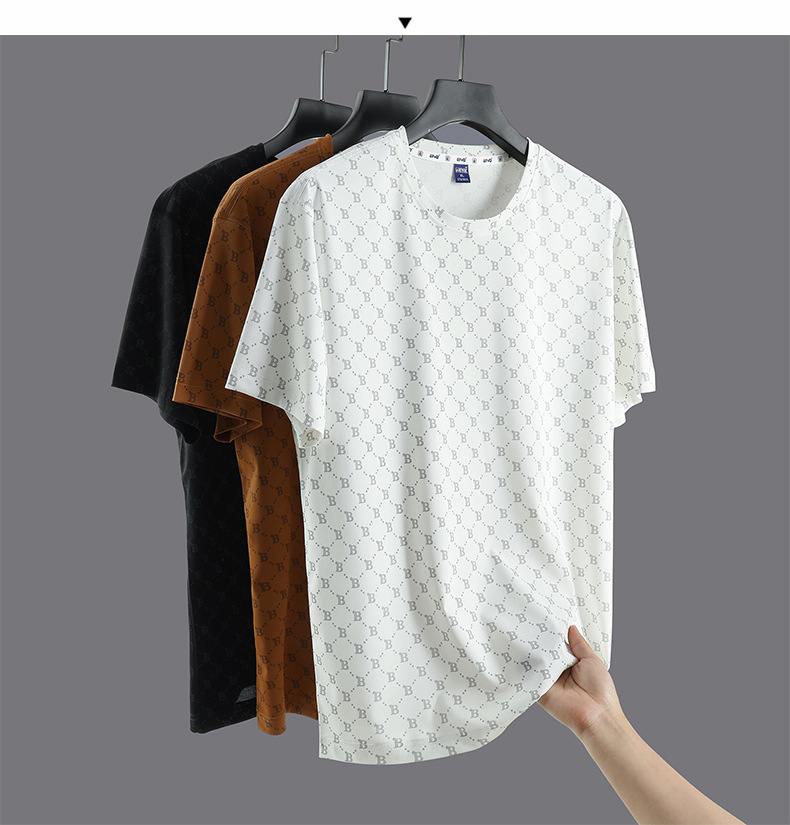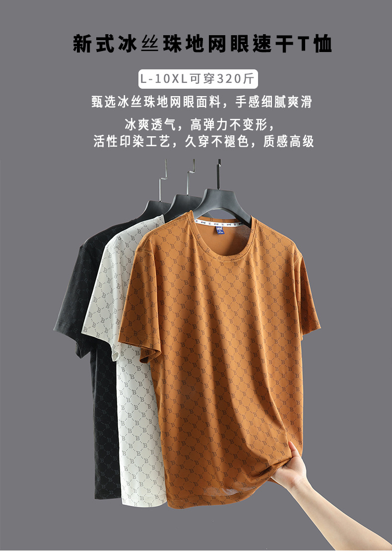 【超大码】【DH】大依优型大码冰丝T恤短袖潮流圆领宽松加大码五分袖上衣胖子300斤