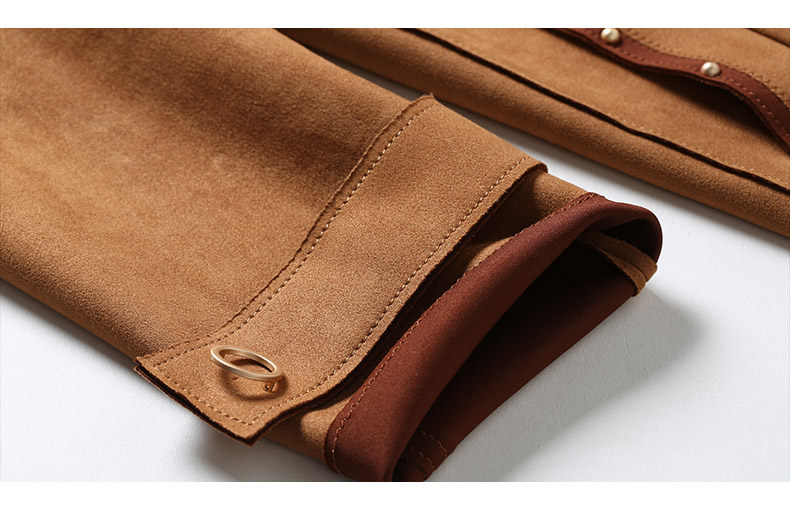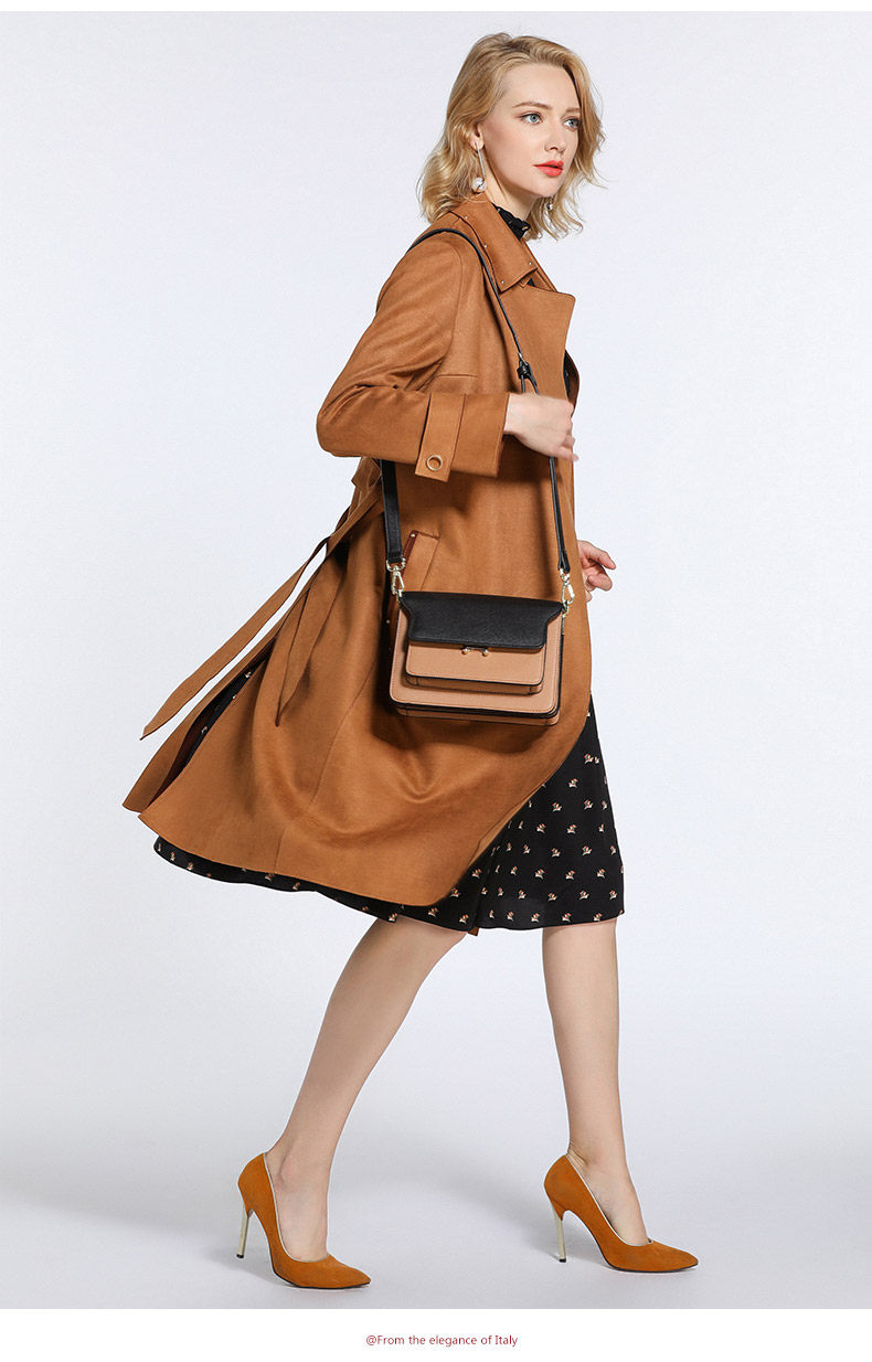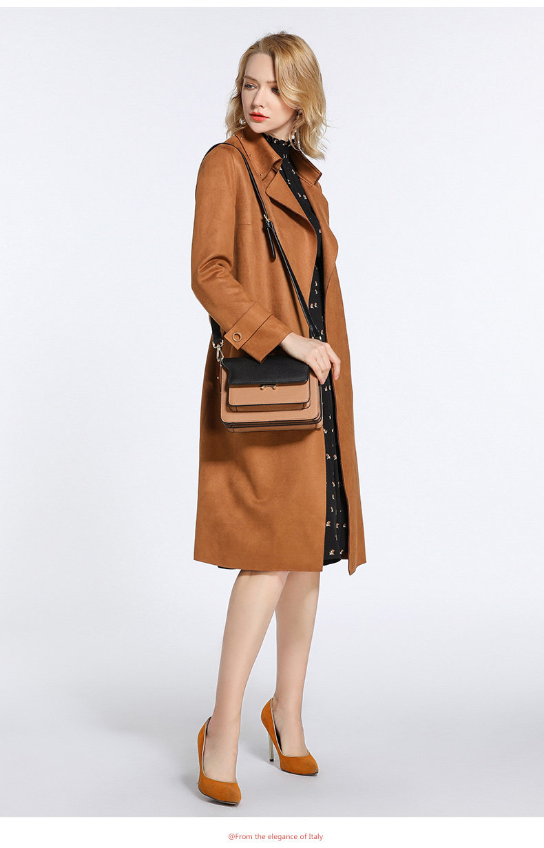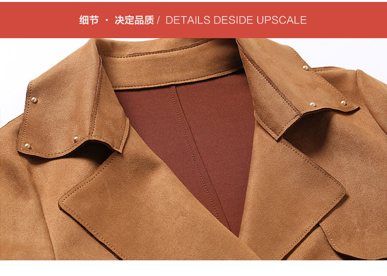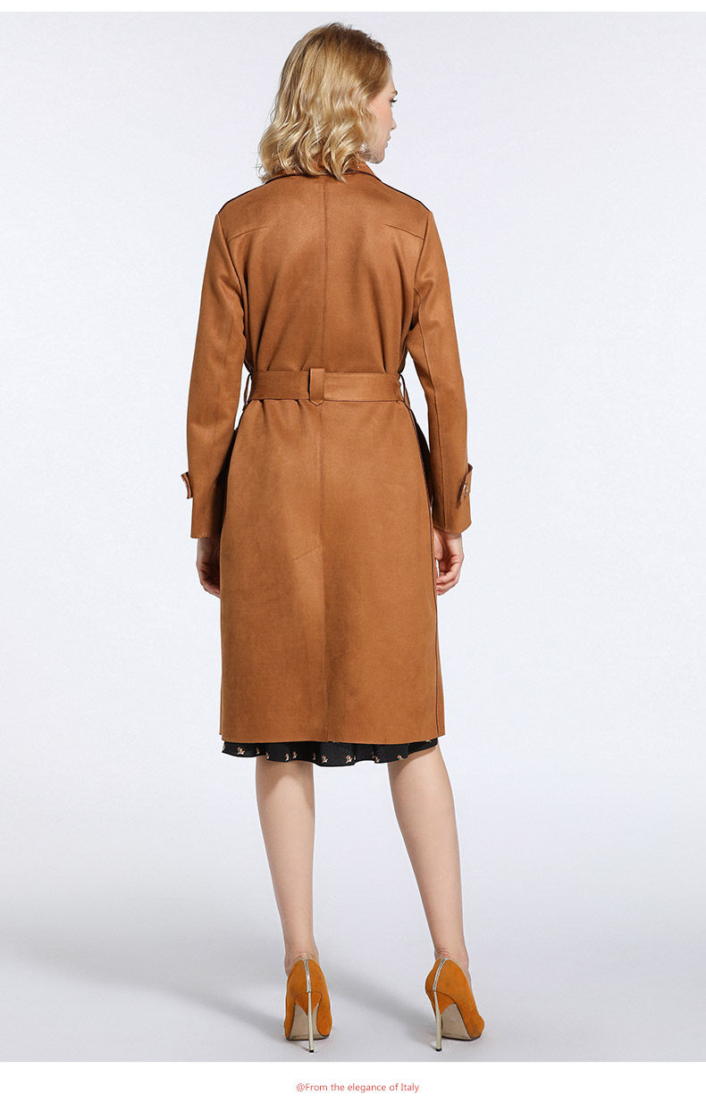 乔万尼春季风衣女中长款韩版鹿绒皮收腰系带纯色气质外套EB3A258