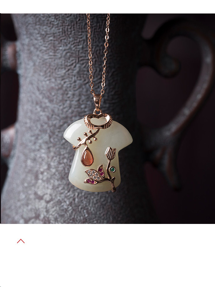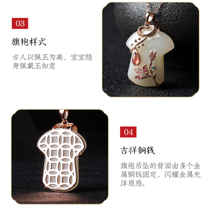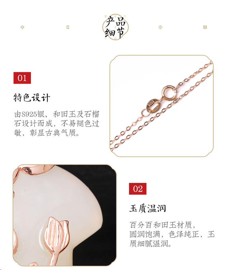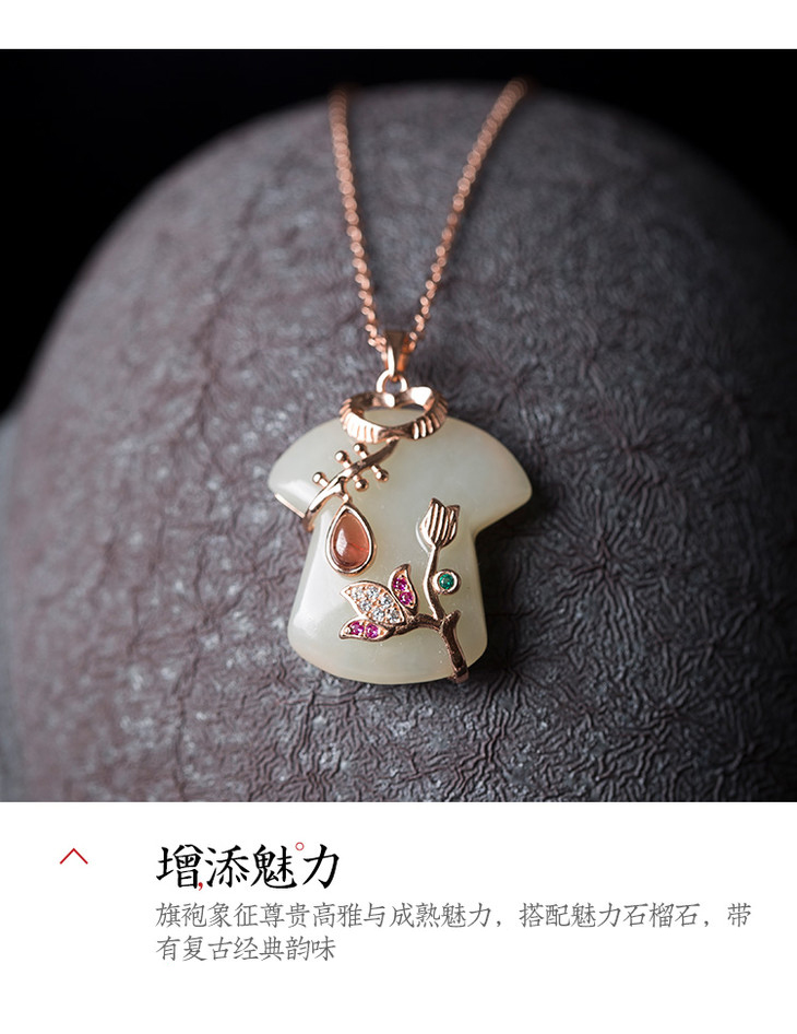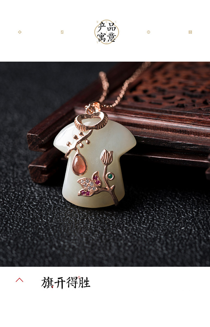 灵机吉品旗开得胜和田玉石榴石玫瑰金吊坠项链(配鉴定证书)
