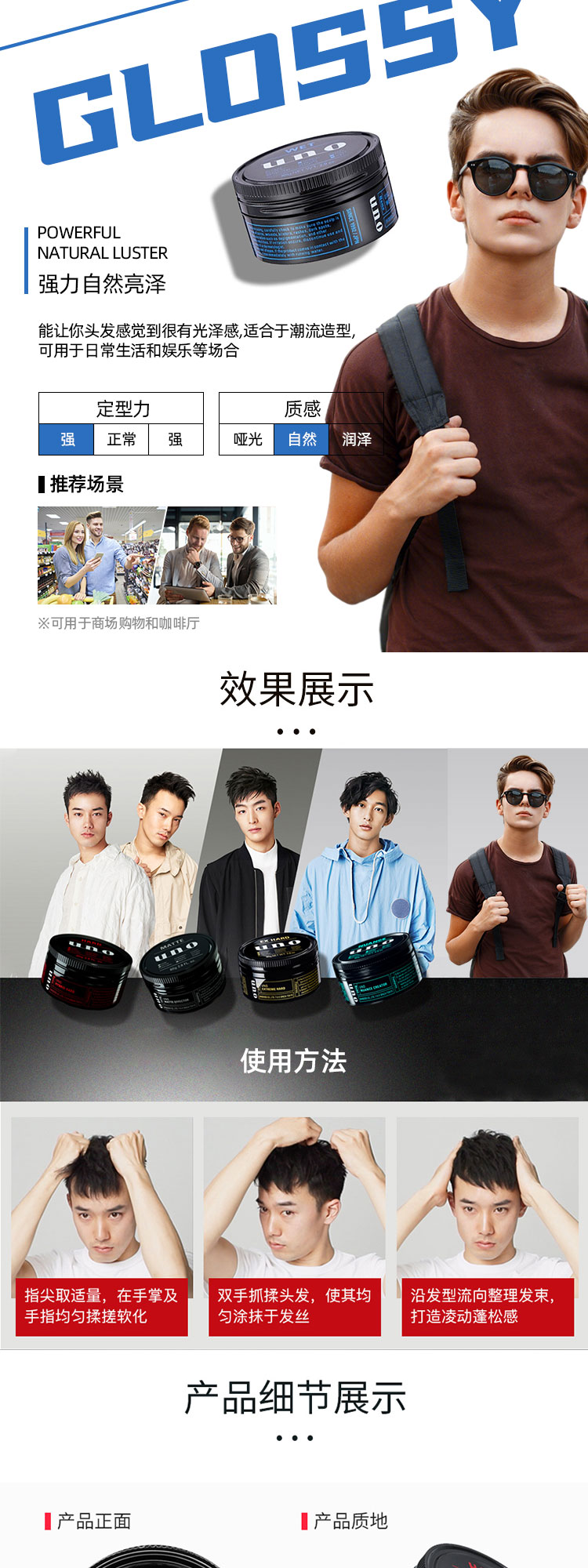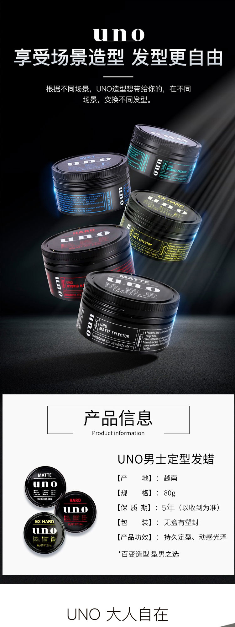 【保税直邮 南昌海关】资生堂UNO男士自然蓬松型发蜡80g