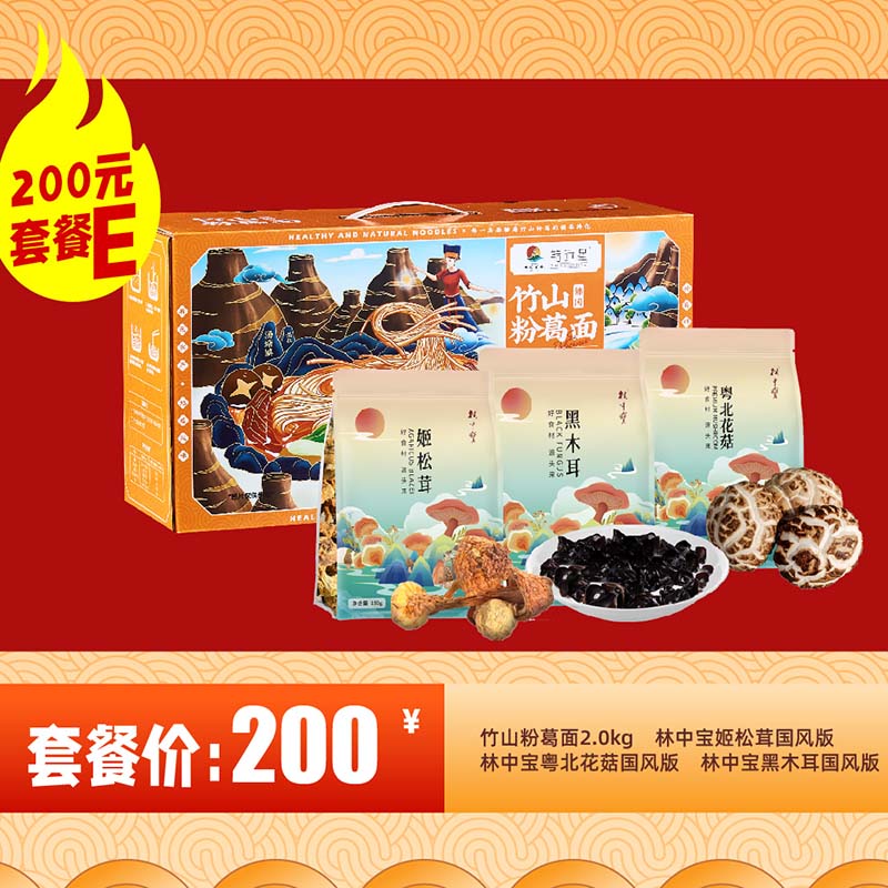 【200元套餐E】竹山粉葛面2.0kg+林中宝姬松茸国风版150g+林中宝粤北花菇国风版180g+林中宝黑木耳国风版200g