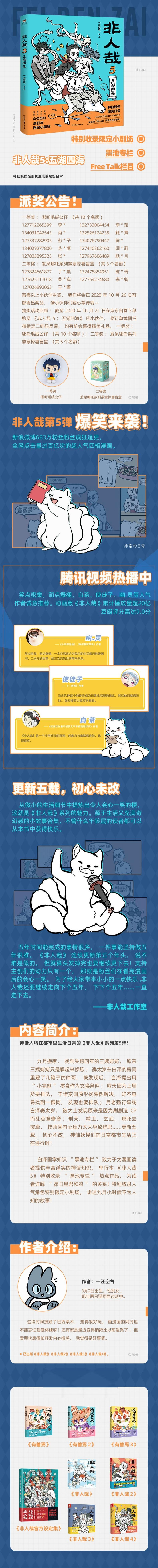 讲述神话人物在都市里生活日常的《非人哉》系列第5弹!九月搬家,找到失踪四年的三姨姥姥,原来三姨姥姥只是躲起来修炼;赛太岁在白泽的房间里藏了几箱子的帅哥,被发现后,白泽提出用“小完能”零食作为交换条件;哮天因为上厕所要排队,不惜变回原形找棵树解决,好不容易找到一棵树,发现也要排队;月老强行牵线白泽赛太岁,被大士发现原来是因为刷剧追CP而乱点鸳鸯谱;刑天、精卫、玄武、哪吒去按摩,技师因内心压力太大导致辞职……更新五载,初心不改,神仙妖怪们的日常都市生活正在进行时!