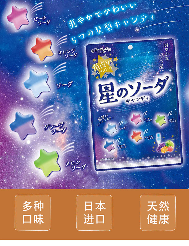【零食乳饮】85gSENJAKU星星造型水果味糖果 日本进口 天然健康