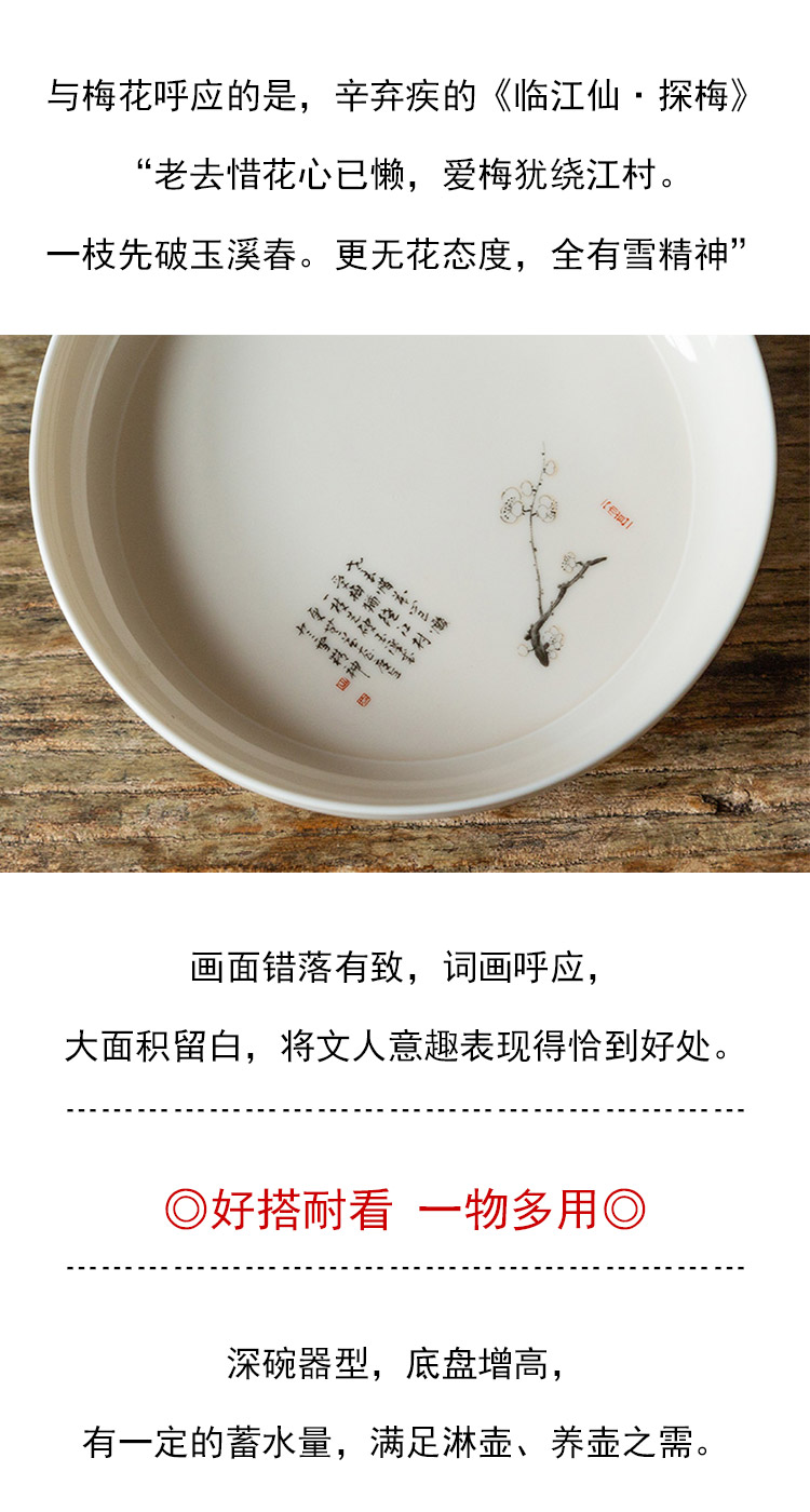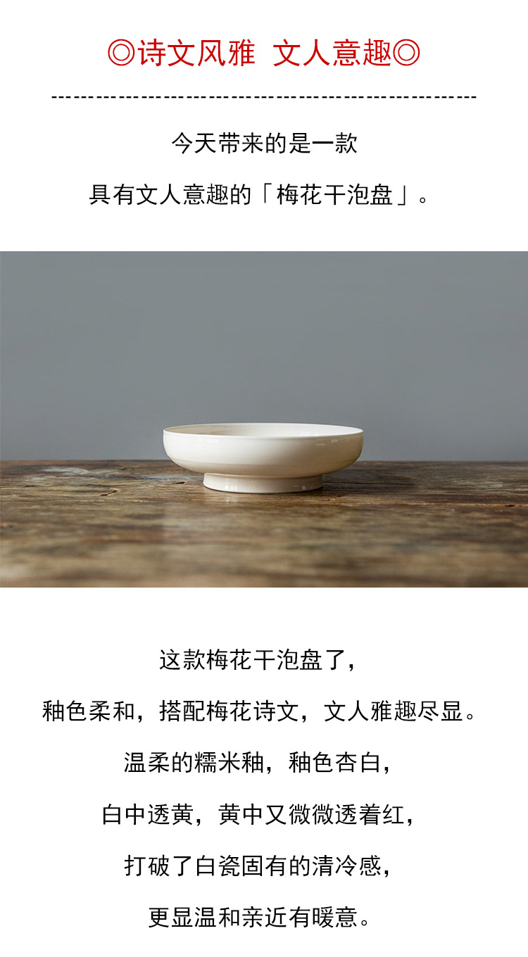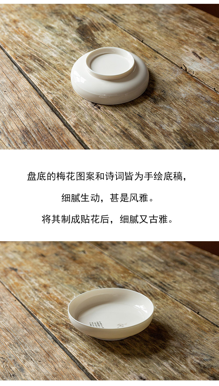 茶香记 杏白釉梅花干泡盘陶瓷壶承茶盘茶桌零配糯米釉素雅点心盘