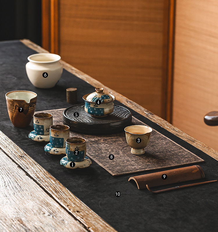 茶香记粗陶堆绘蓝布花拼·甜甜圈杯垫可爱实用杯托防烫茶道零配
