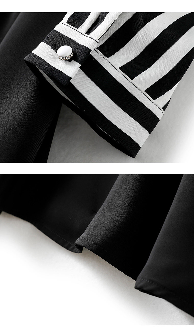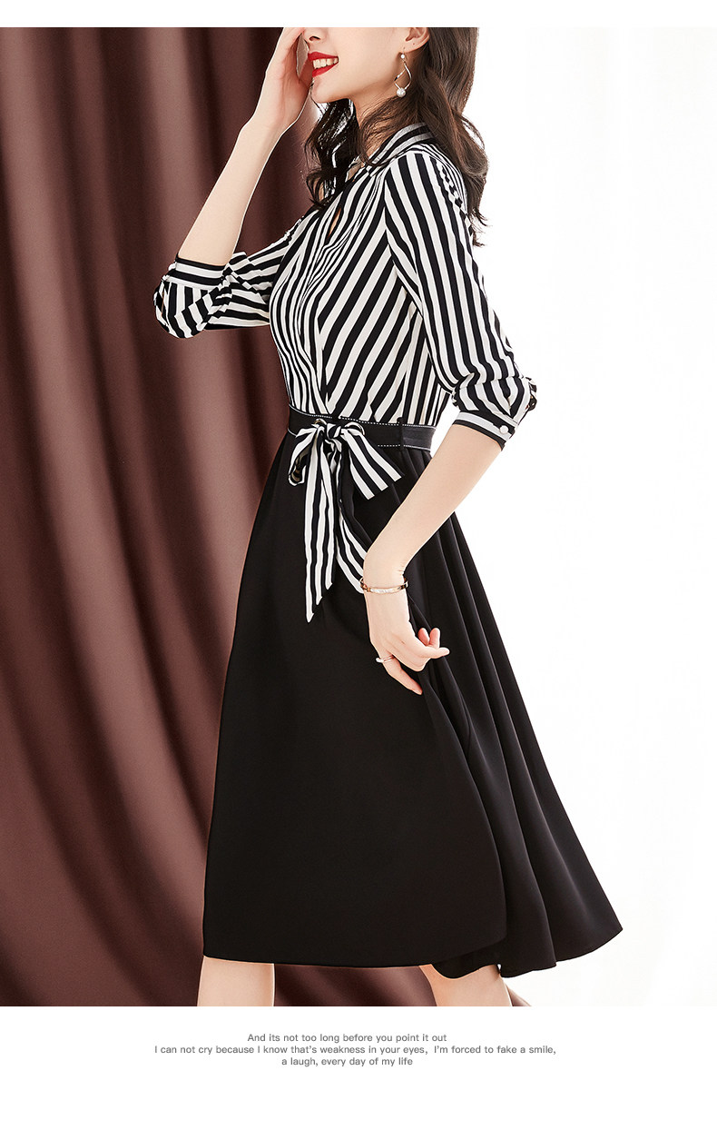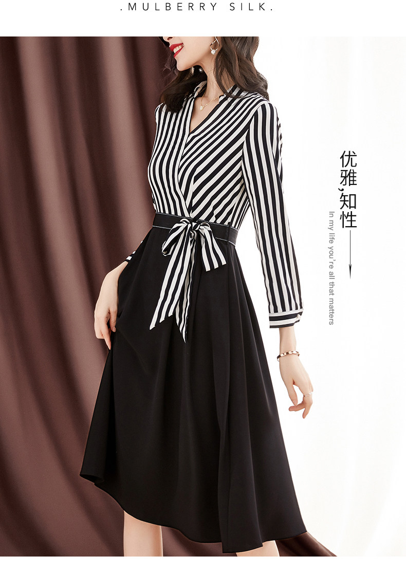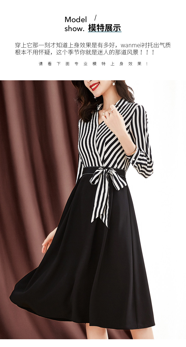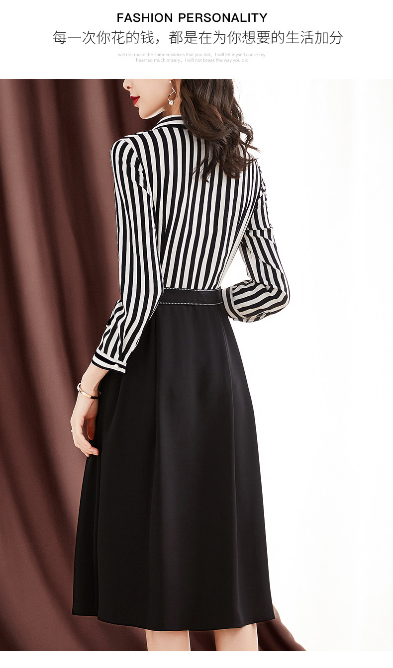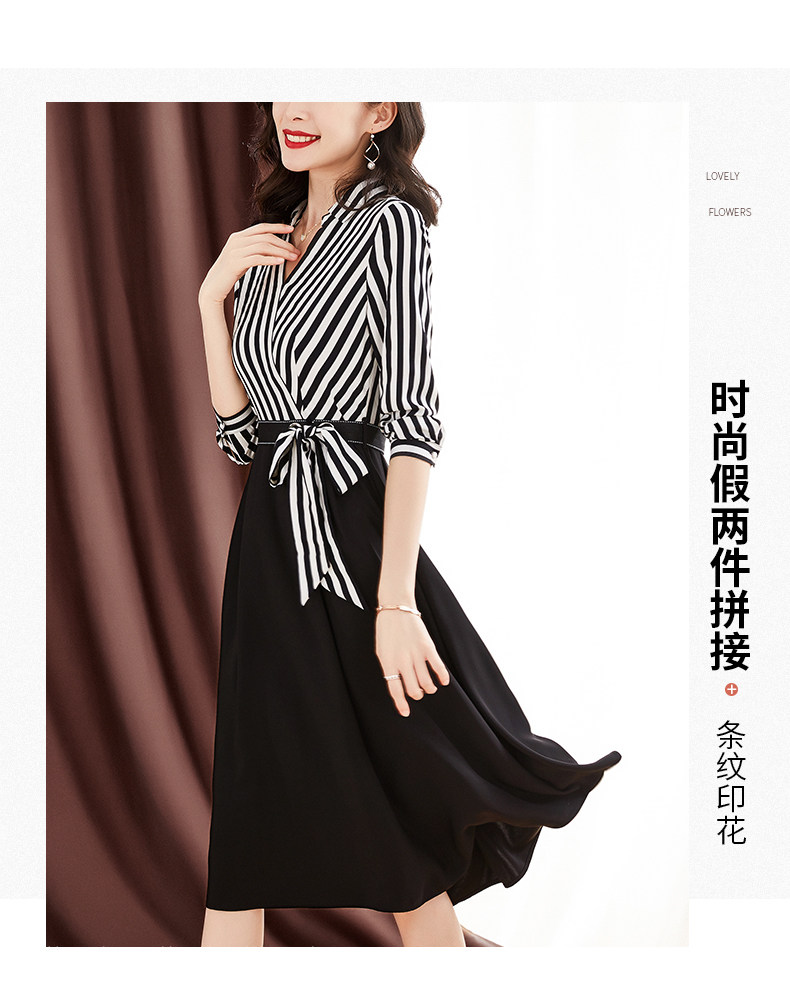 上海旗袍厂QS-8201616新款妈妈春秋装长袖条纹连衣裙中年女气质时尚拼接假两件裙子
