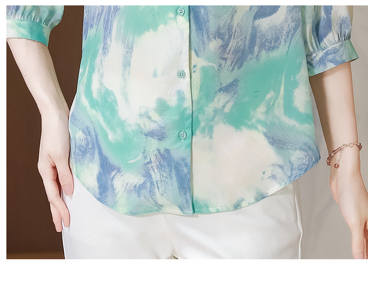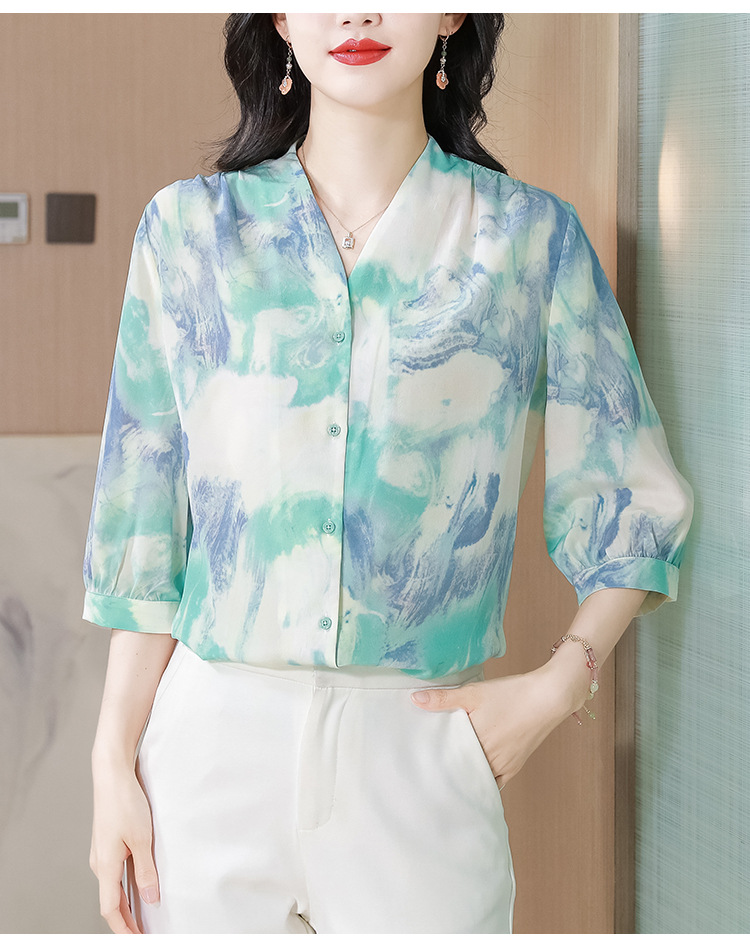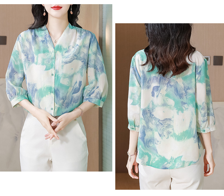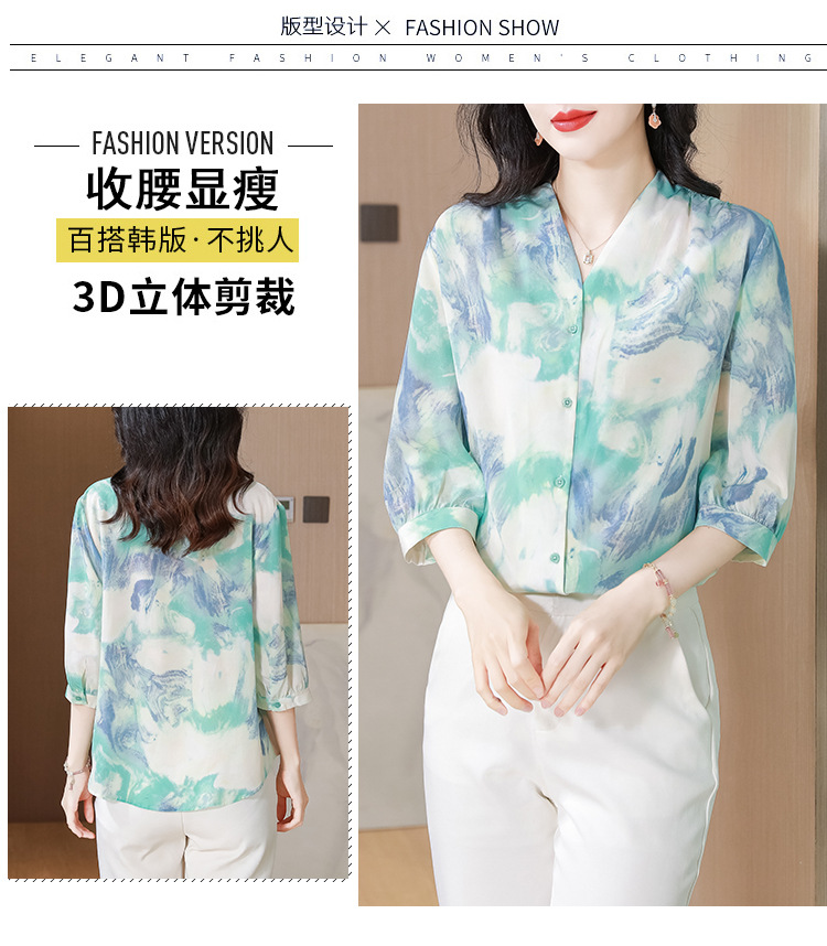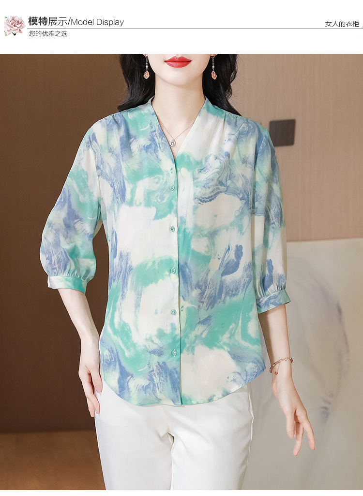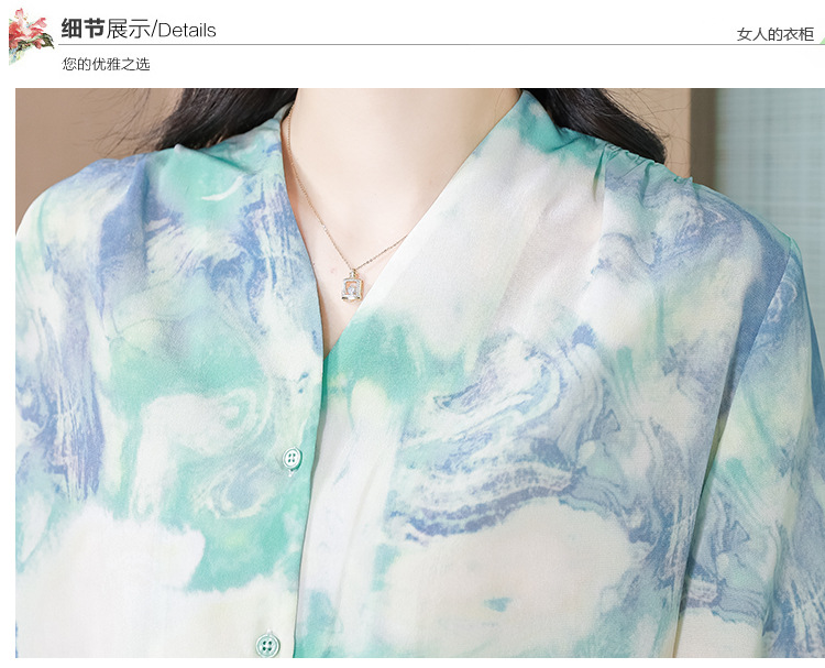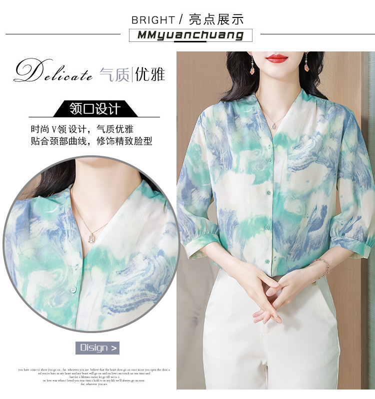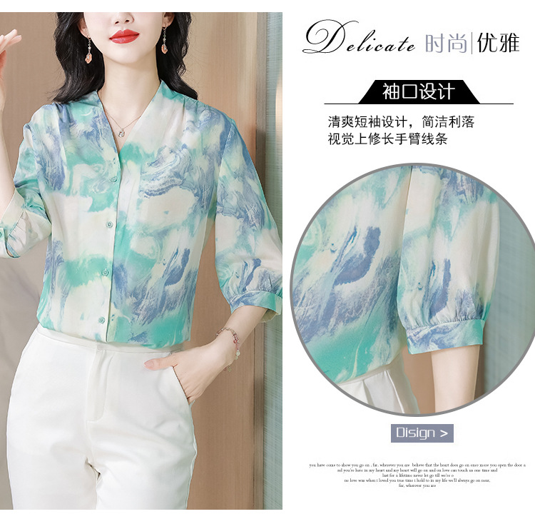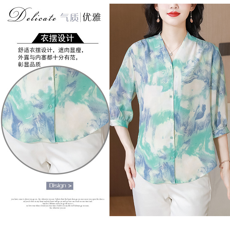 A32318高品质大码遮肉减龄中年女晕染真丝T恤上衣桑蚕丝薄款夏新款衬衫