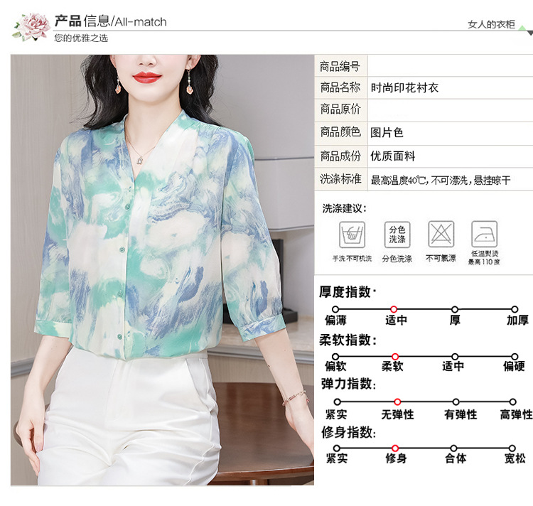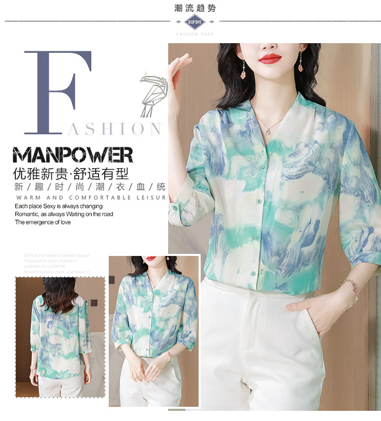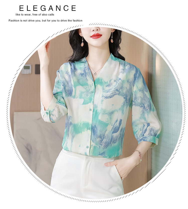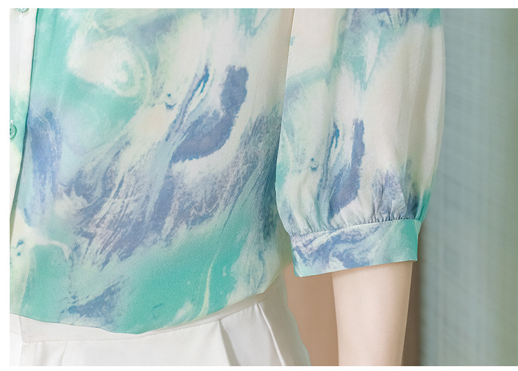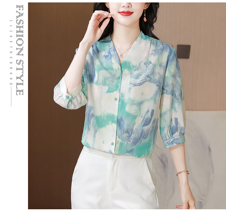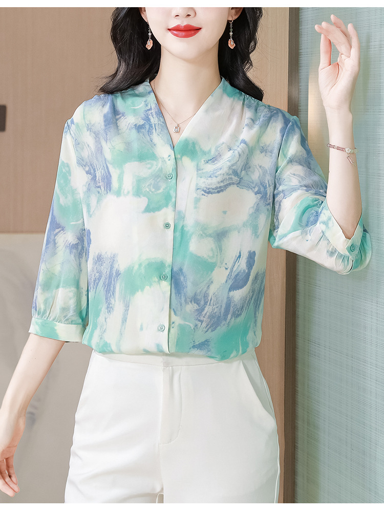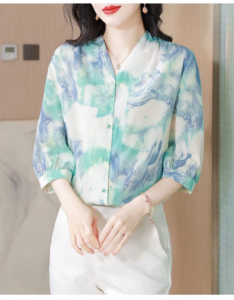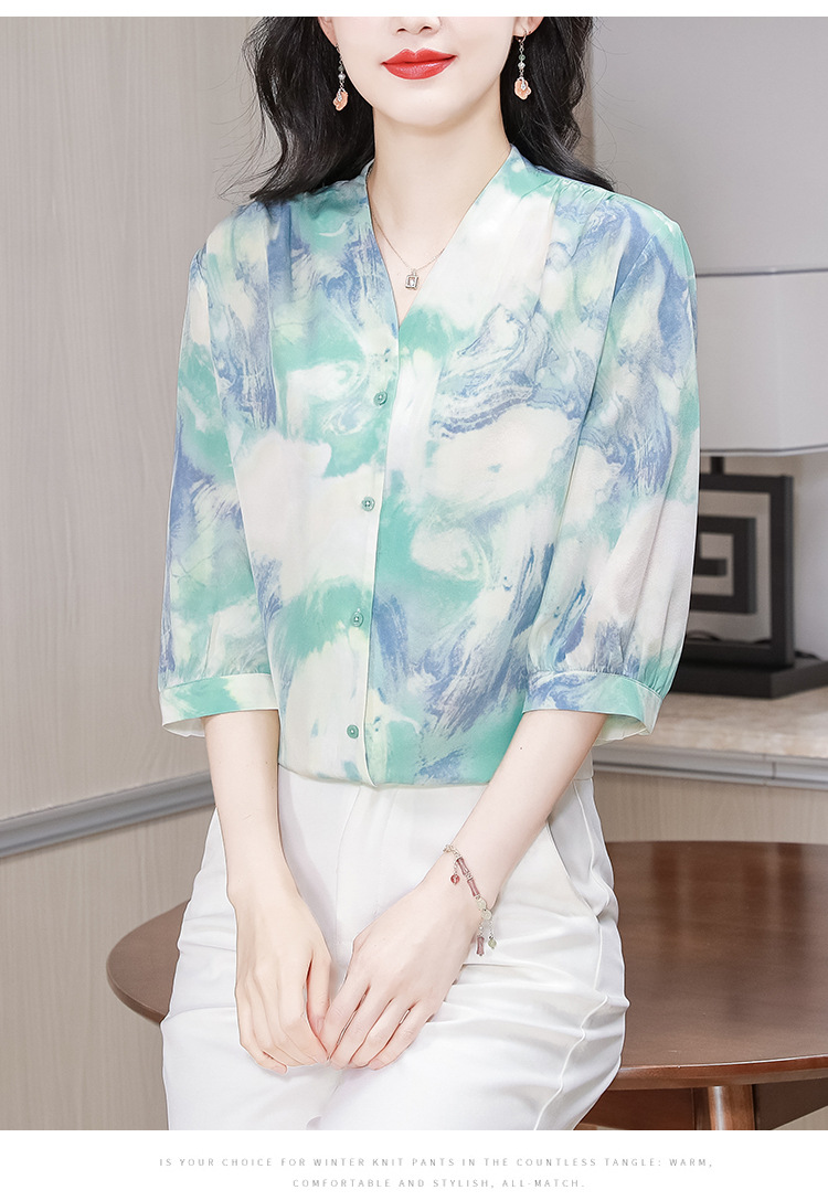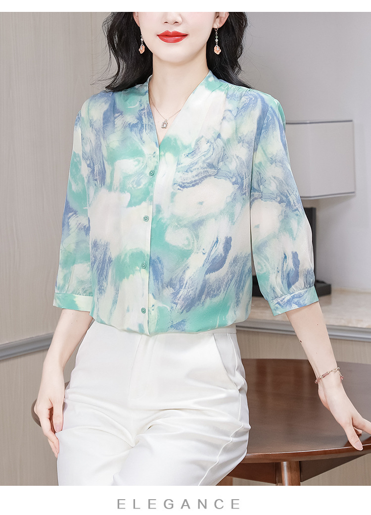 A32318高品质大码遮肉减龄中年女晕染真丝T恤上衣桑蚕丝薄款夏新款衬衫