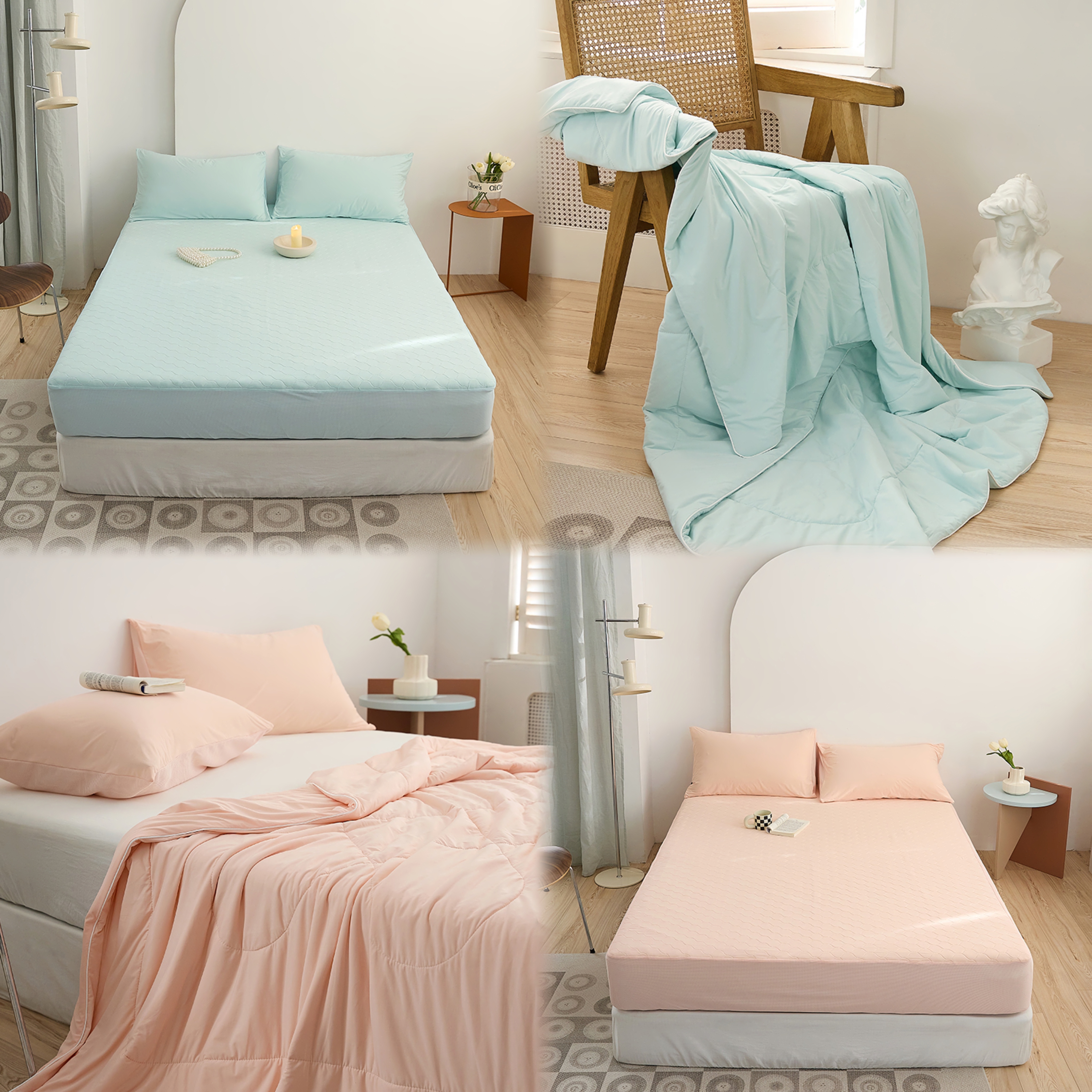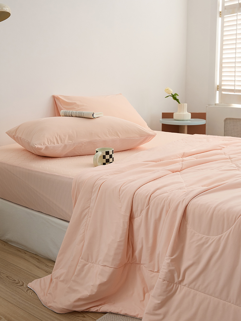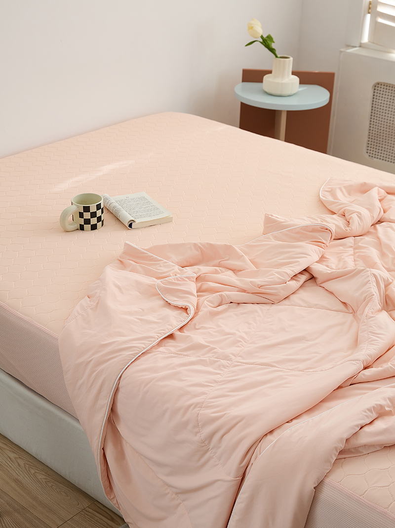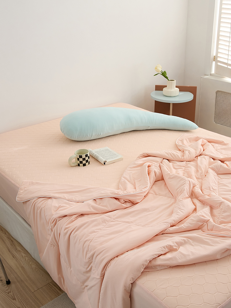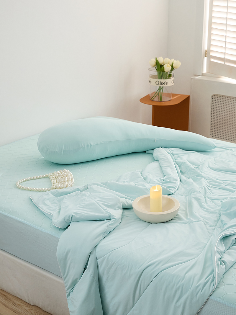自带凉感让受不了空调冷气的怕冷人群在夏天也能拥有凉而不冰的清凉感;而怕热人群用凉感被凉凉席+空调躺下能迅速降温。