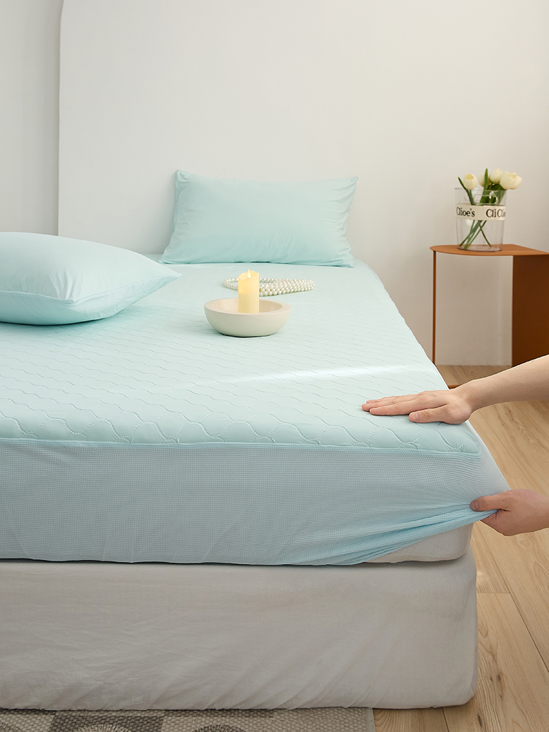 凉凉可水洗床垫,接触即刻凉快,打破我们印象中那种硬硬凉席的不好感,凉垫反面采用网眼蜂窝层结构高弹透气不粘身。面料顺滑不易勾丝,触感丝滑。且此次升级做了床笠款,更好的贴合床不易移位。