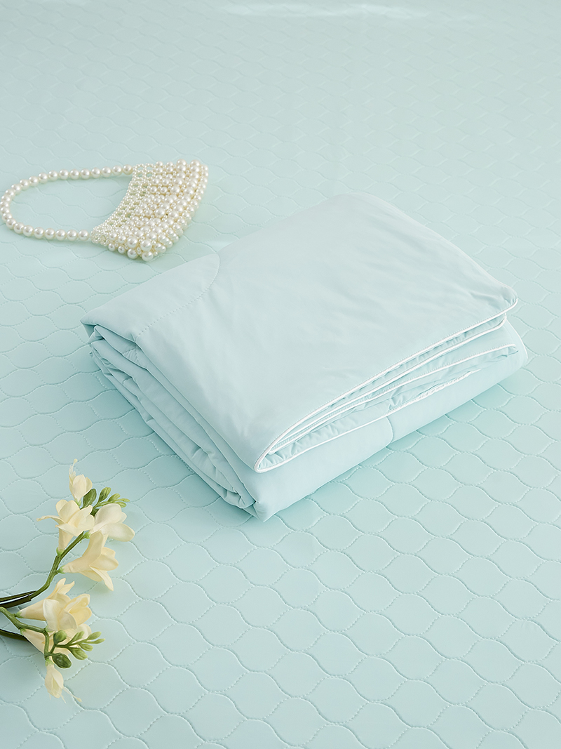 表布采用清凉和柔软集一身的锦氨面料,填充的是“晶凉纤维”的中棉(凉凉被),什么是晶凉纤维呢?1、接触凉感-超高的热传导系数,凉感效果不受洗涤次数影响;2、吸汗排湿-特殊的结构能迅速吸收蒸发皮肤表面的湿气和汗水;3、轻盈柔软-纤度和结构经过科技处理,质地轻盈,柔软舒适。