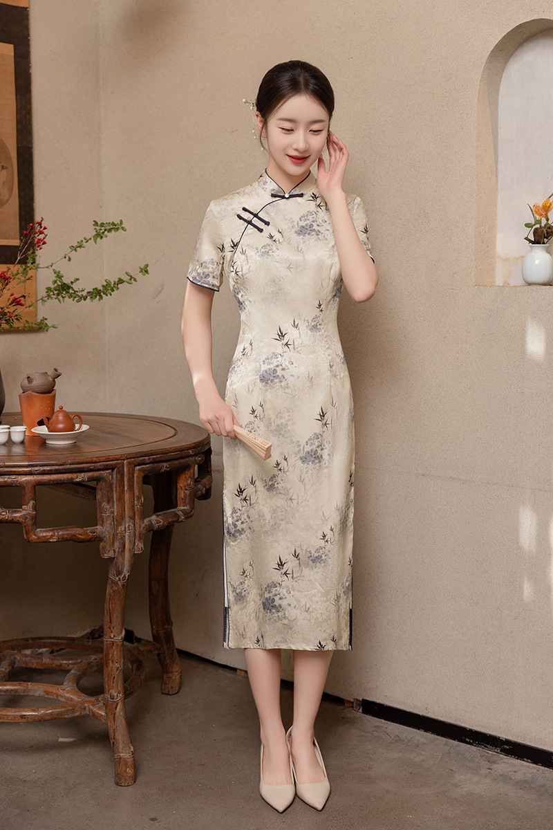 ZAYS2026夏新款旗袍短袖中长改良年轻款少女双层提花连衣裙