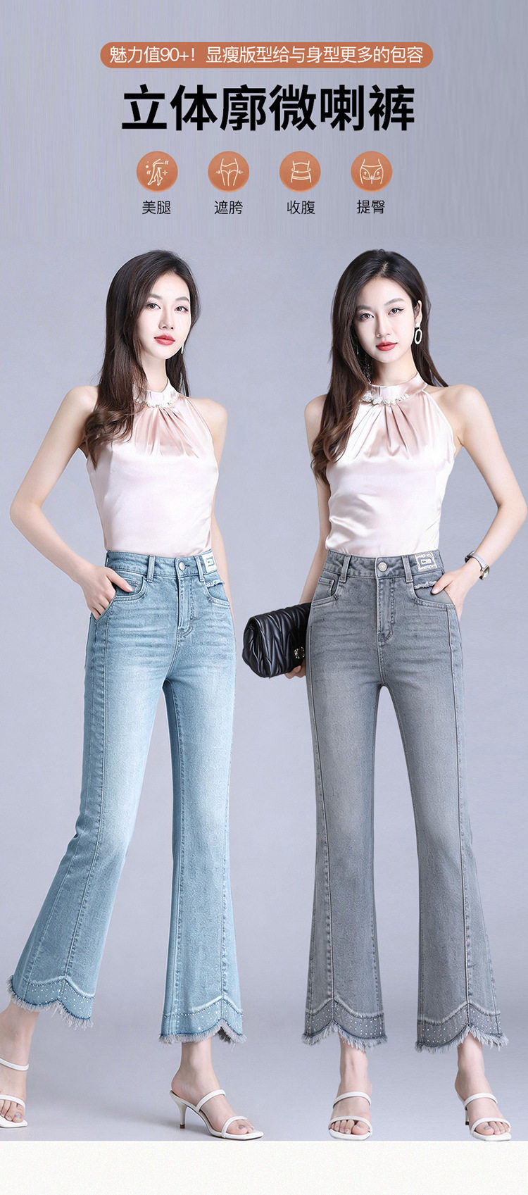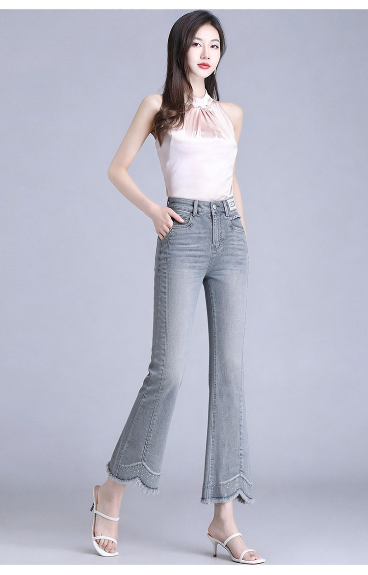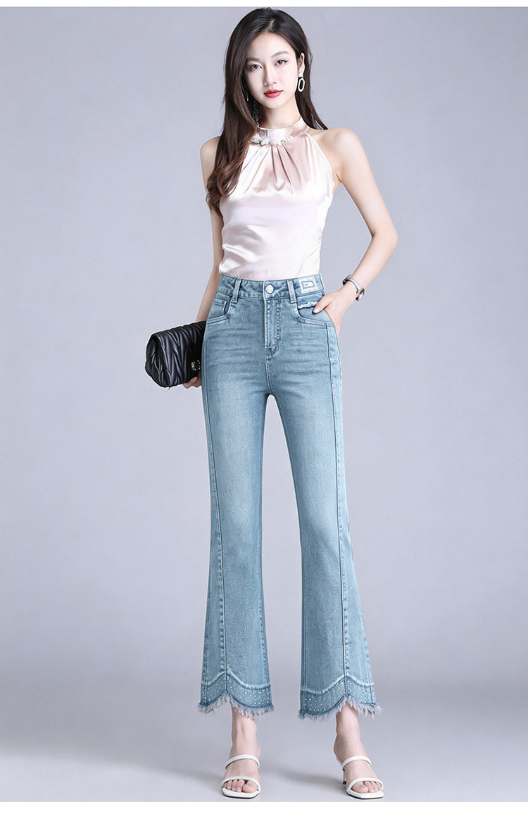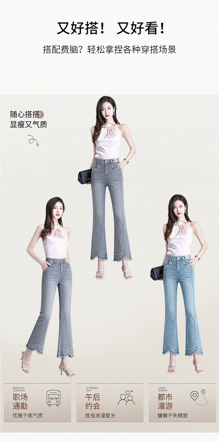 「自」全新升级【铂金会员183/天猫239/差价56】(12921)洛诗琳气质不规则微喇牛仔裤女2026夏季高腰修身百搭九分