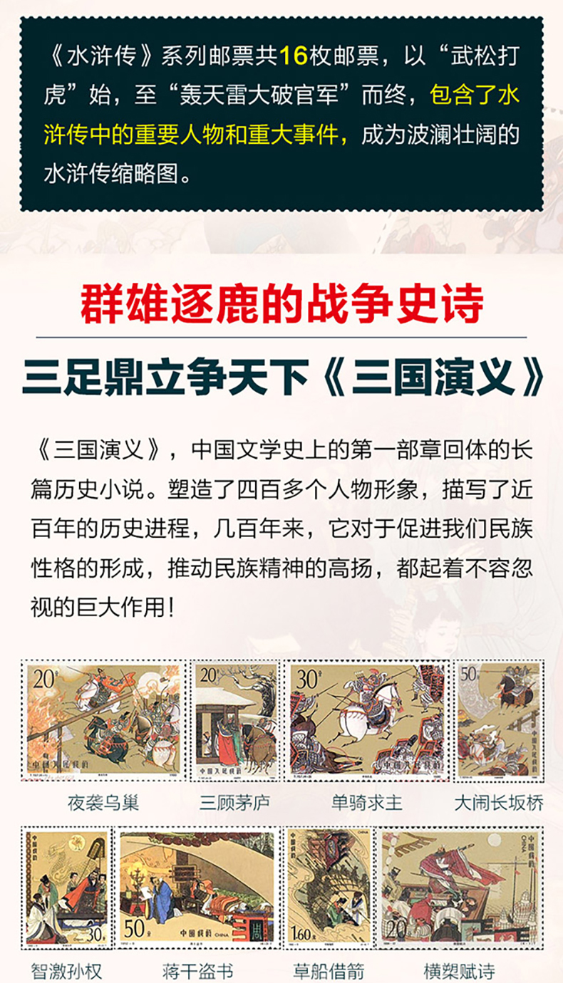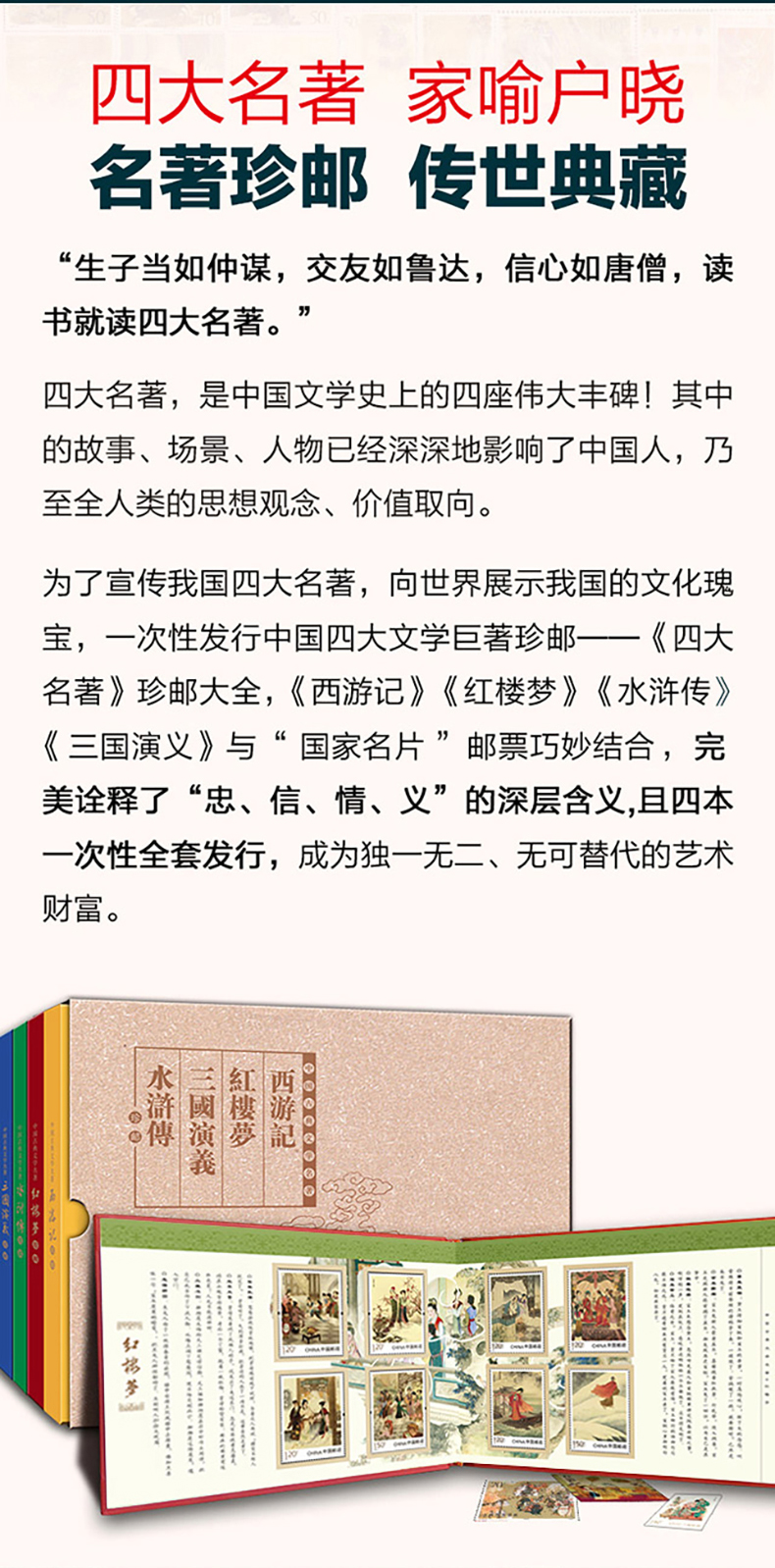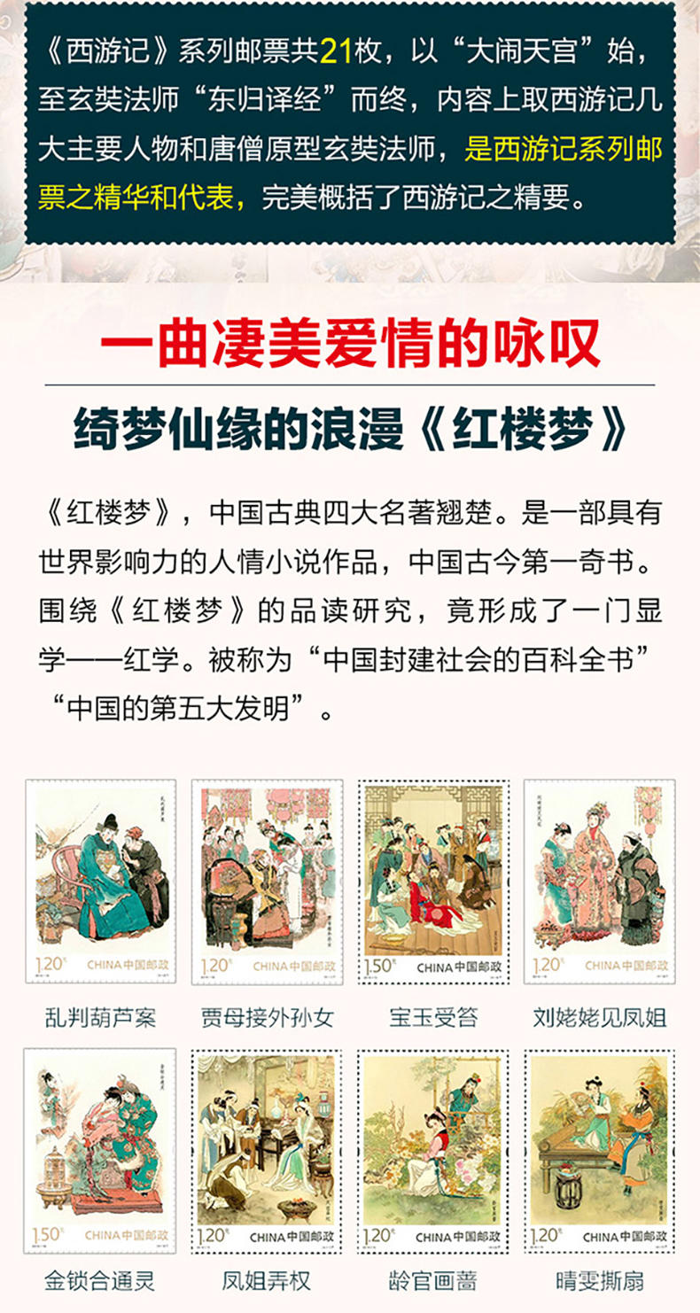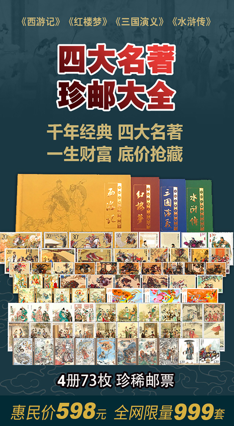 中国古典文学四大名著珍邮 千年经典 一生珍藏 4册73枚 珍稀邮票