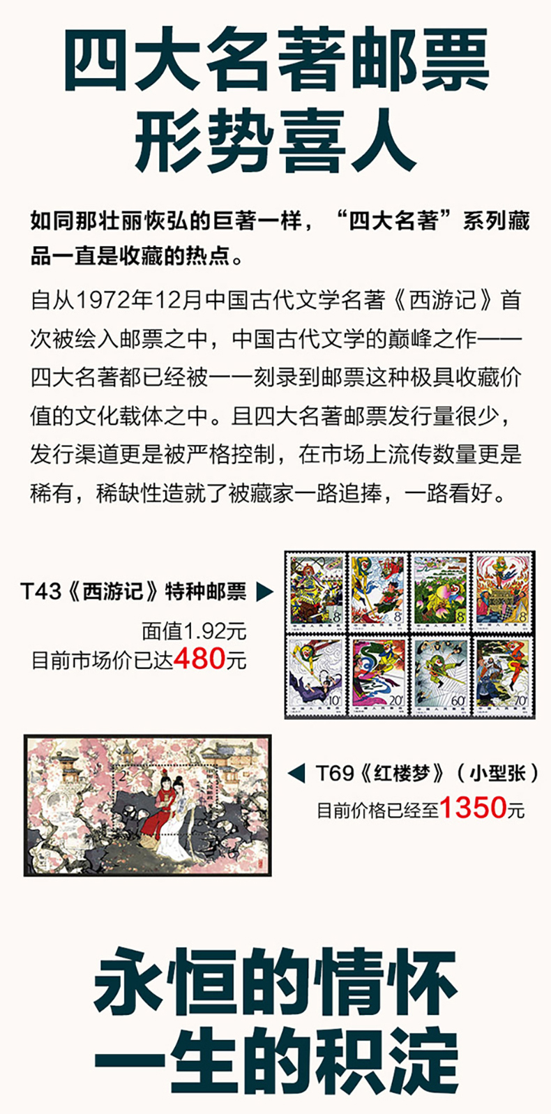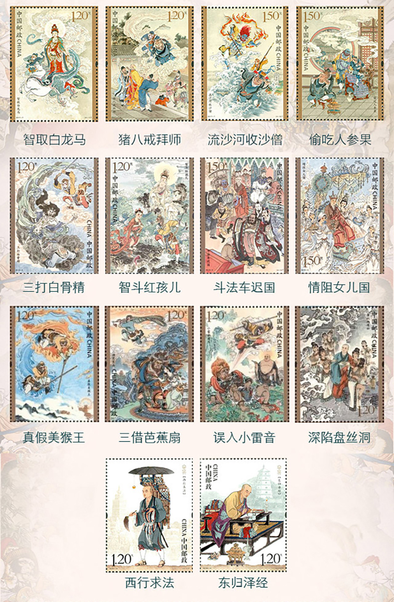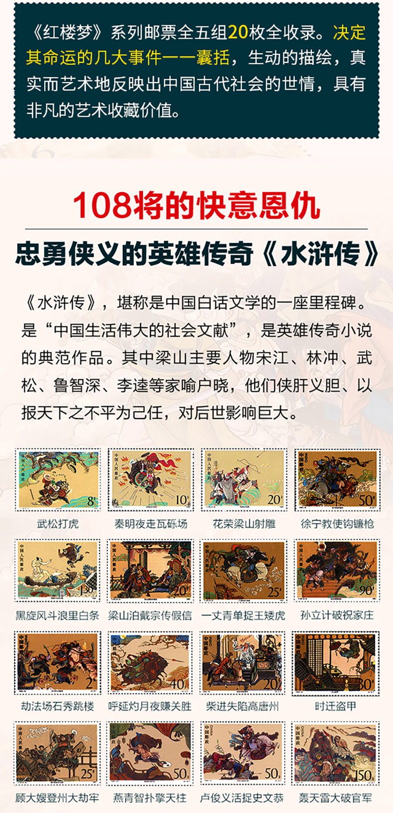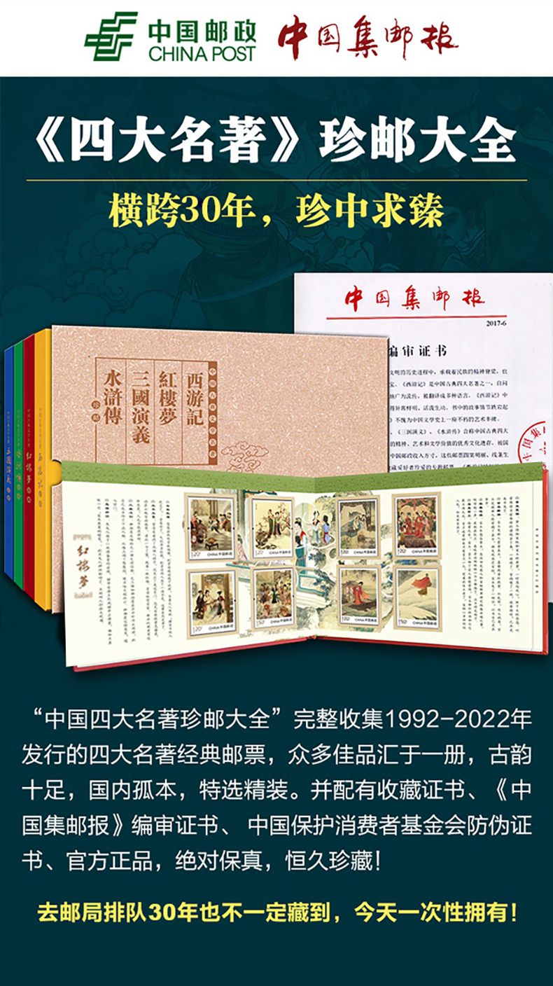 中国古典文学四大名著珍邮 千年经典 一生珍藏 4册73枚 珍稀邮票