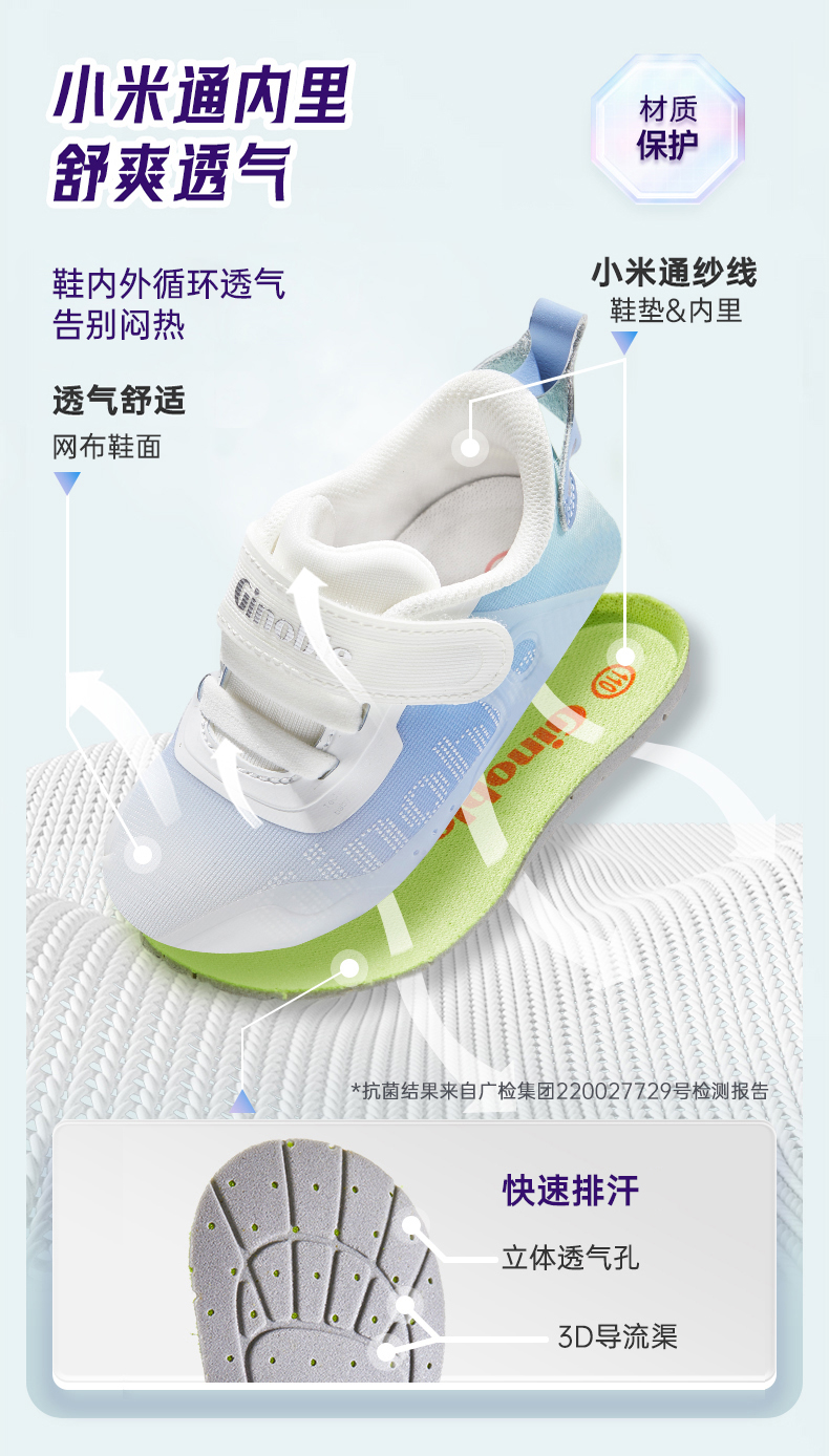 基诺浦机能鞋夏季小童鞋透气畅跑系列GY1586