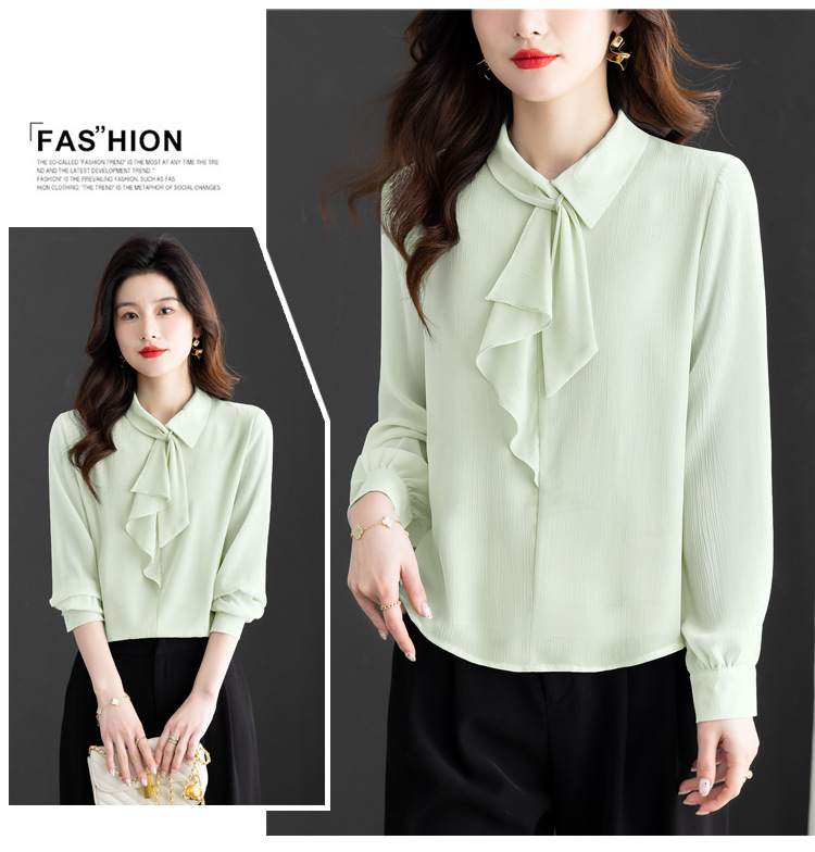 雀说法式气质衬衫新款设计感洋气减龄飘带长袖上衣AL1802