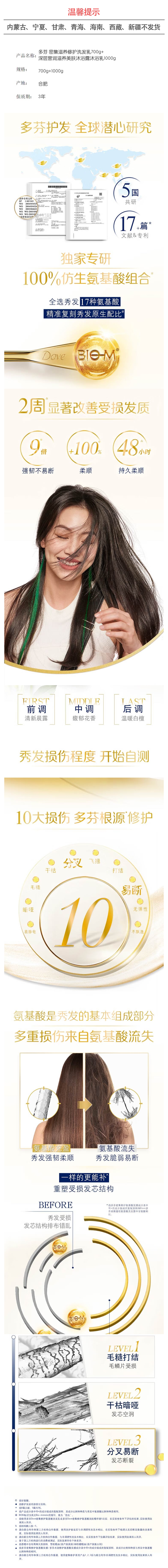 多芬 密集滋养修护洗发乳700g+深层营润滋养美肤沐浴露沐浴乳1000g 6902088113846