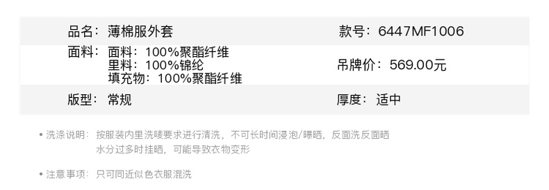 卡尔美方寸之间系列男士冬季新款薄棉服外套