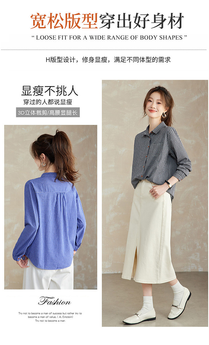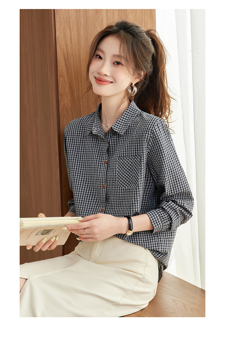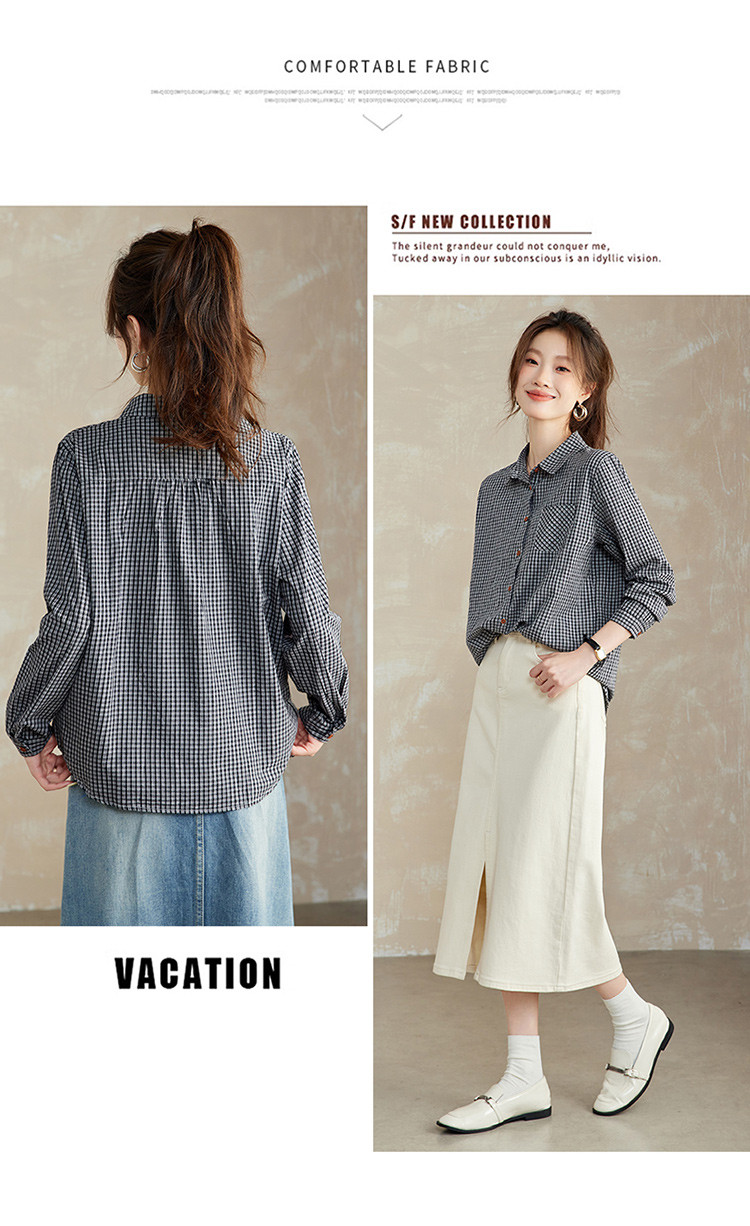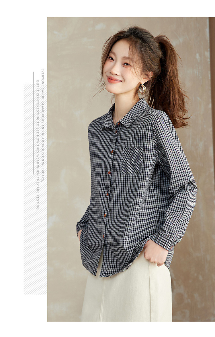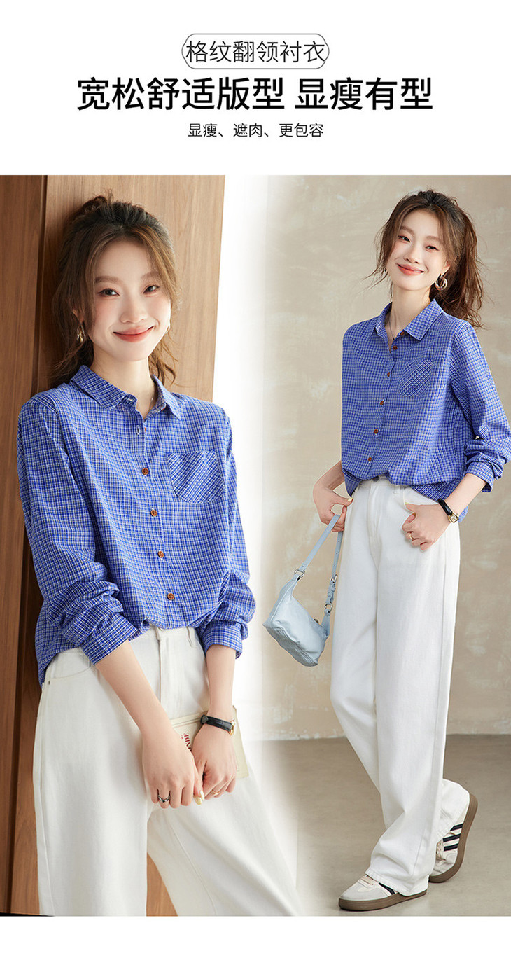 【预售3天】PY-2025年新款格子衬衫女春秋法式设计感衬衣长袖上衣XY&9587