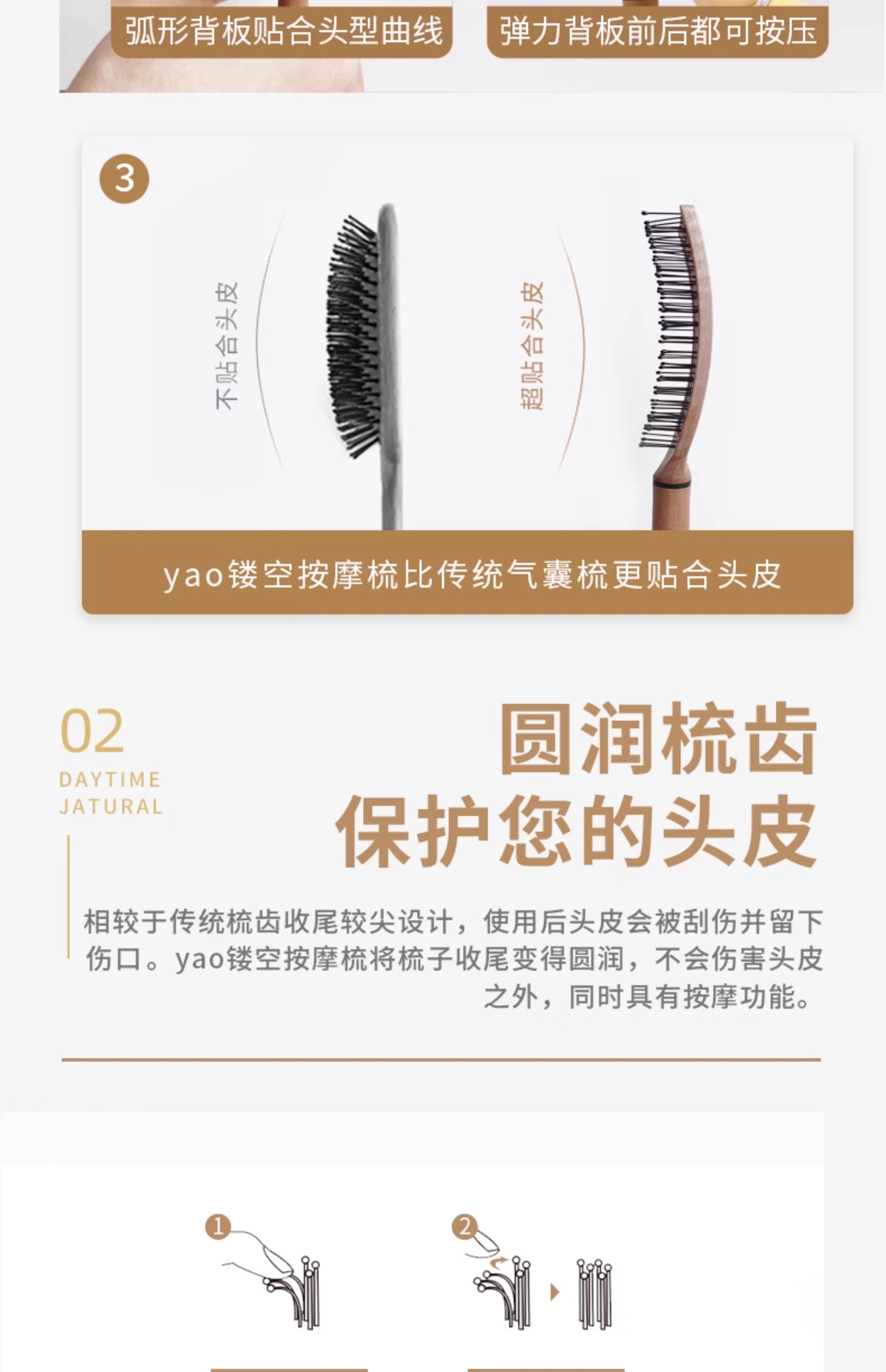 韩国Yao镂空按摩梳四指梳尼龙梳