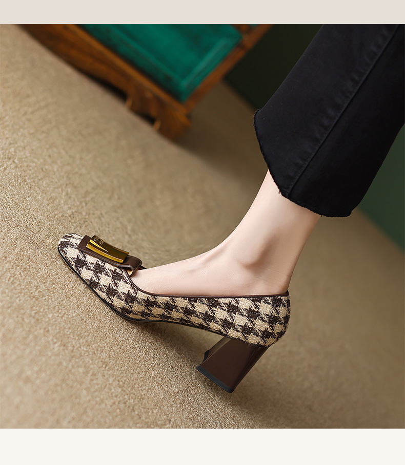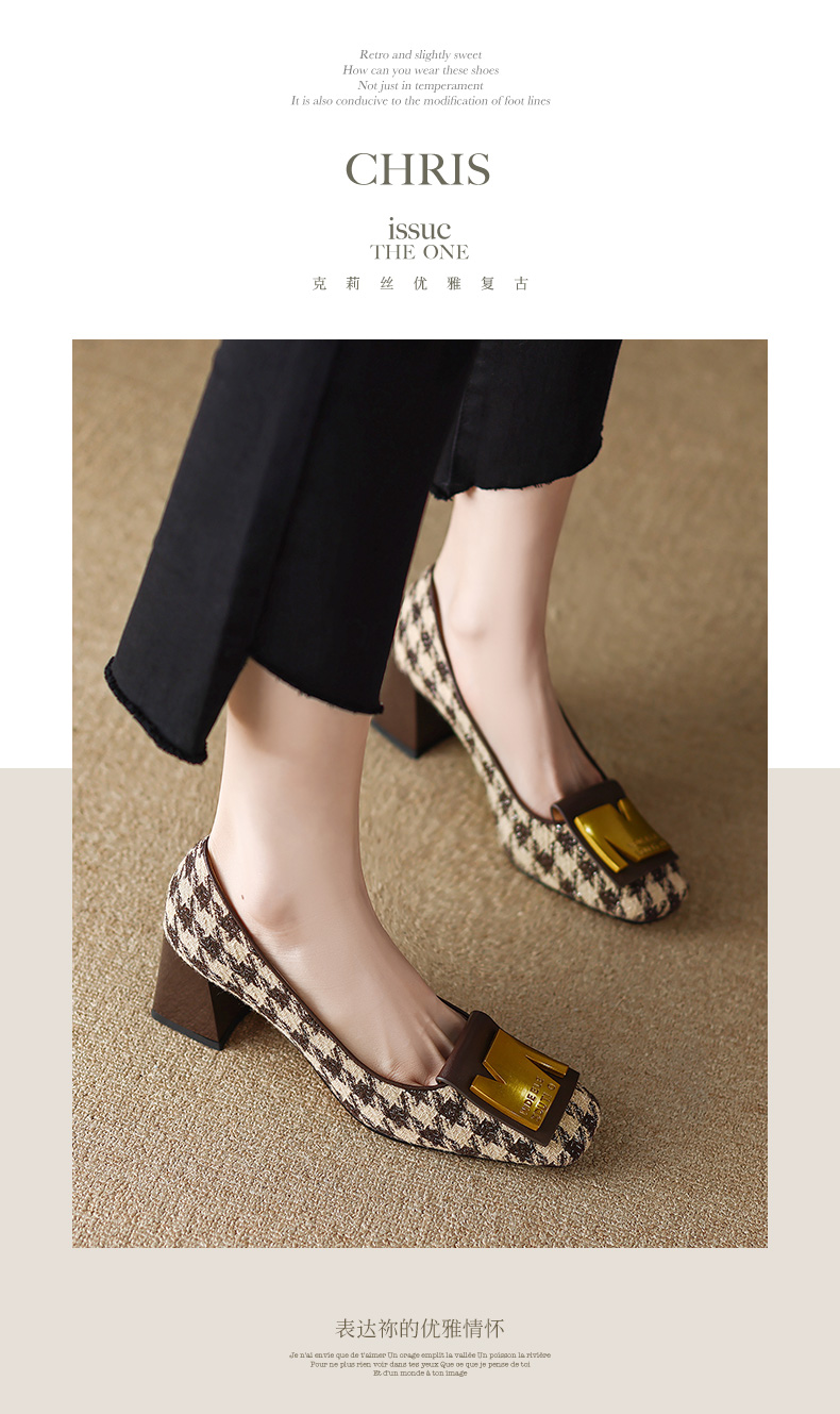 春季新款,爆款网红复古千鸟格单鞋YF-A3076