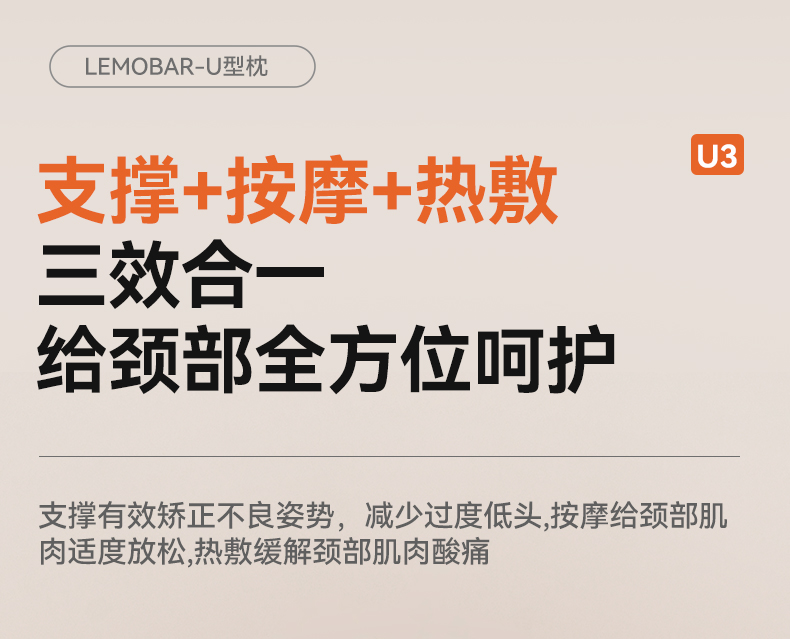 乐摩吧U型护颈枕LMB-U3 出差旅行枕 360°护颈支撑+按摩+热敷 三效合一 居家出行必备好物