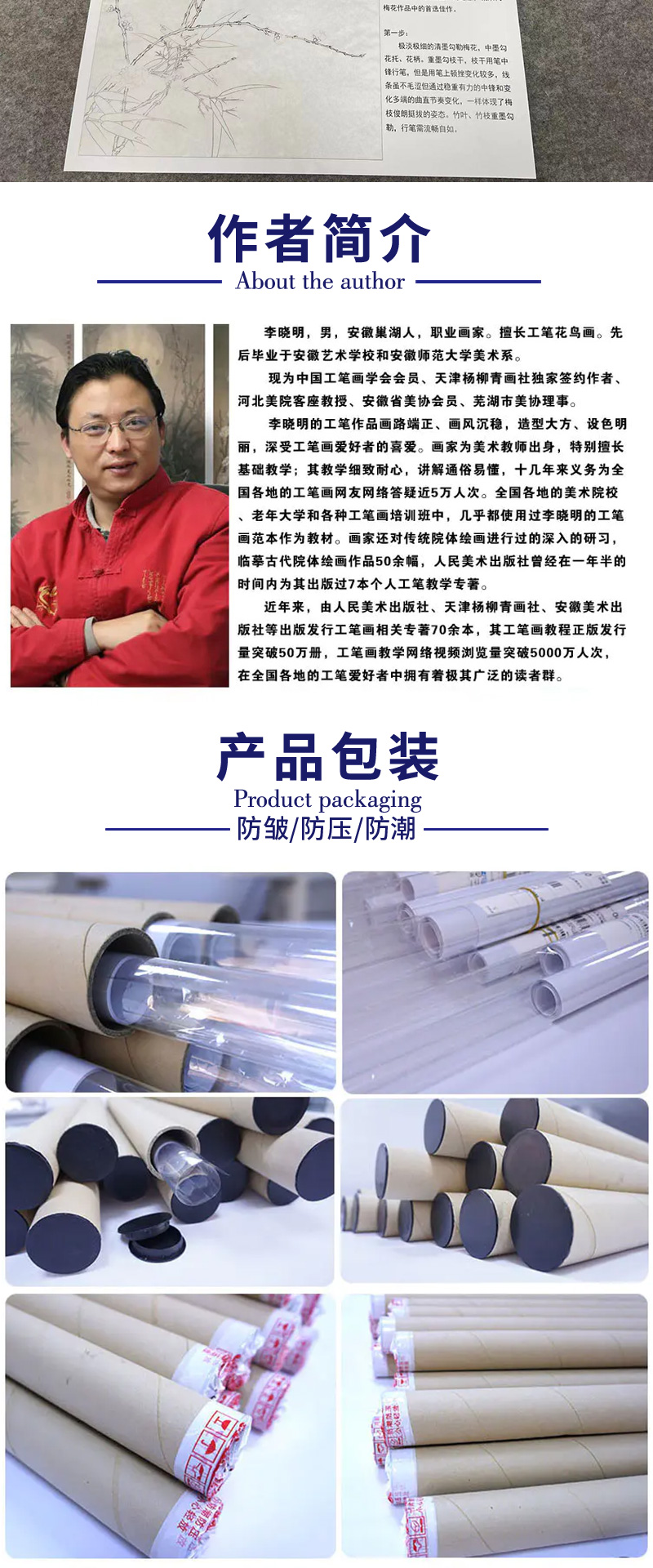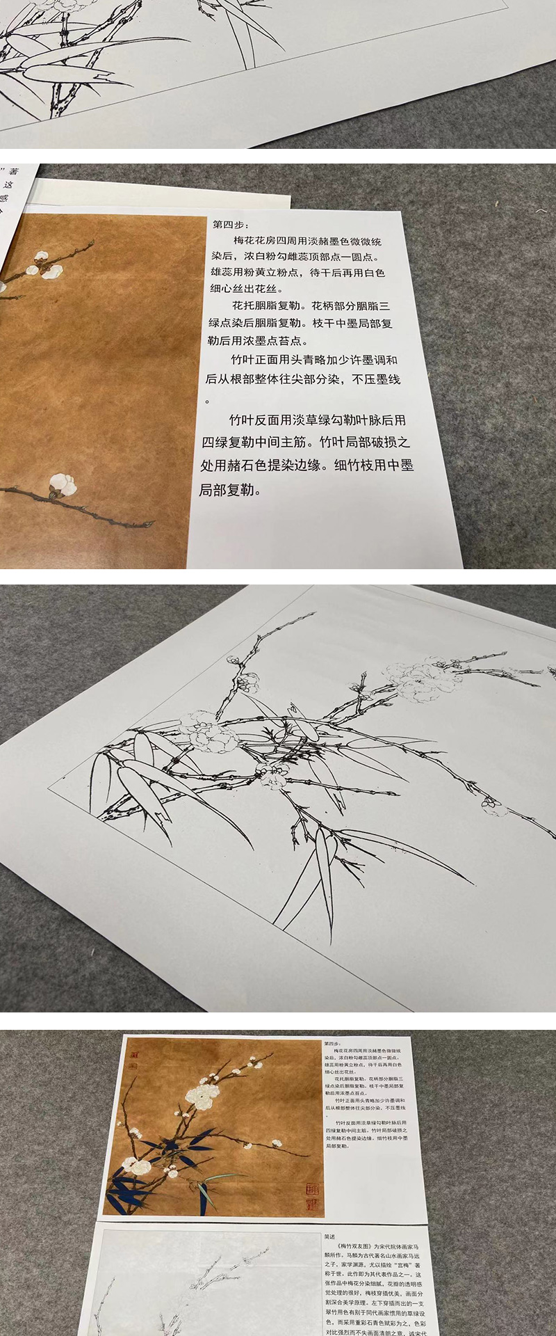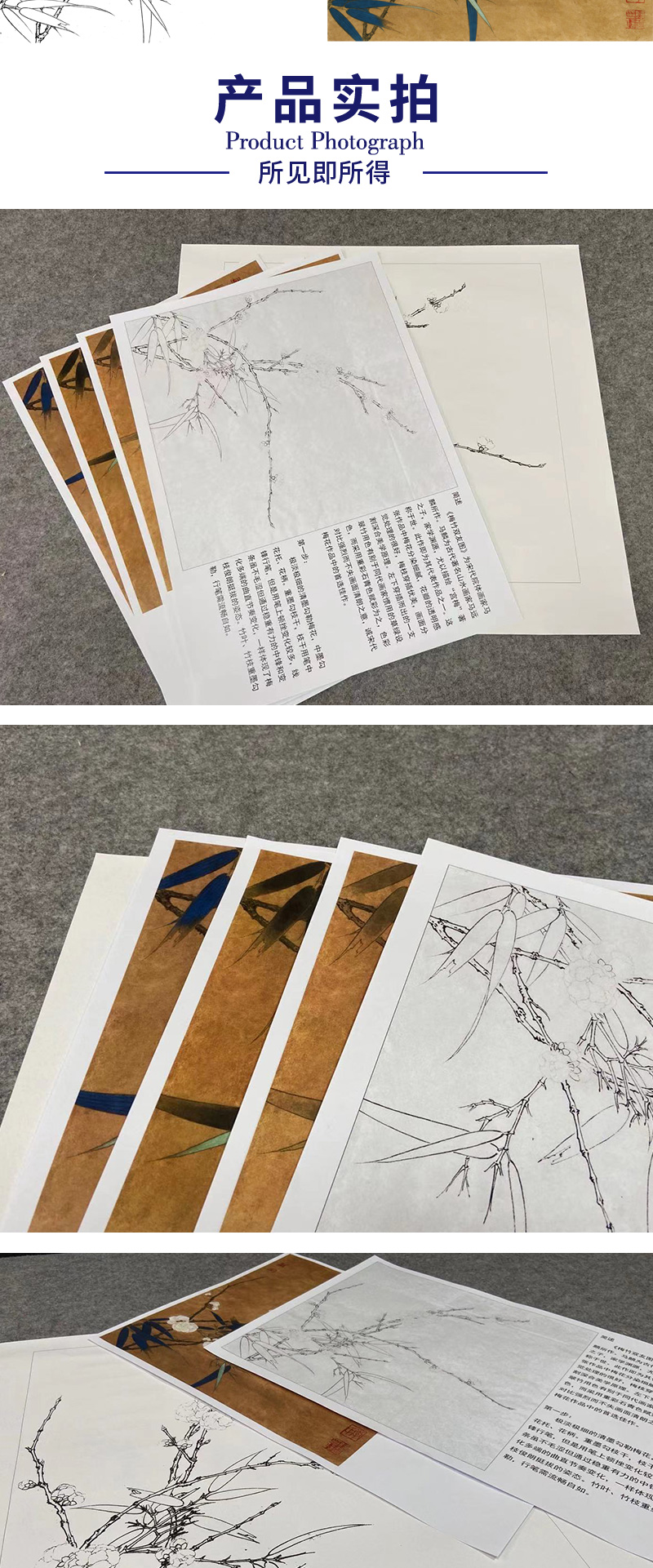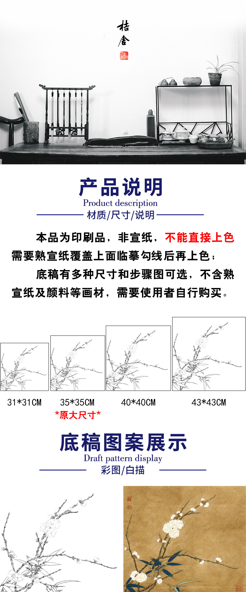 【有步骤、大彩图】李晓明工笔画白描底稿斗方小品《梅竹双友图》梅花初学者临摹花鸟线稿KC32