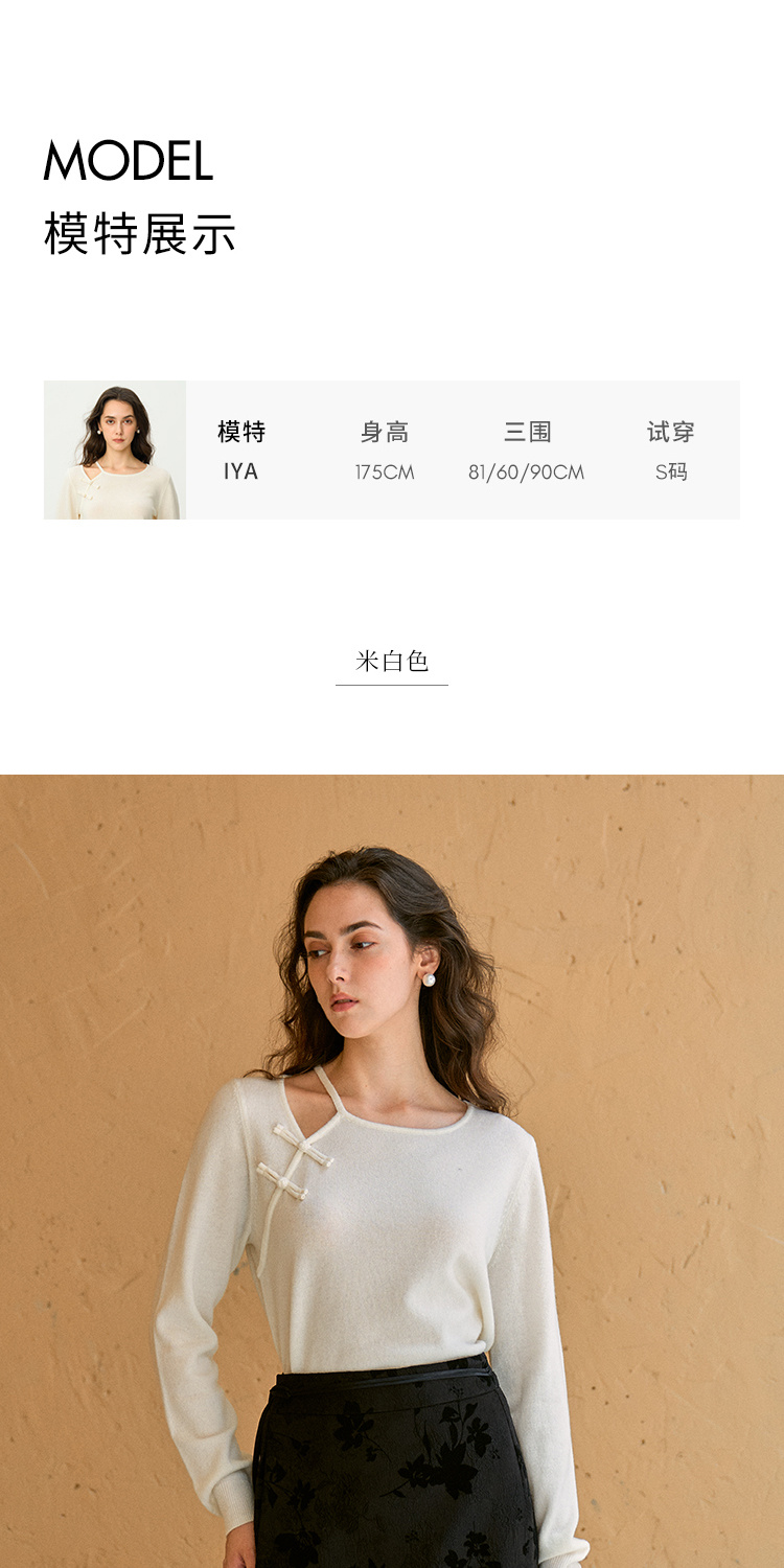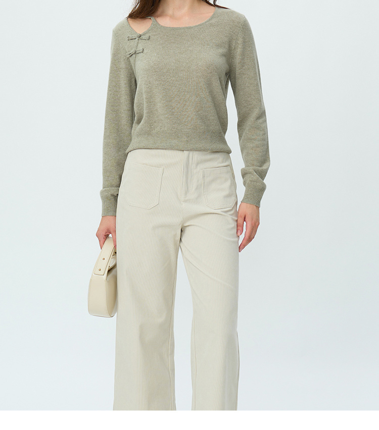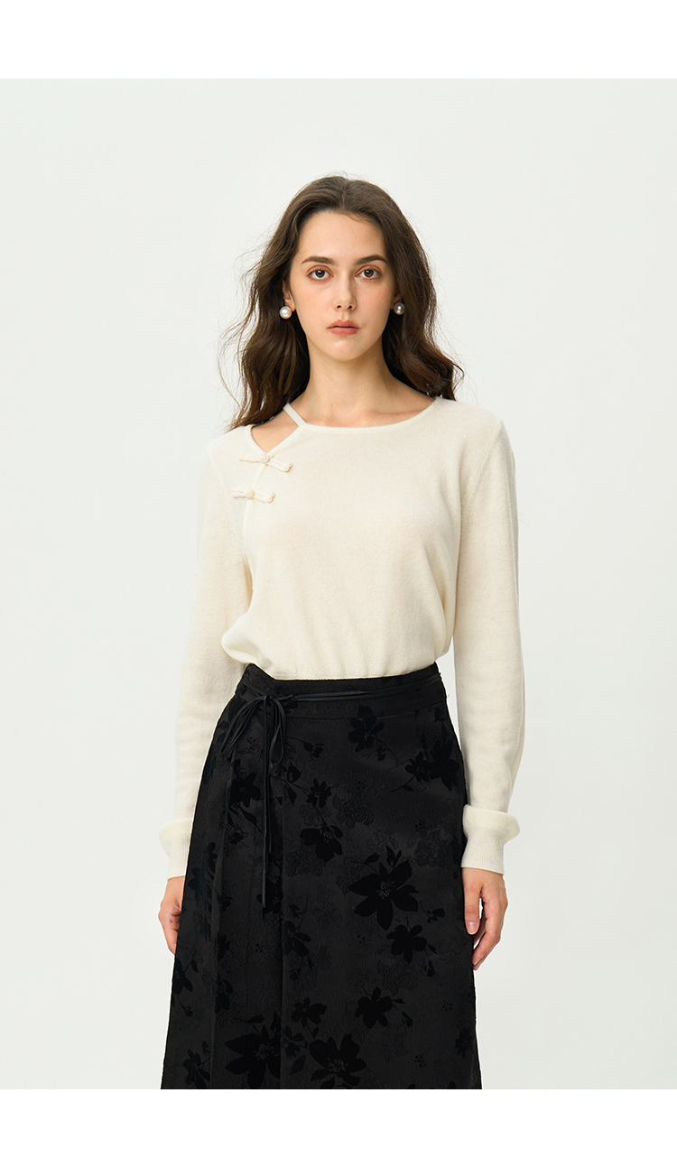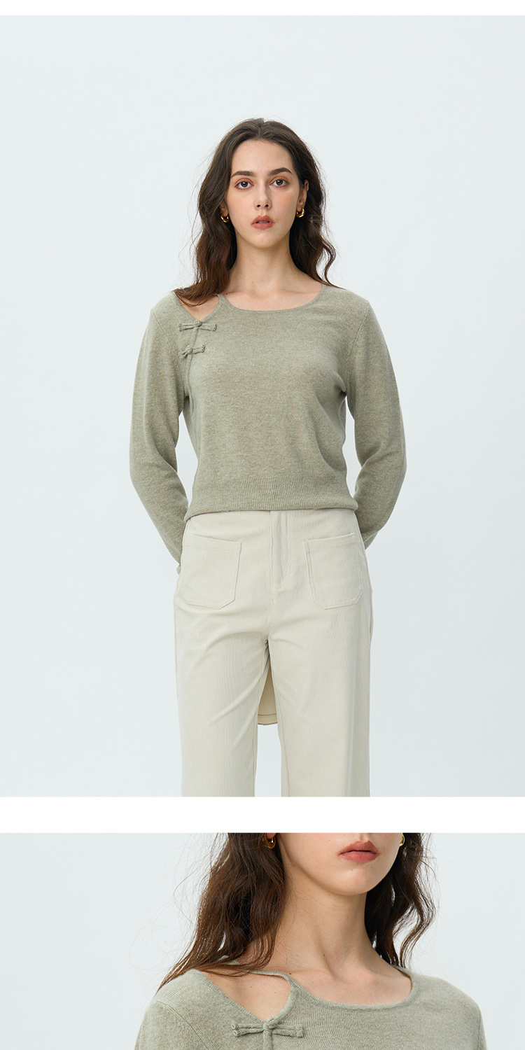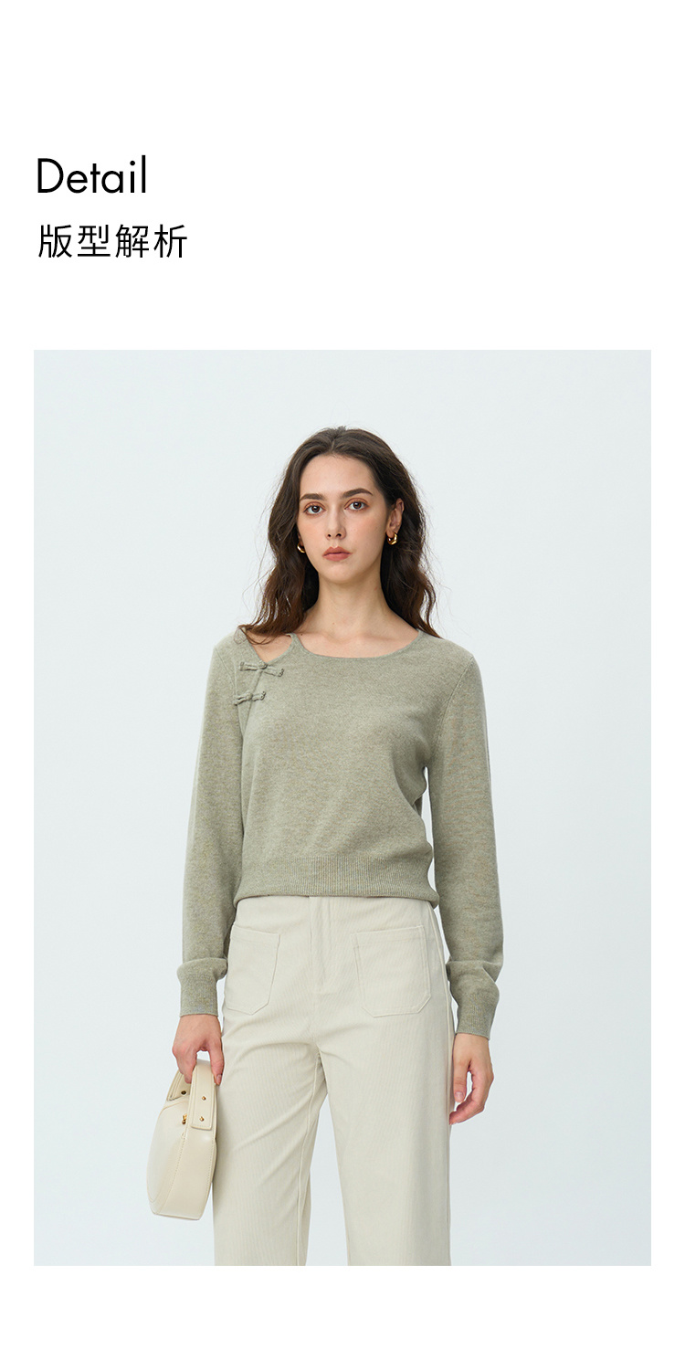 HeyDress新中式盘扣针织衫女春秋全羊毛单肩吊带镂空宽松短款上衣