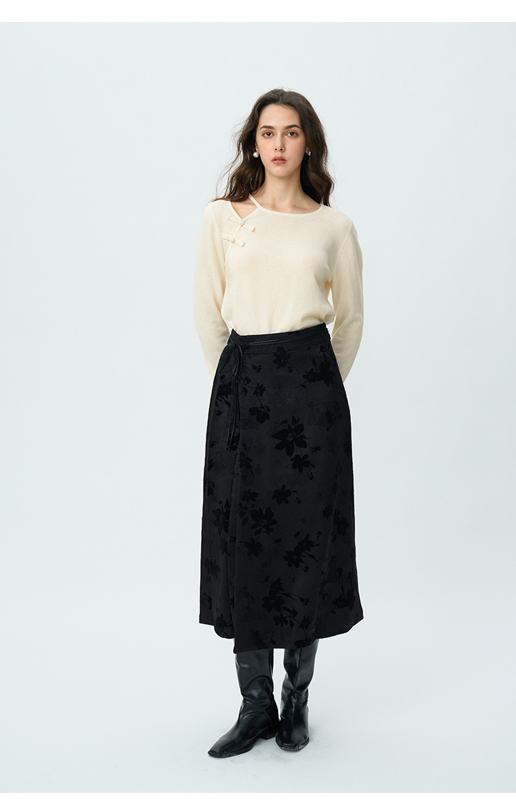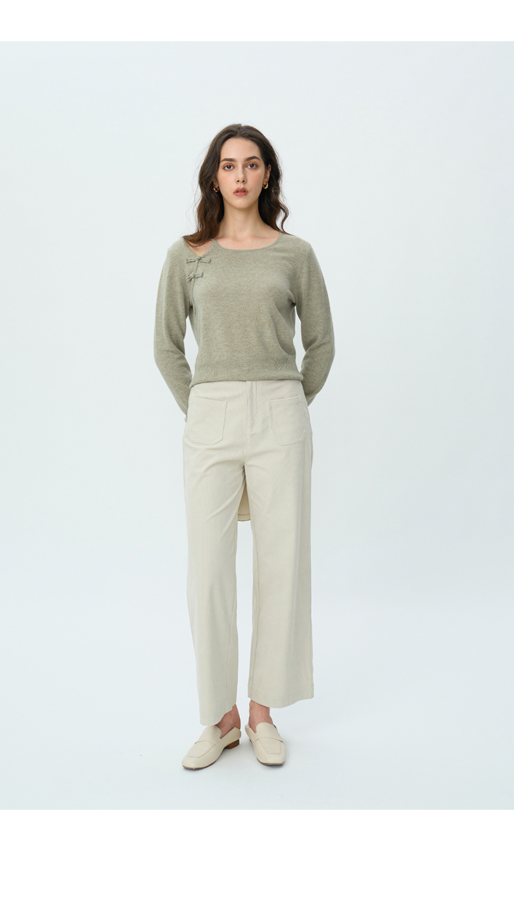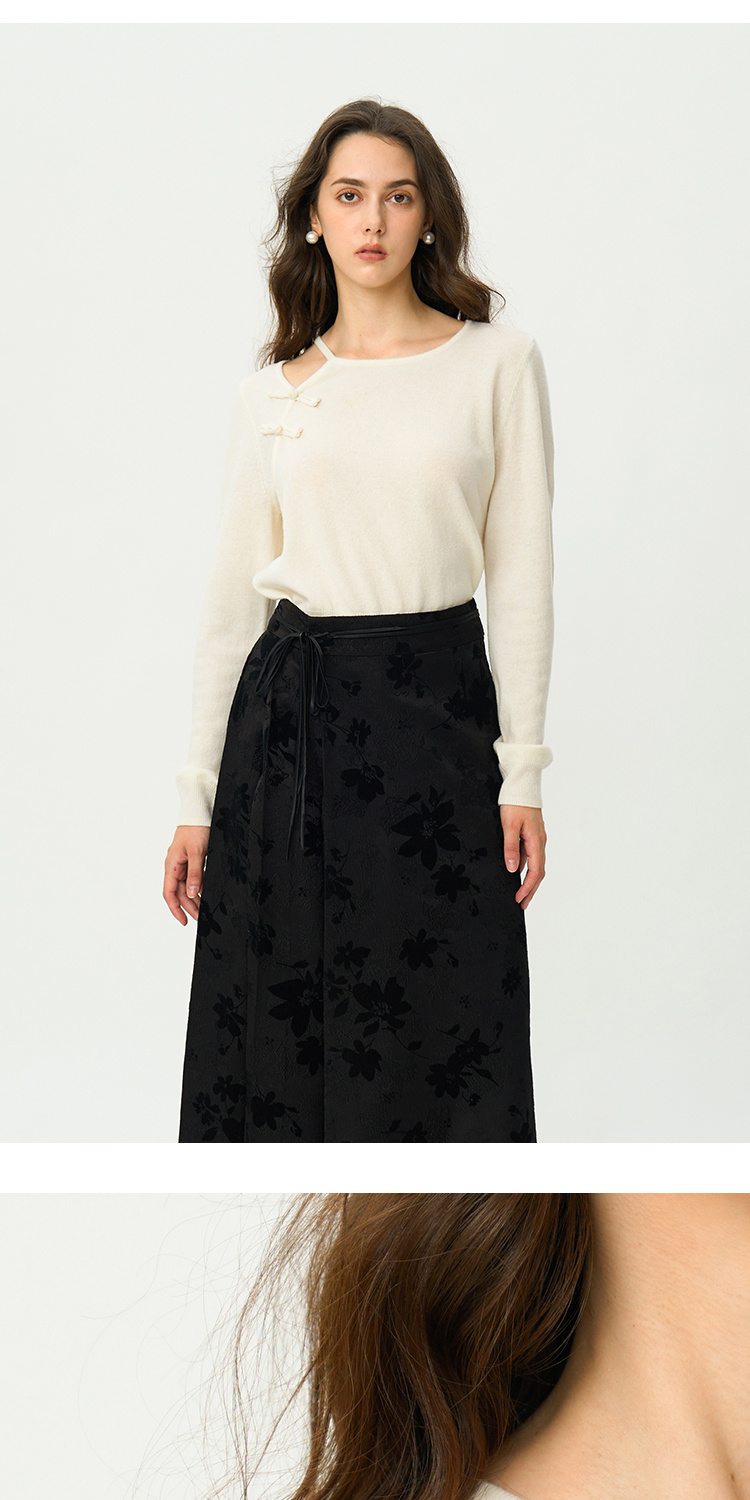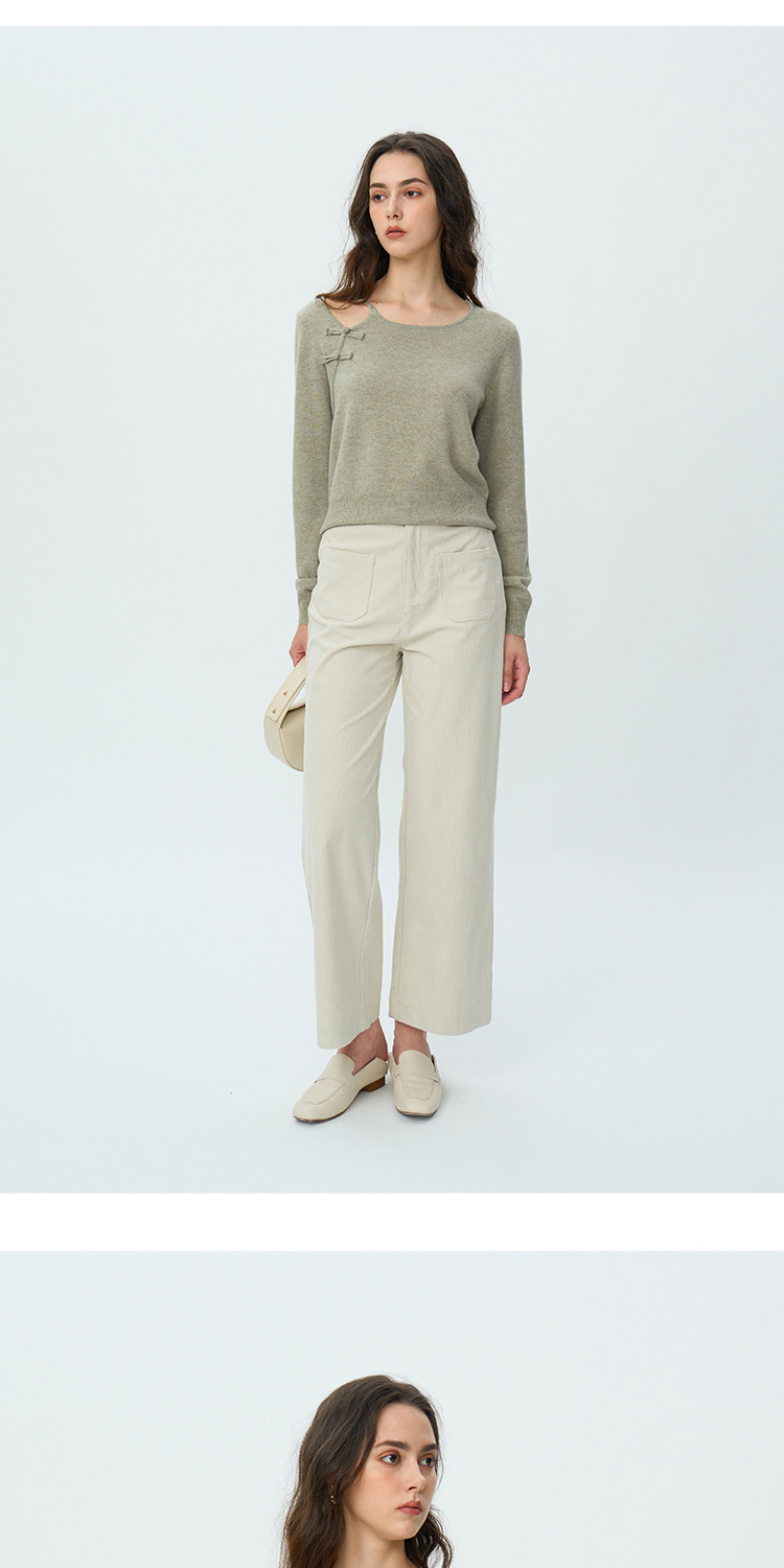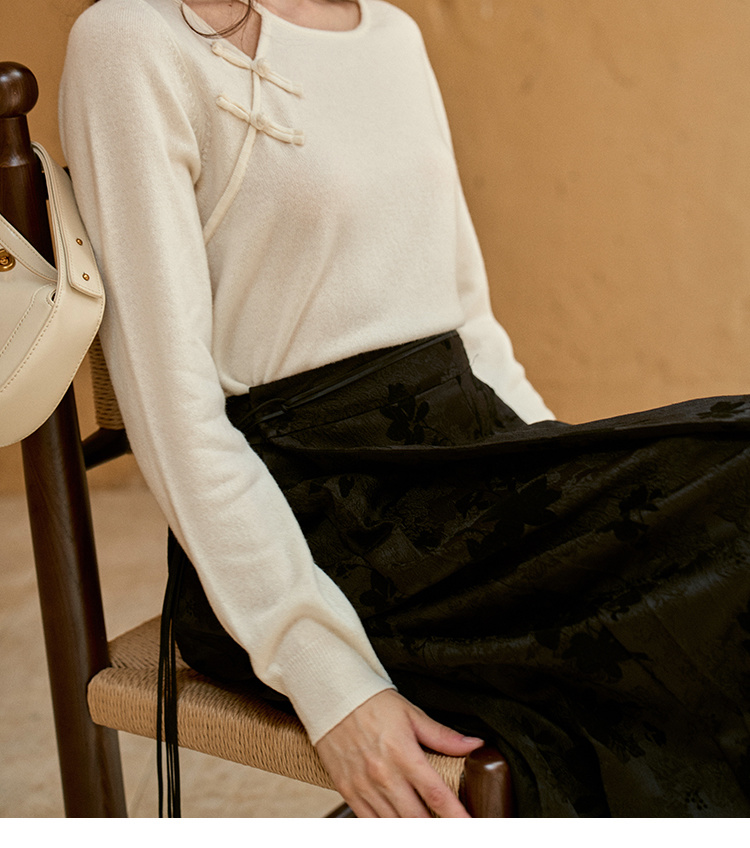HeyDress新中式盘扣针织衫女春秋全羊毛单肩吊带镂空宽松短款上衣