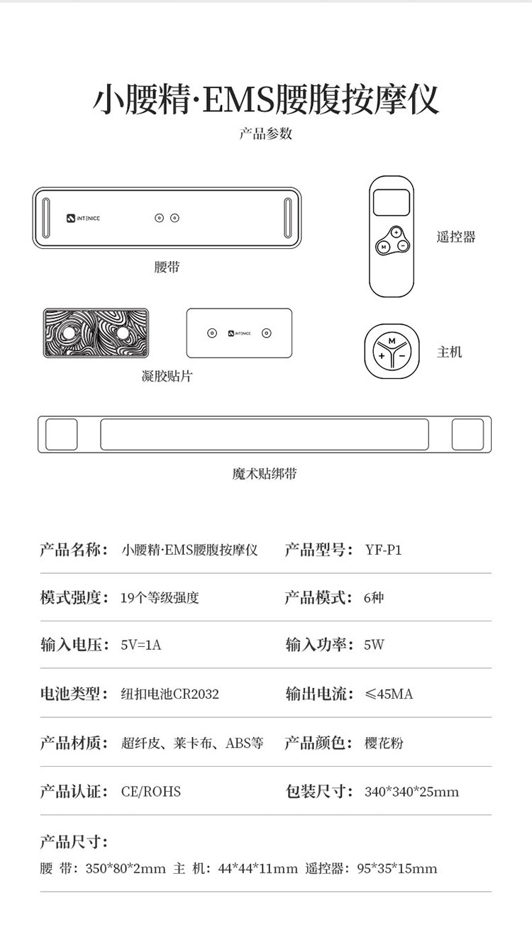 日本intenice茵特奈腰带 EMS微电流按摩暖宫宝美体瘦腰小腰精
