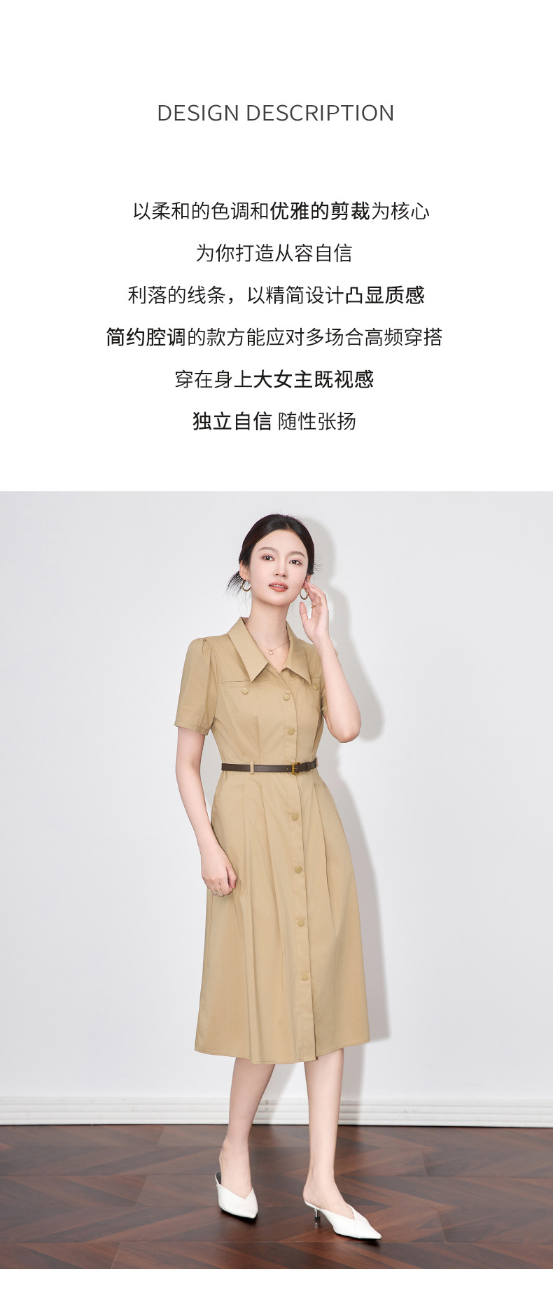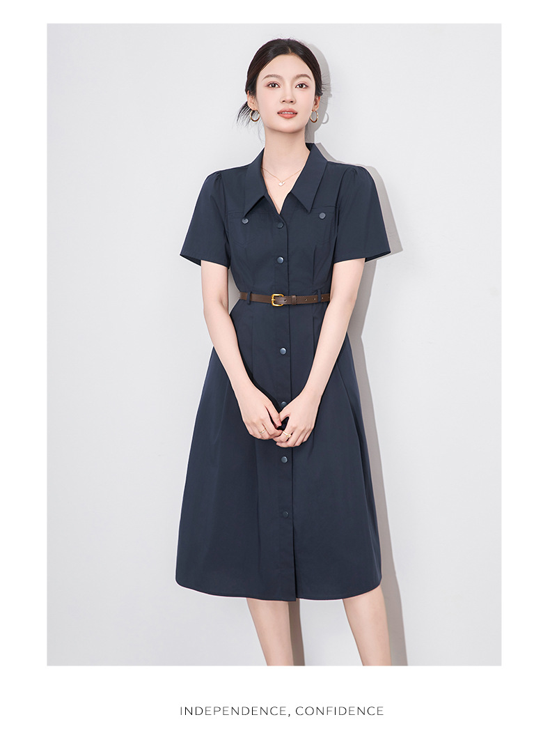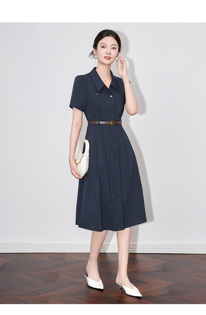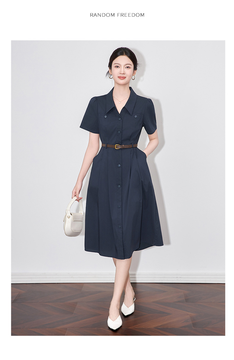 「高货wl」全新升级【铂金会员358/天猫479/差价121】(11753)洛诗琳法式气质翻领连衣裙2025夏季收腰显瘦通勤衬衫裙女