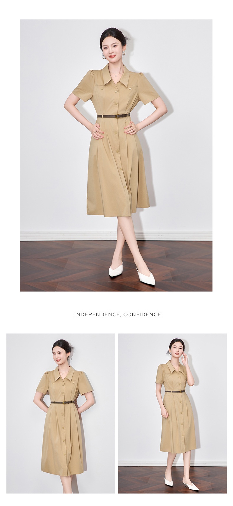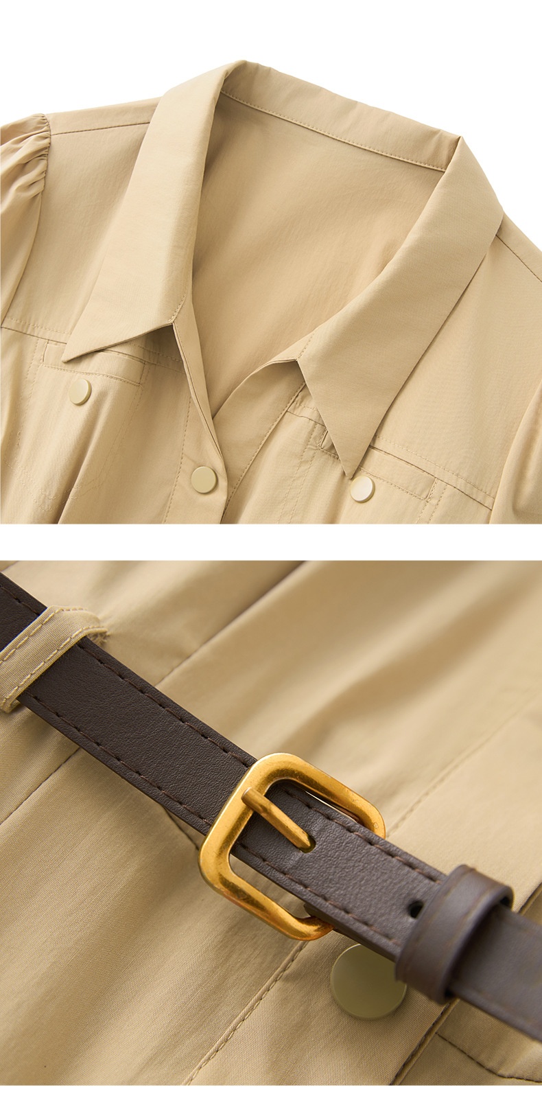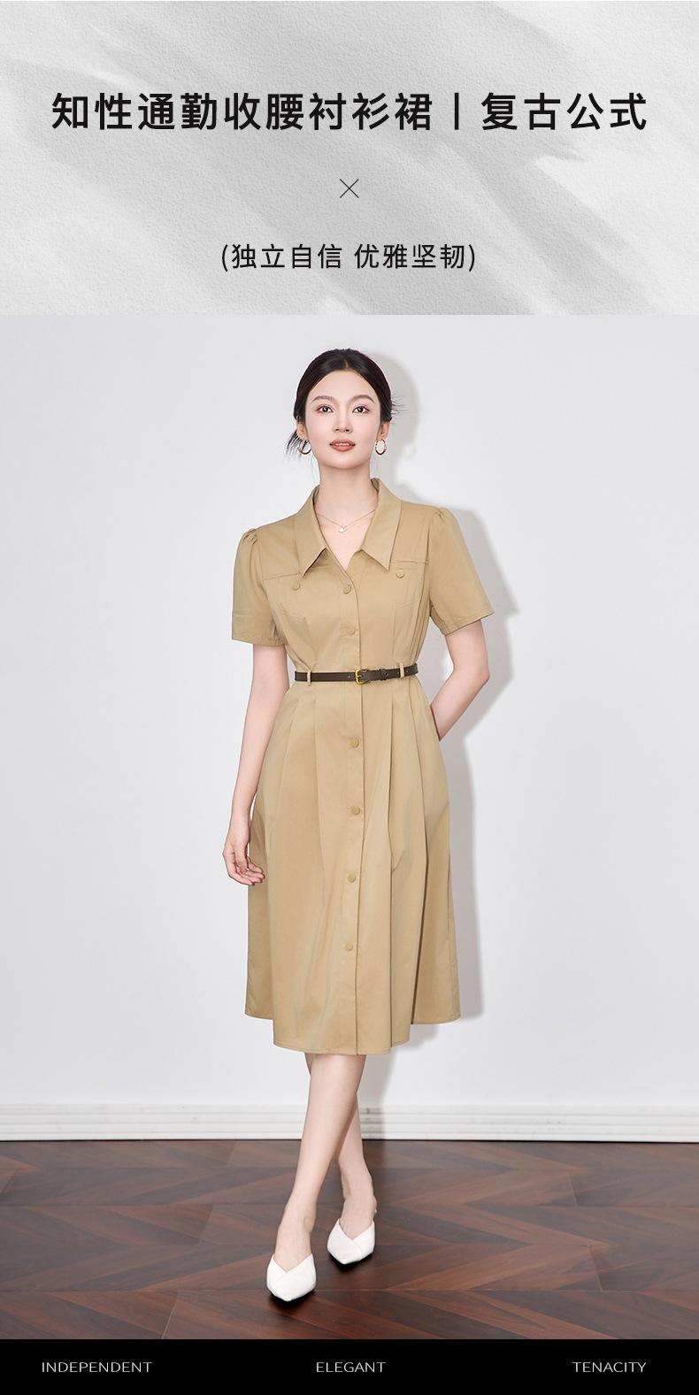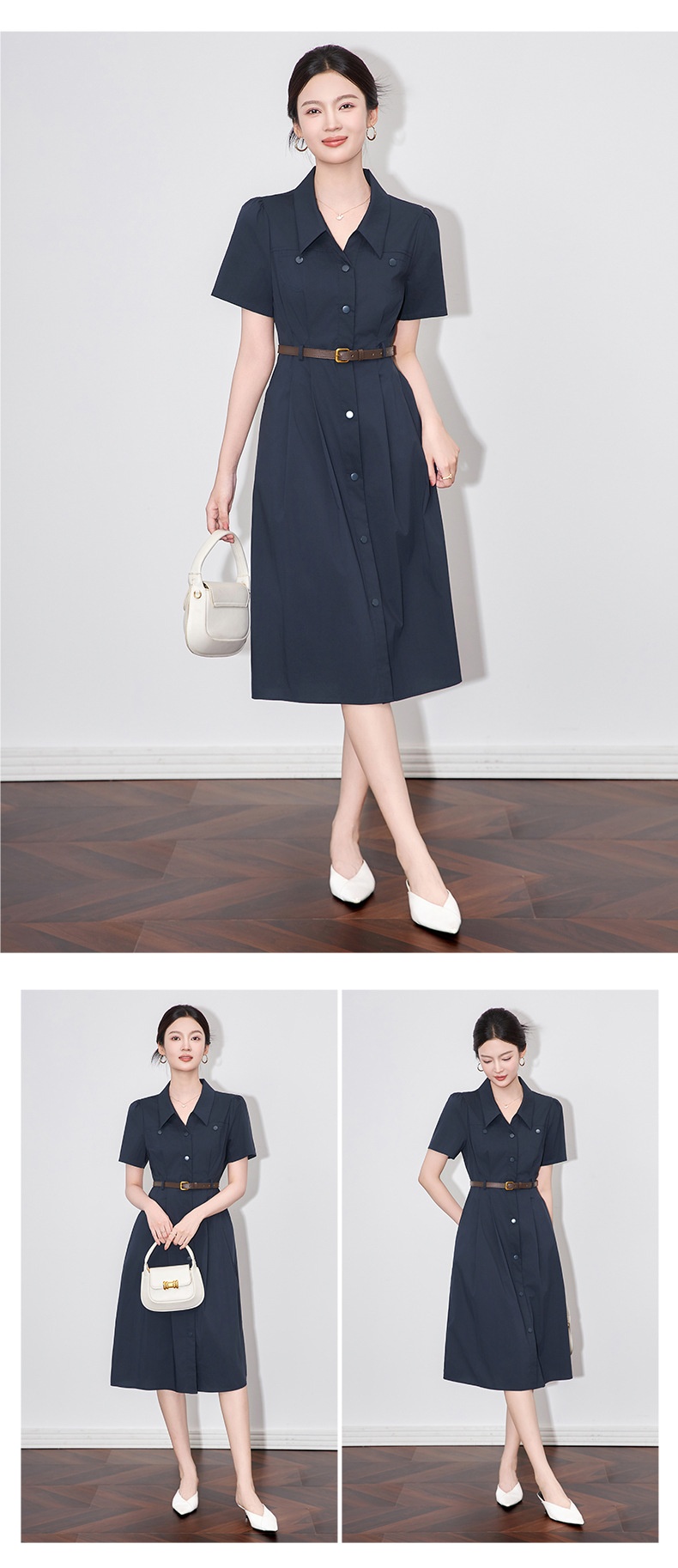 「高货wl」全新升级【铂金会员358/天猫479/差价121】(11753)洛诗琳法式气质翻领连衣裙2025夏季收腰显瘦通勤衬衫裙女