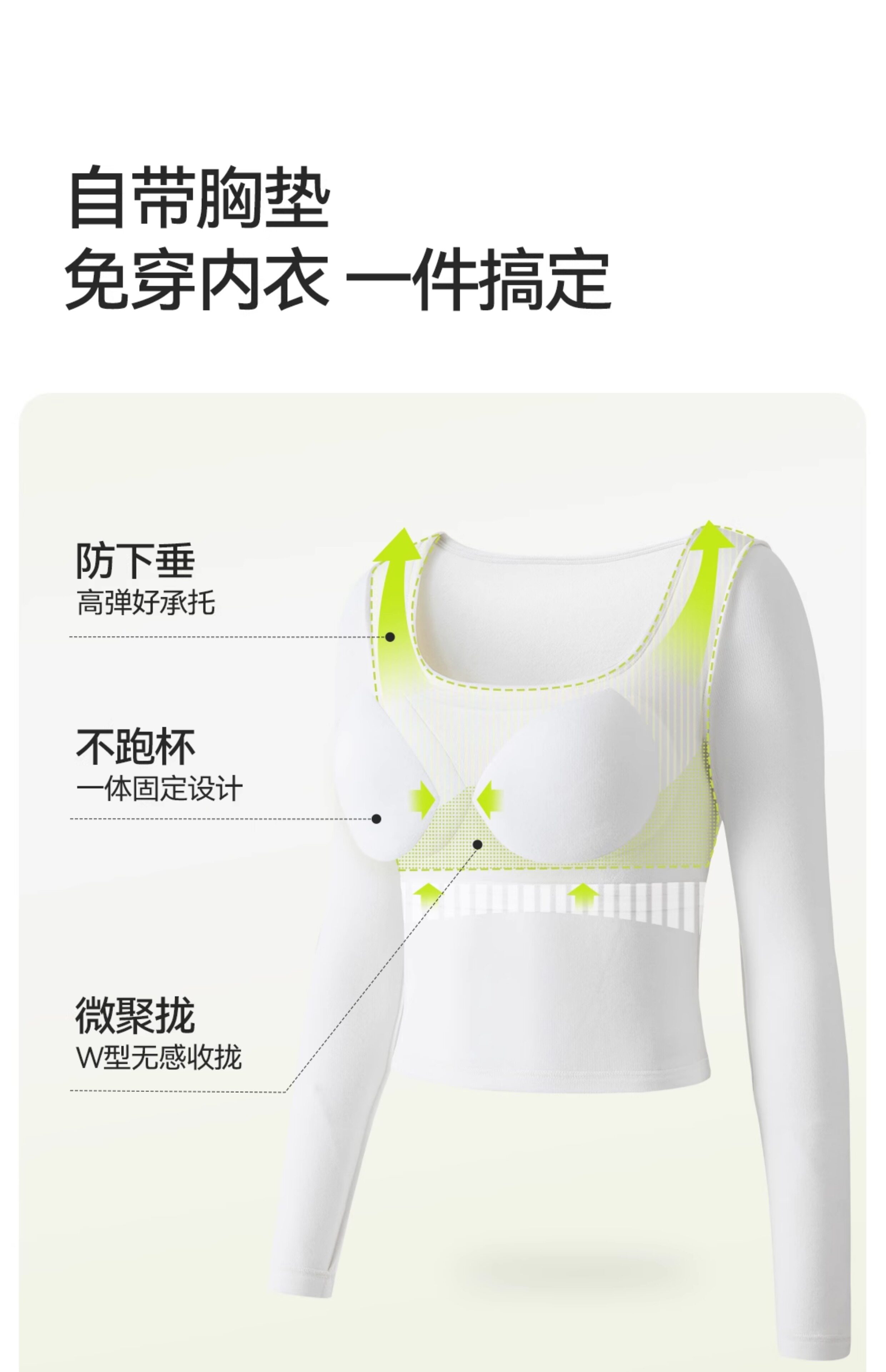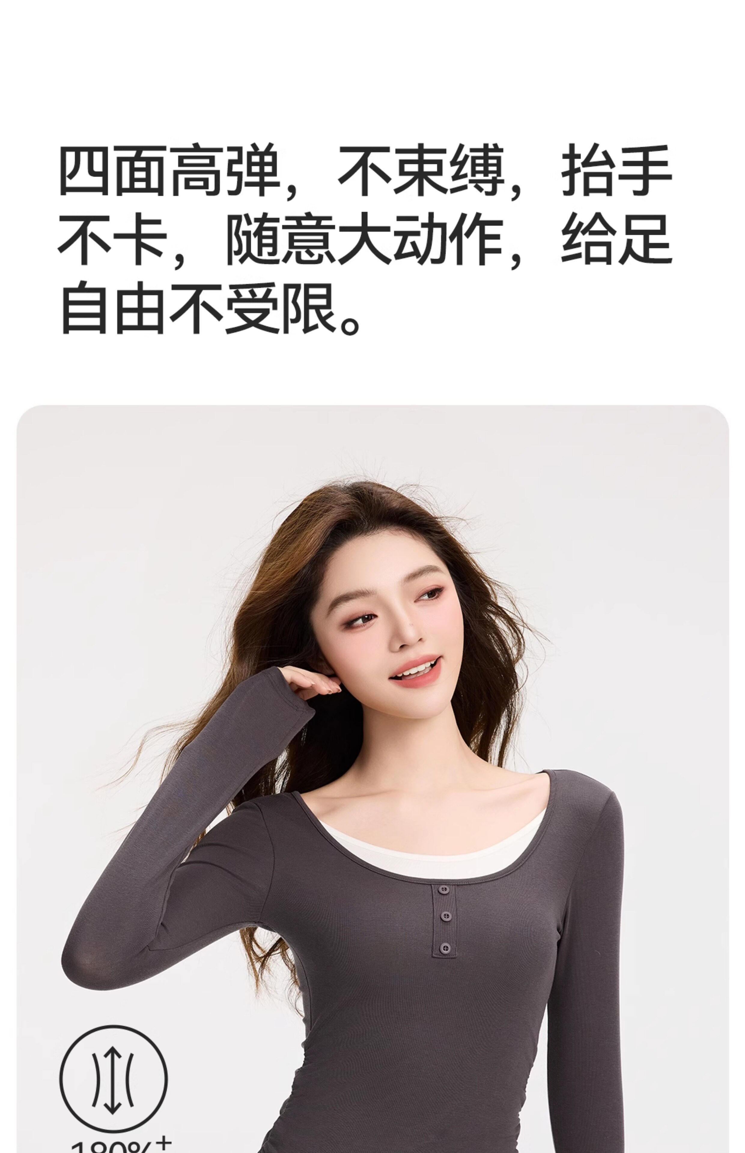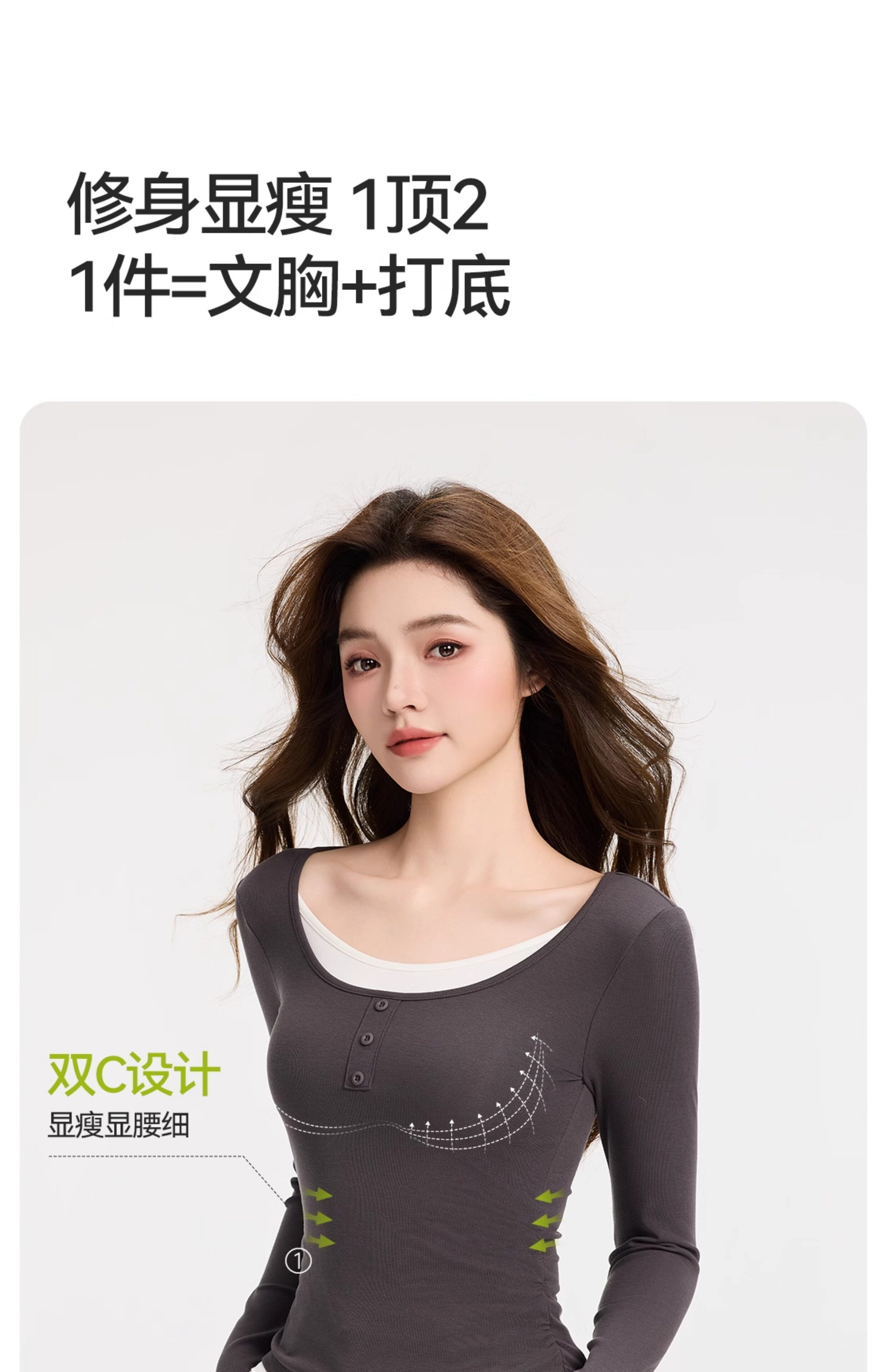 内茵2026新款假两件长袖女士带胸垫百搭打底衫修身显瘦撞色内搭