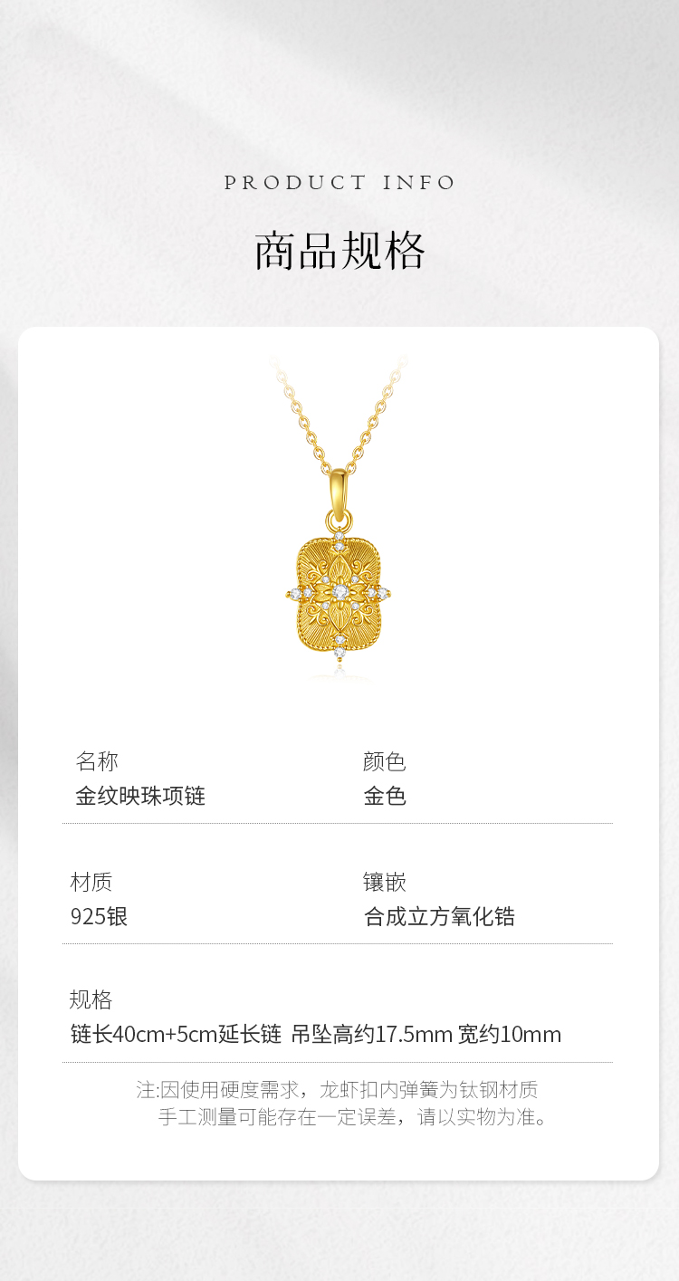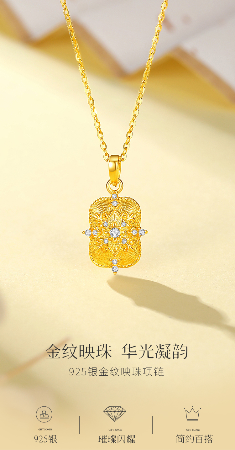 Winy 925银金纹映珠项链送女朋友/老婆/闺蜜生日节日礼物