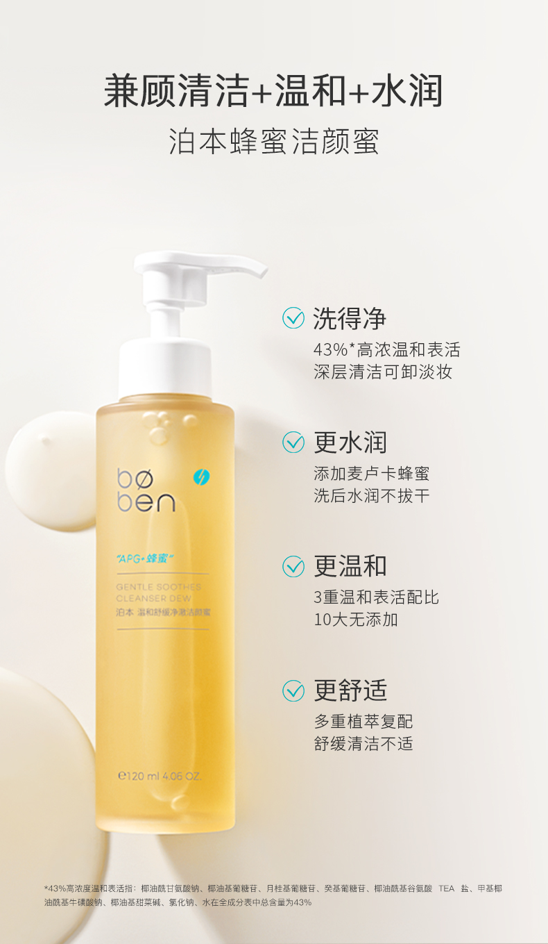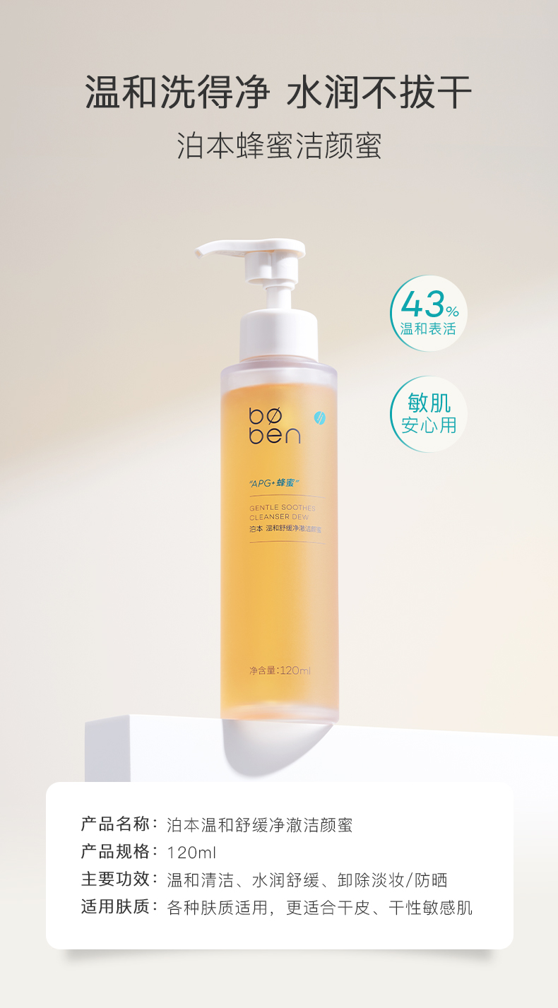 【控油/洗护】泊本温和舒缓净澈洁颜蜜120ml 温和清洁水润保湿深层洗卸不伤肤