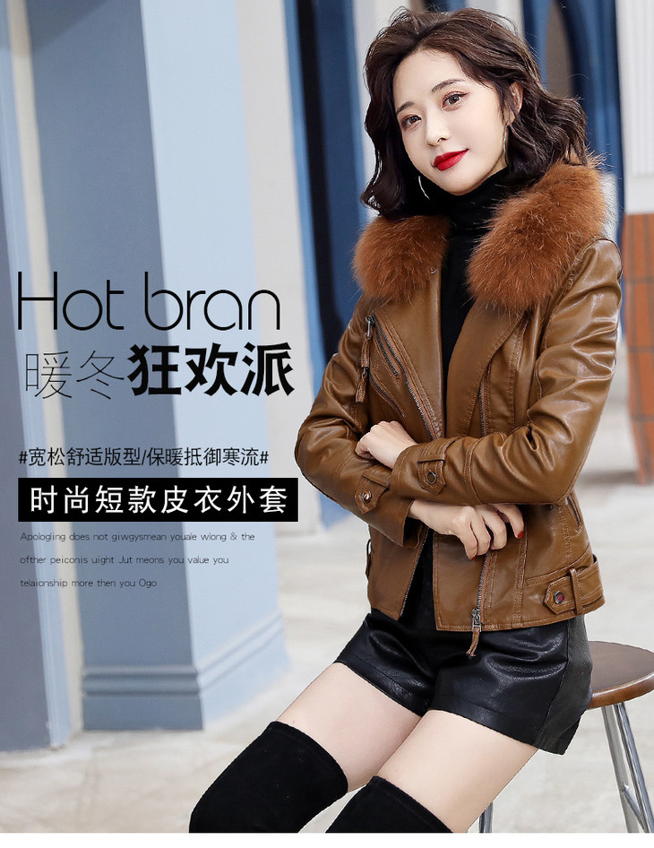 WZNH-CLYZ20112时尚气质修身显瘦加绒保暖短款皮衣