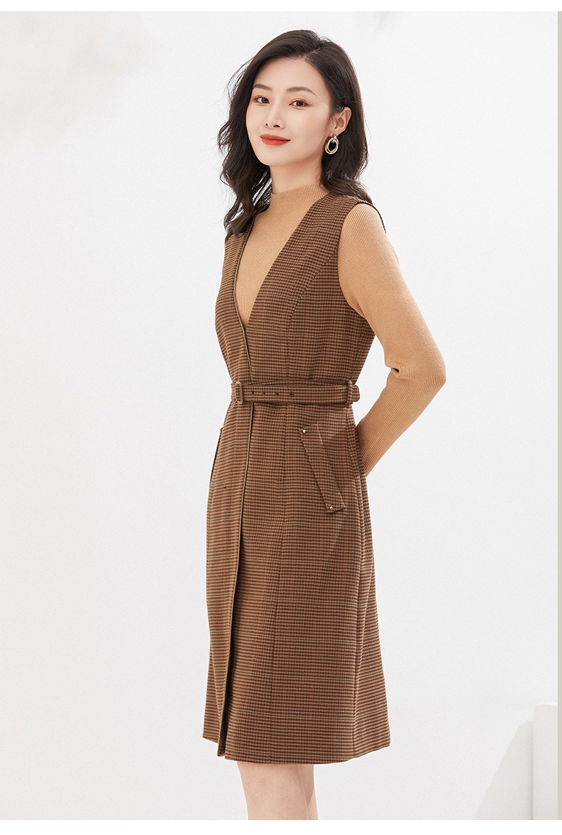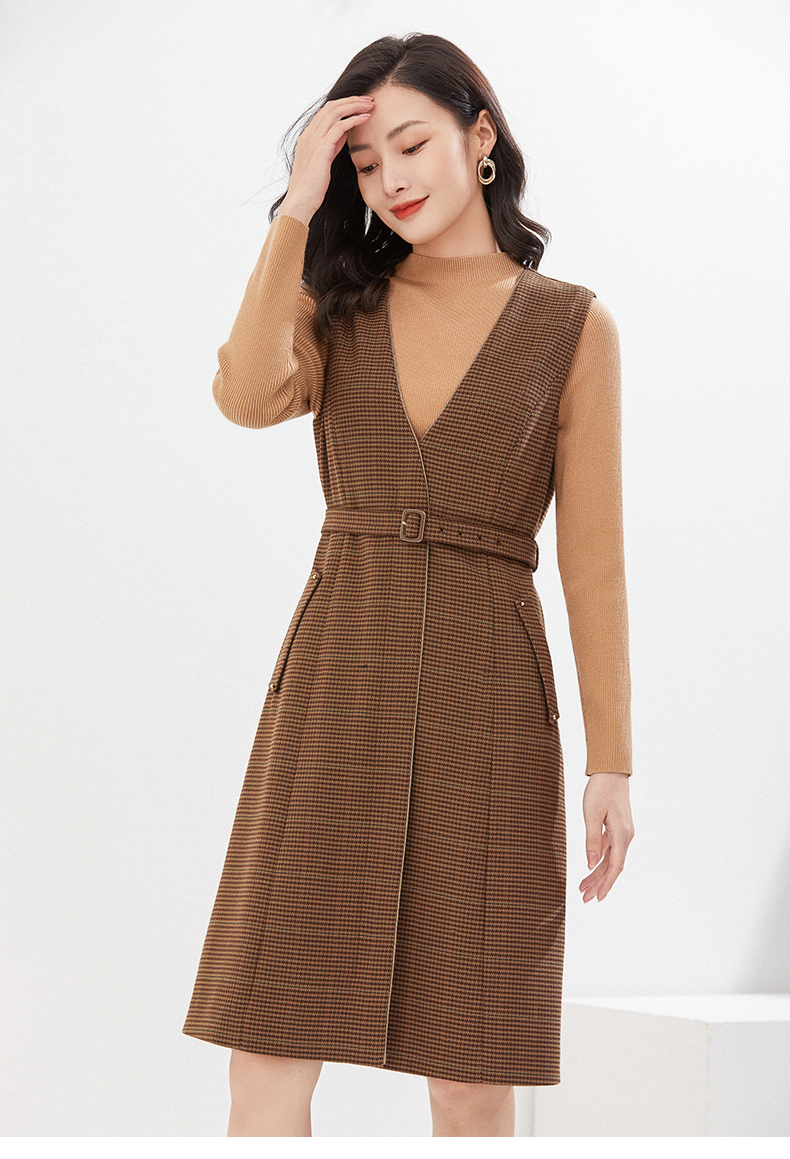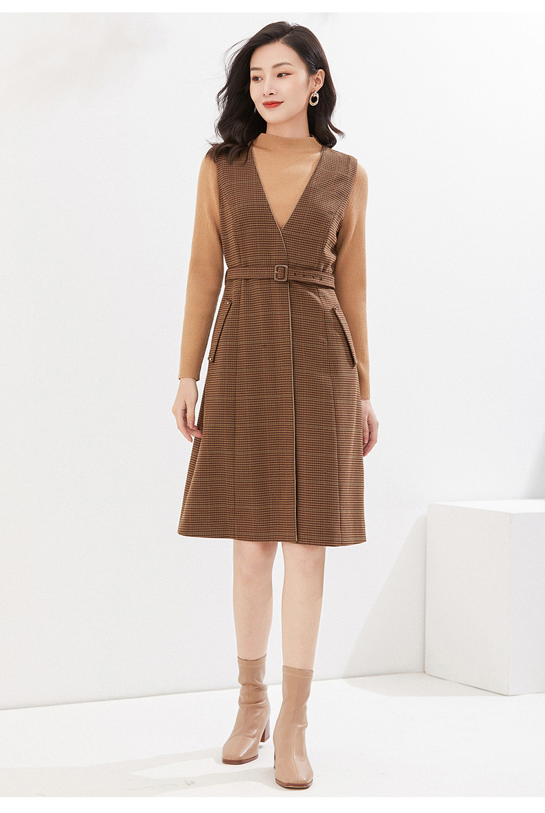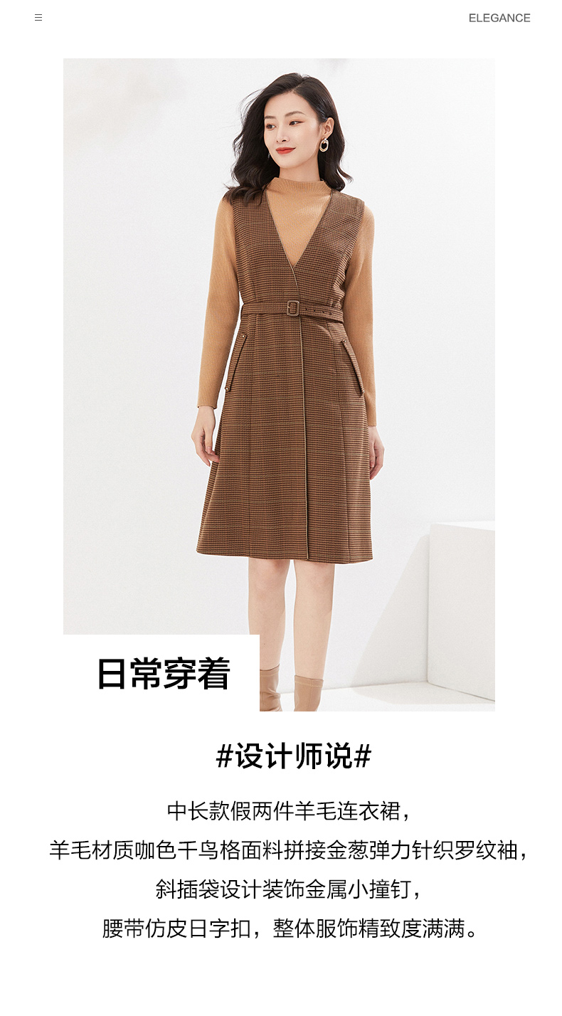 乔万尼冬季新品绵羊毛连衣裙假两件设计英伦精致感EI4E686