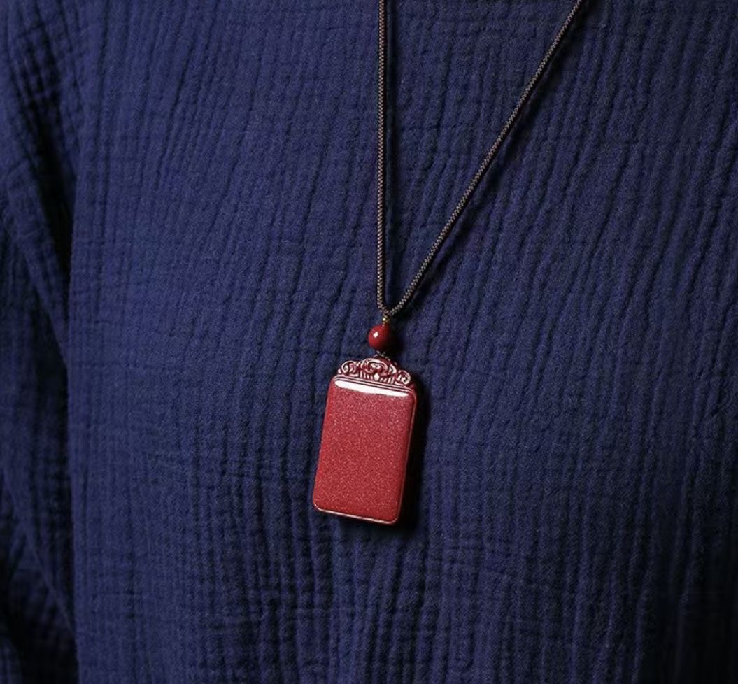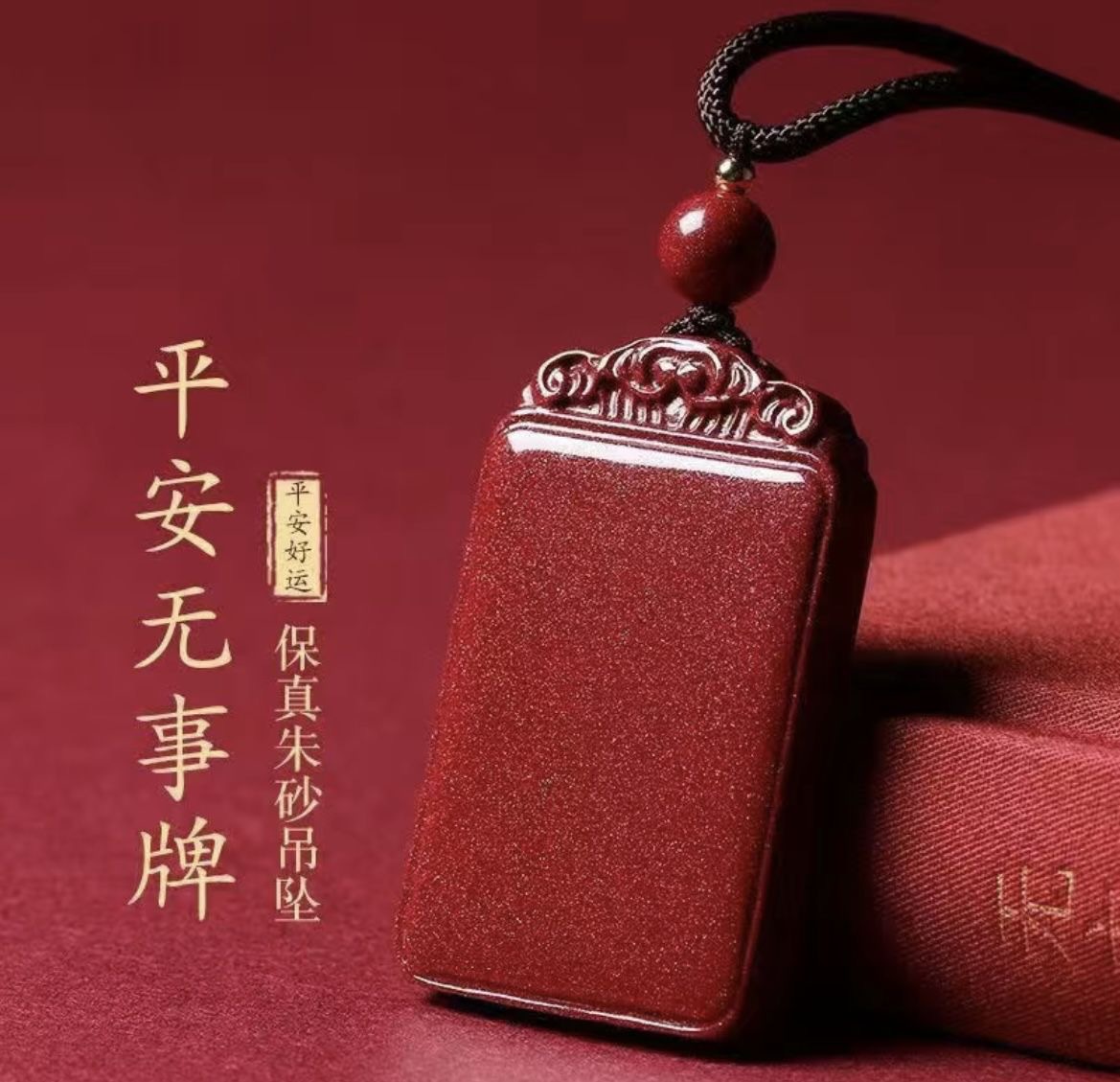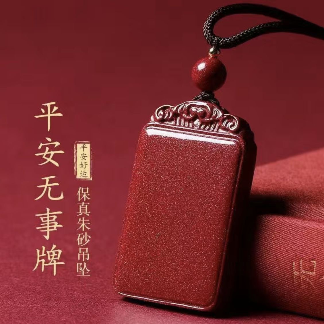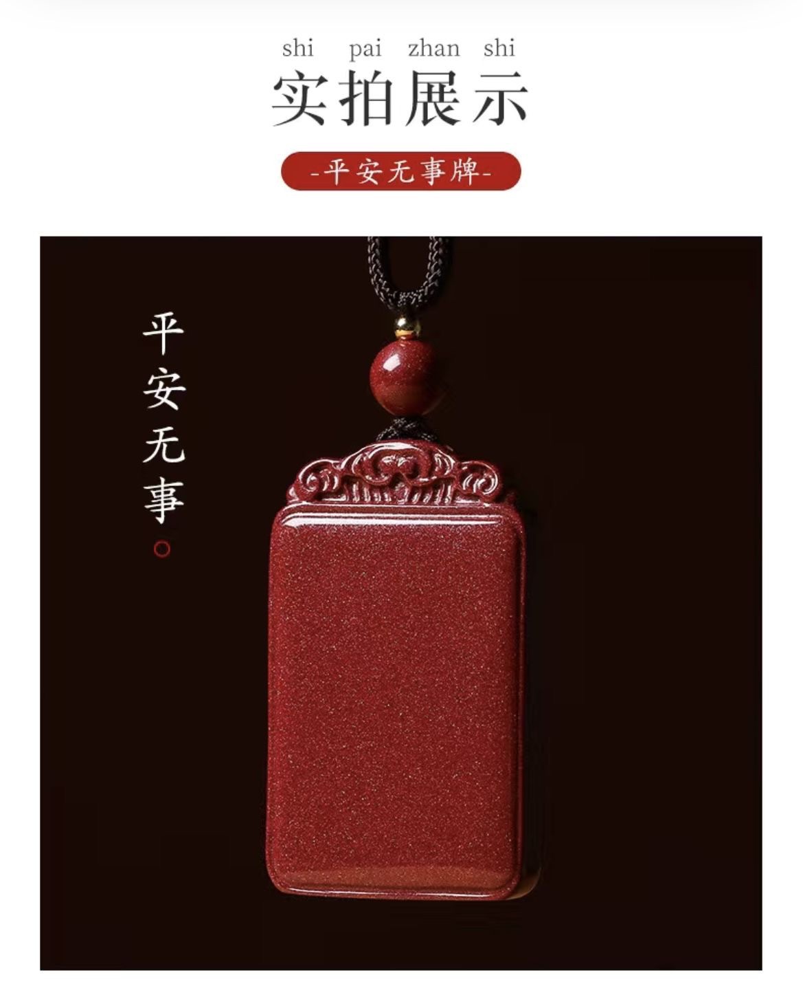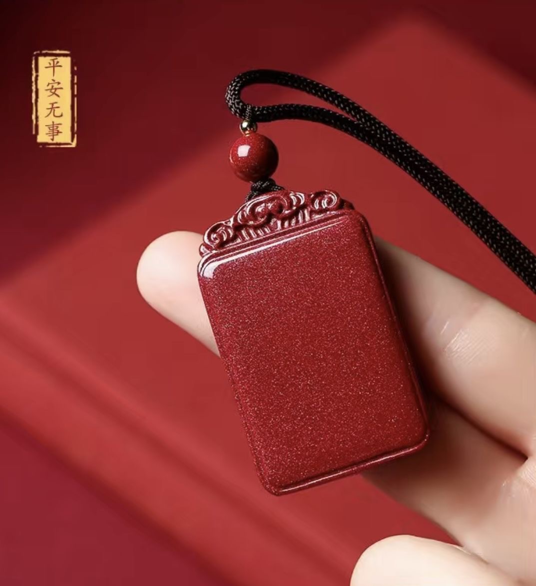 丁摩 天然朱砂平安无事牌吊坠挂件天然紫金砂男女款大小款无事牌挂件5ZF-22401