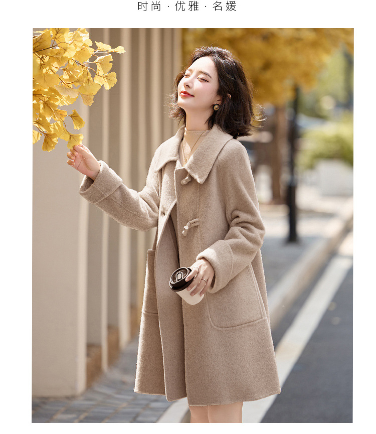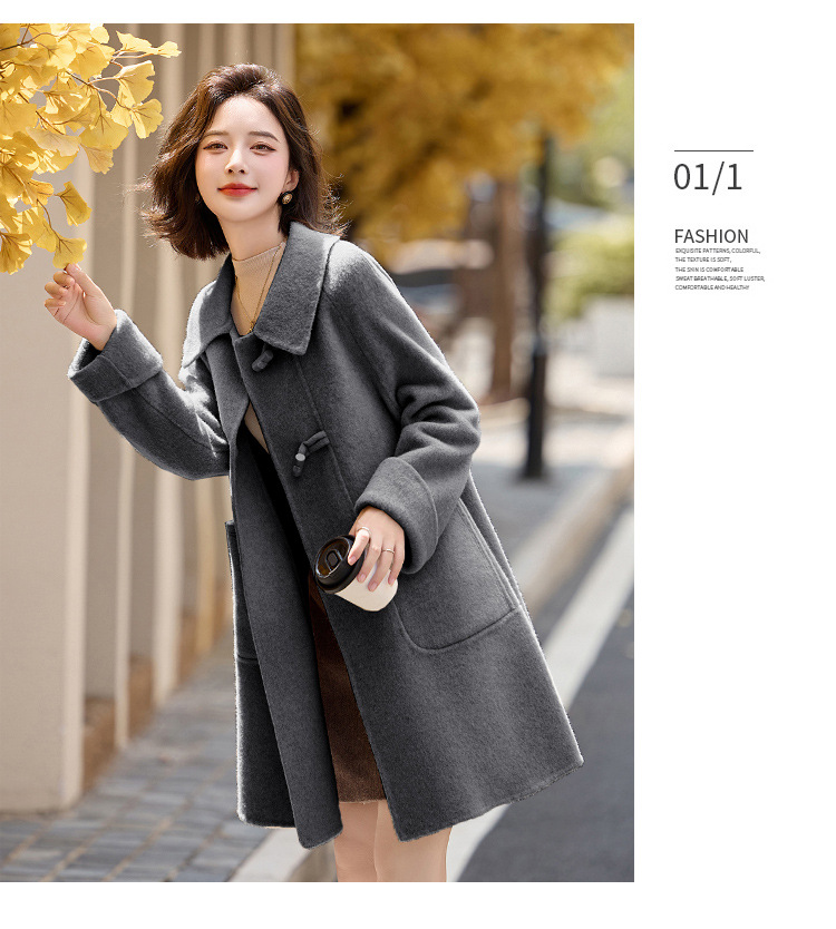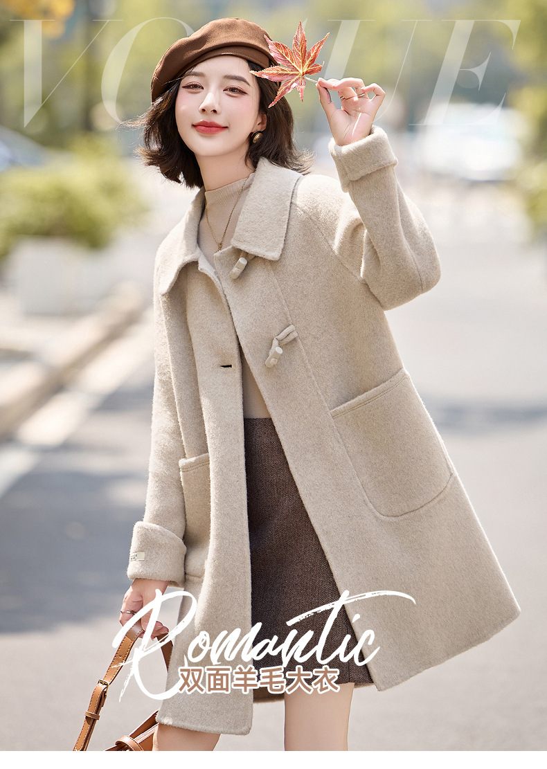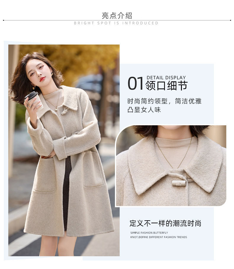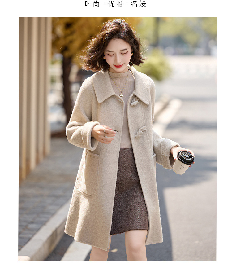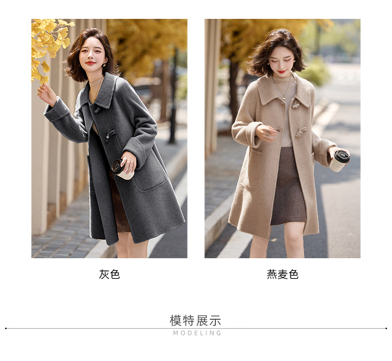 丁摩 双面羊绒大衣女中长款2024冬季新款防风保暖羊毛呢外套呢子大衣6ZF-630