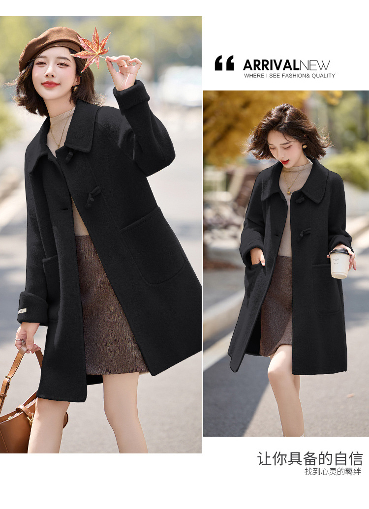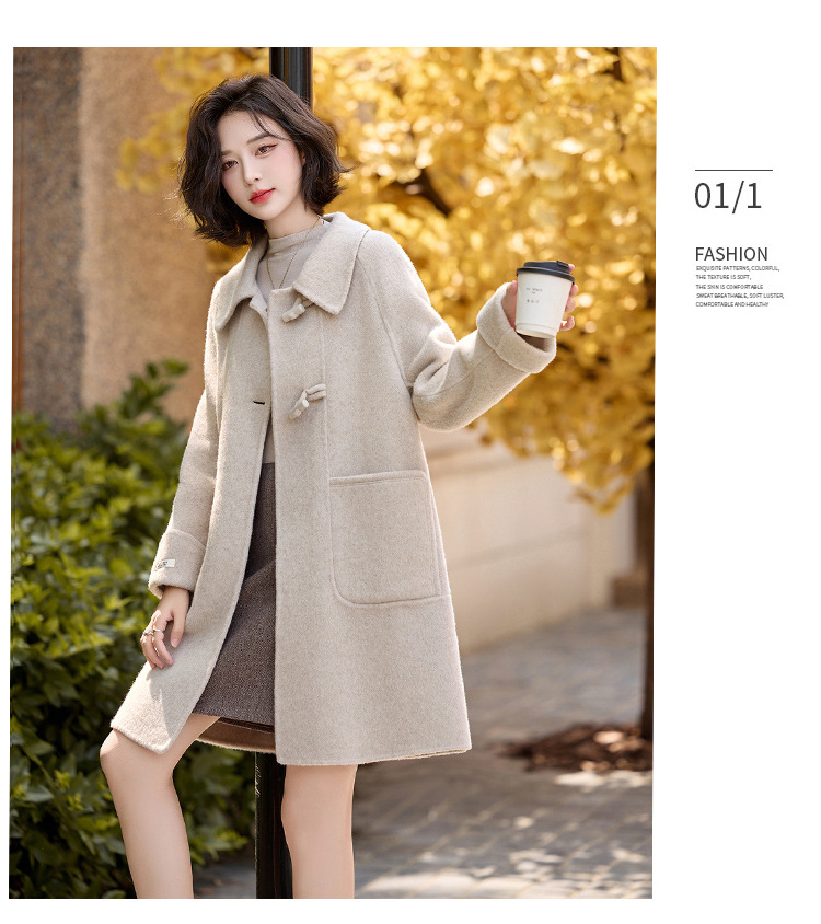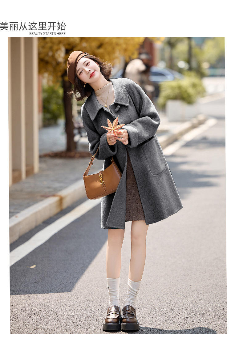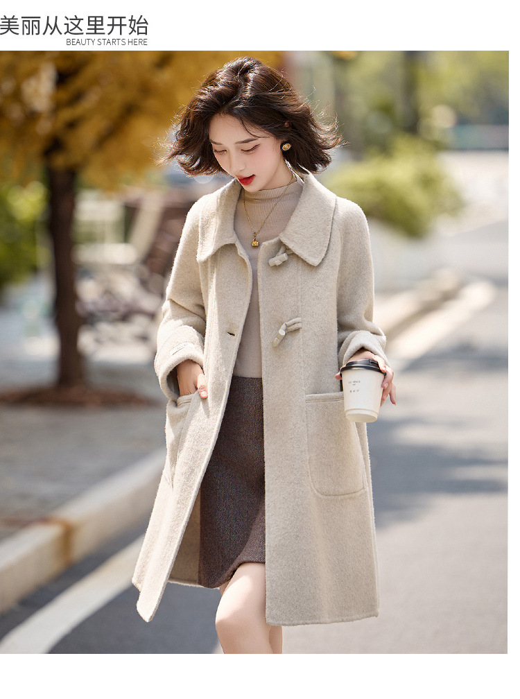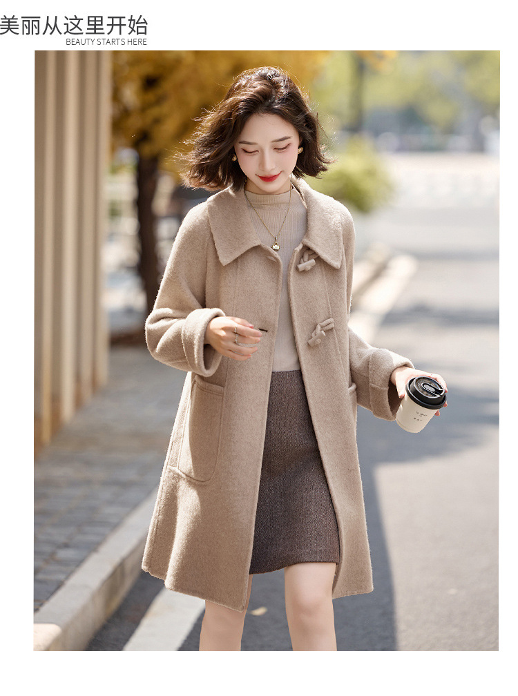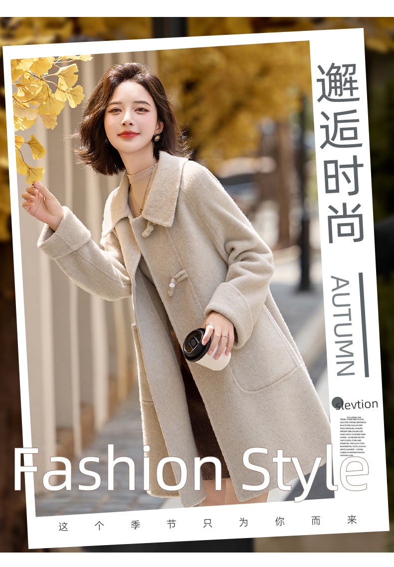 丁摩 双面羊绒大衣女中长款2024冬季新款防风保暖羊毛呢外套呢子大衣6ZF-630