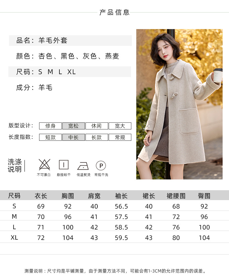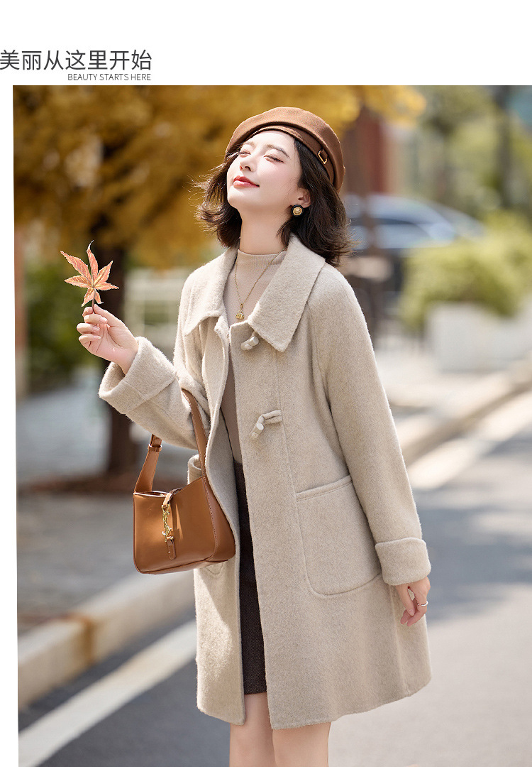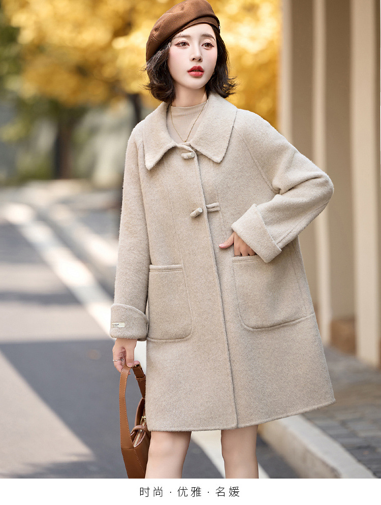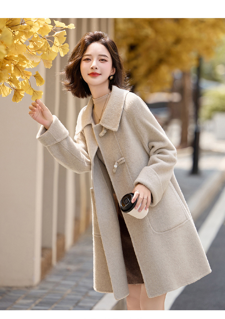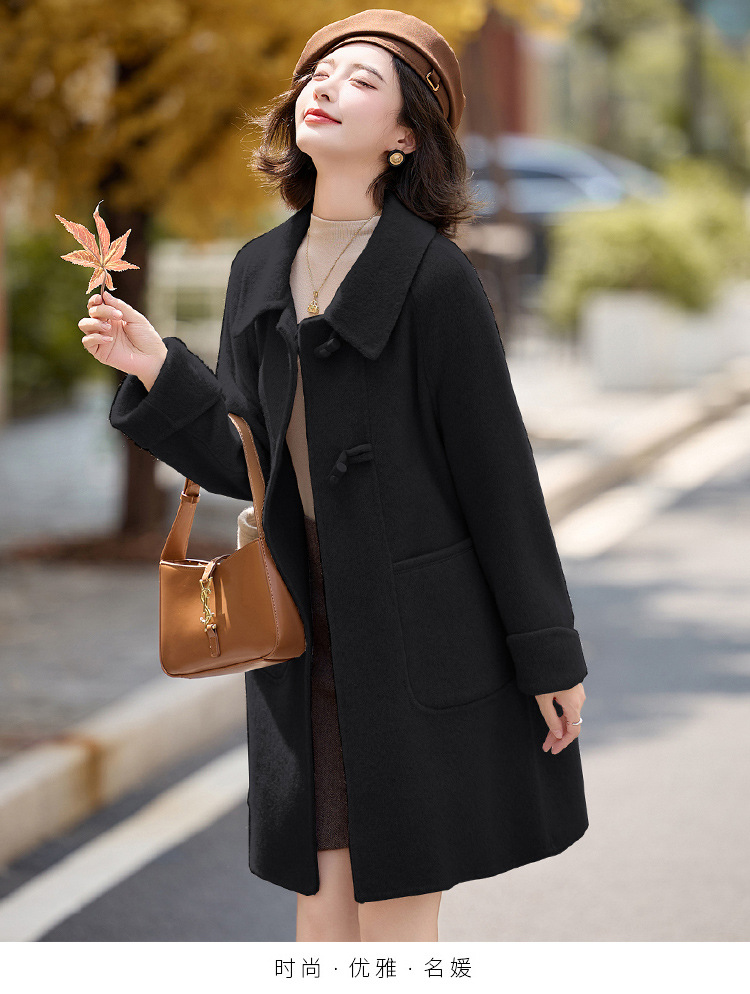 丁摩 双面羊绒大衣女中长款2024冬季新款防风保暖羊毛呢外套呢子大衣6ZF-630
