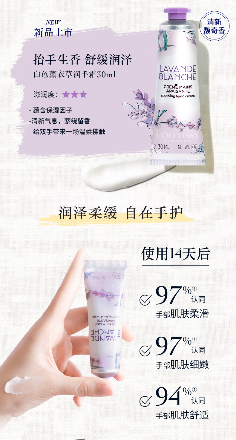 欧舒丹白色薰衣草香氛沐浴露250ml+润肤乳250ml