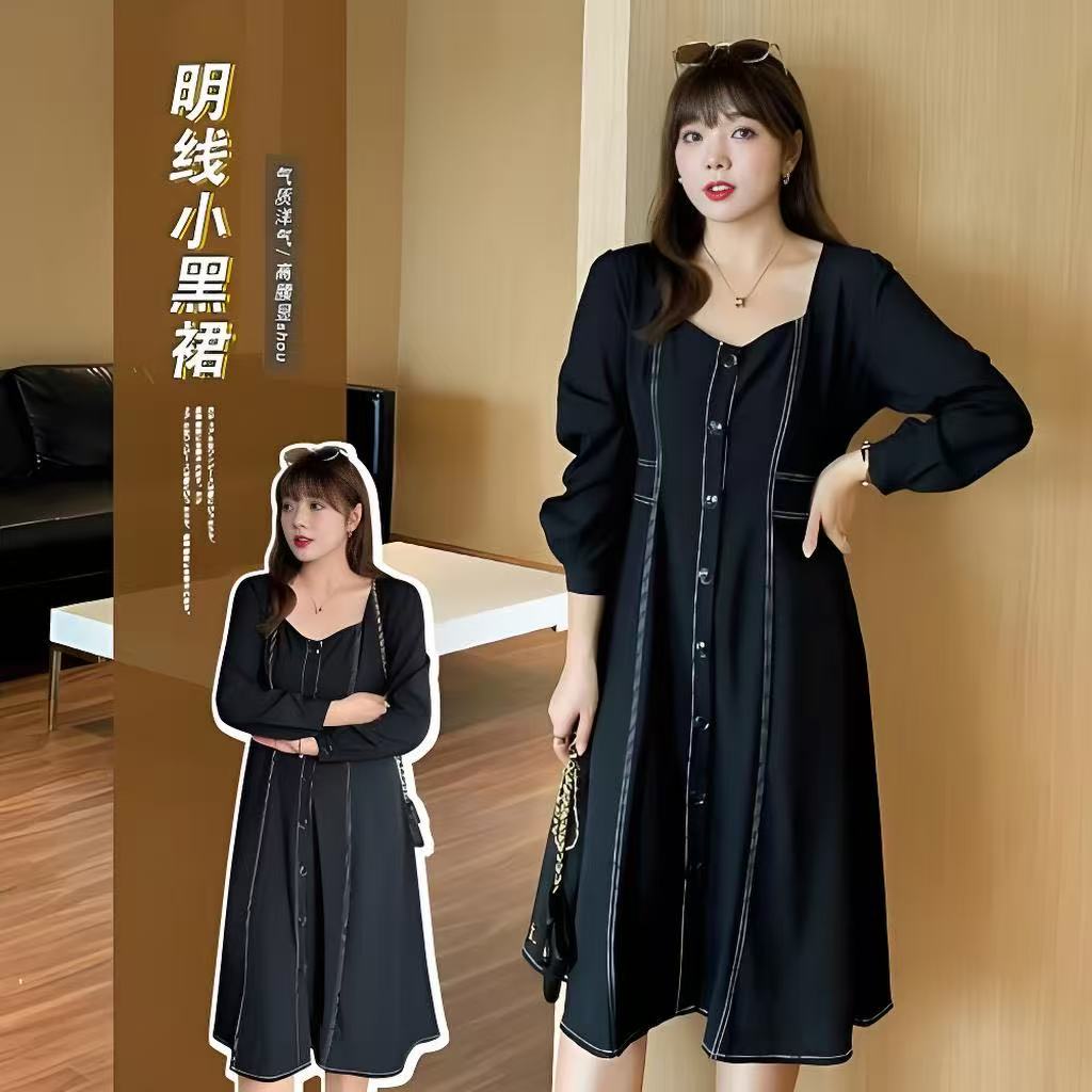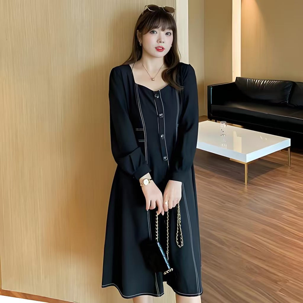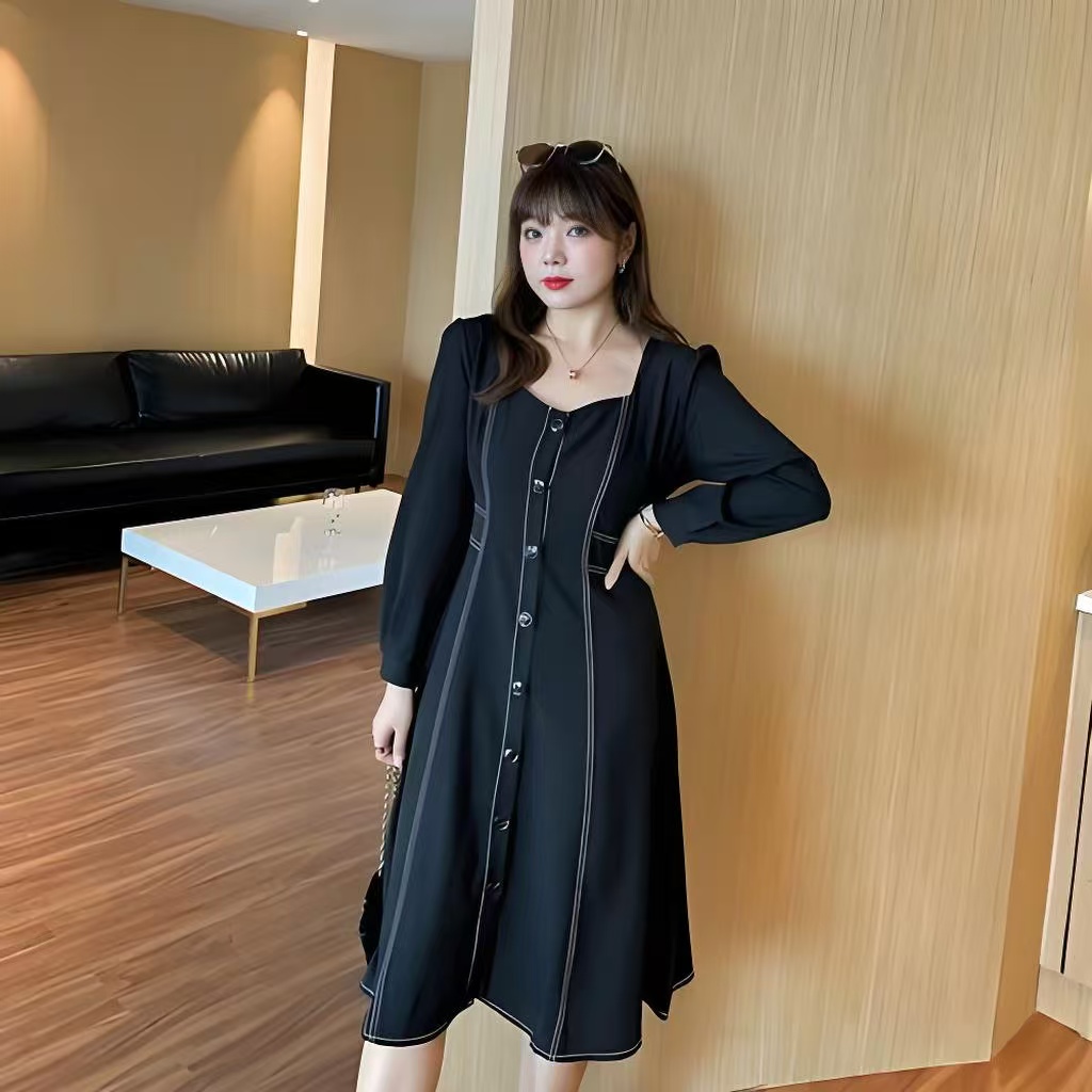 【诗铭洛可】XC7271排扣明线长袖连衣裙A15-2
