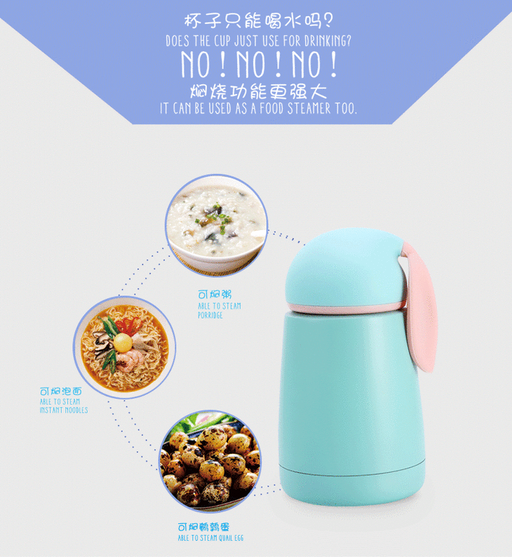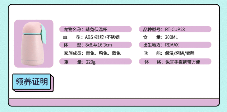 Remax可爱萌兔304不锈钢牛奶保温杯焖烧杯儿童学生卡通喝水杯冬季