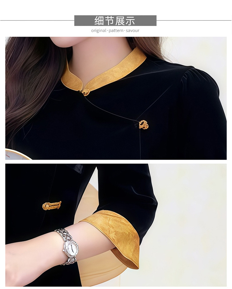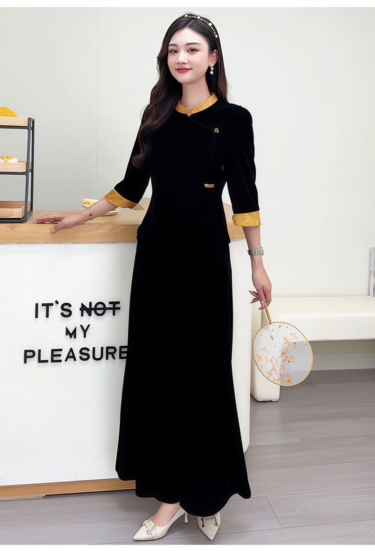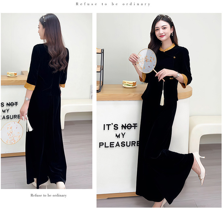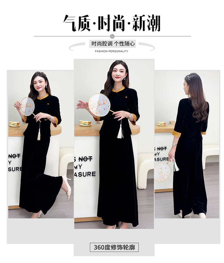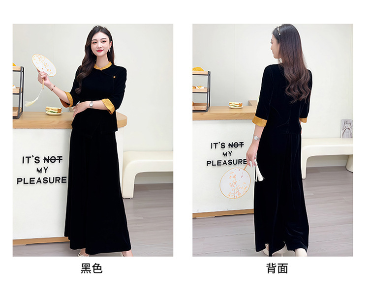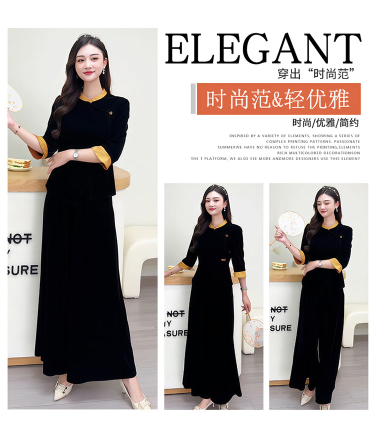 QYM AMC025-Y时尚套装妈妈洋气复古上衣+阔腿裤两件套 商品图2
