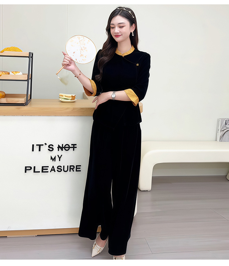 QYM AMC025-Y时尚套装妈妈洋气复古上衣+阔腿裤两件套 商品图3