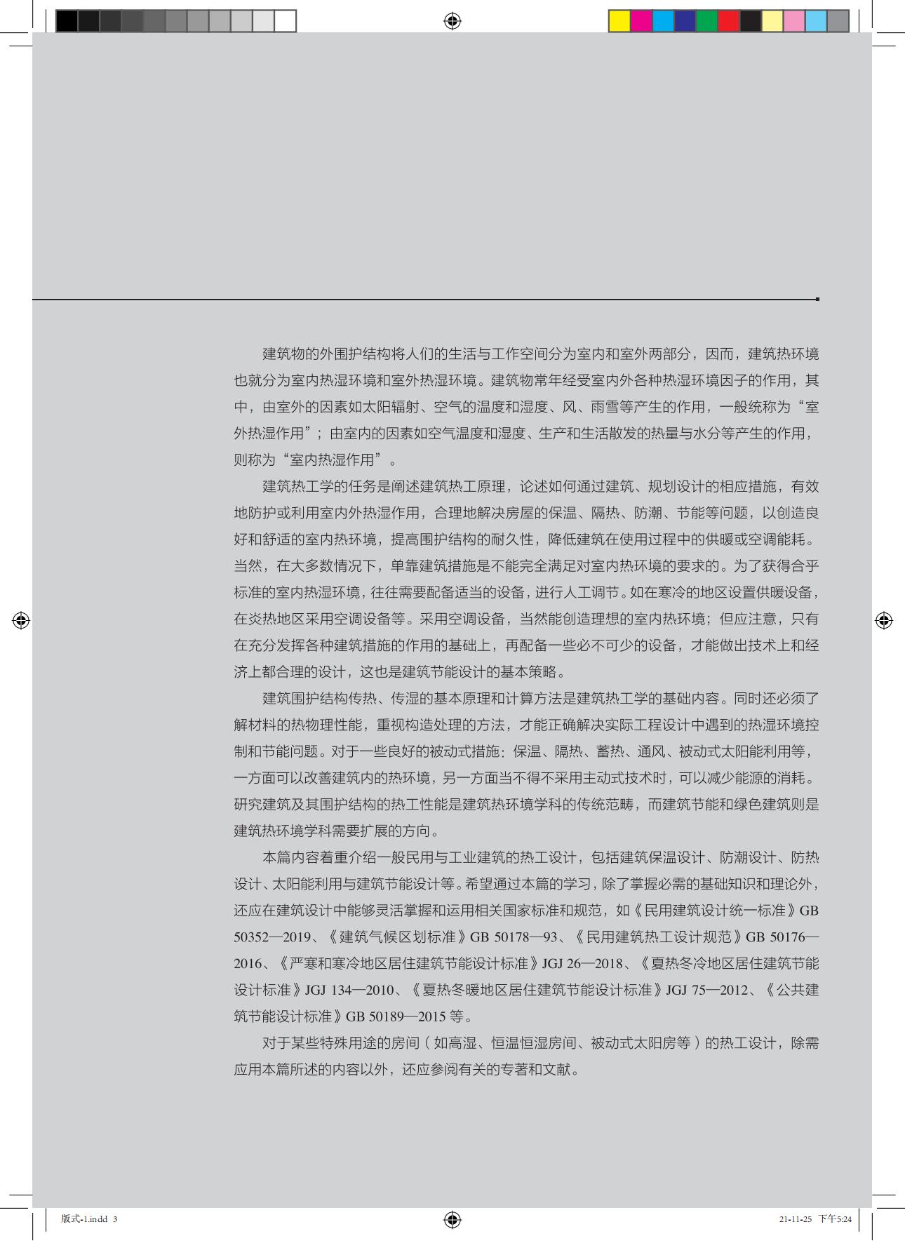 本书是住房城乡建设部土建类学科专业“十三五”规划教材,全书包括建筑热工学、建筑光学和建筑声学三大部分共17章,包括基本原理与应用实例等,内容丰富详实。第五版是根据近年建筑领域兴起的绿色建筑研究和实践对第四版修订而成。特别注重了与现行相关建筑设计规范的衔接和引入建筑技术科学领域的前沿成果,进一步提高了教材内容的科学性和先进性;增加了近年的工程案例,保证了教材的时效性,更加符合建筑学专业学生的接受能力和从事环境设计的需要。本书为全国高校建筑学、城乡规划专业的选用教材,可作为全国注册建筑师考试的参考用书,也可供与建筑业有关的设计、施工等技术人员使用。