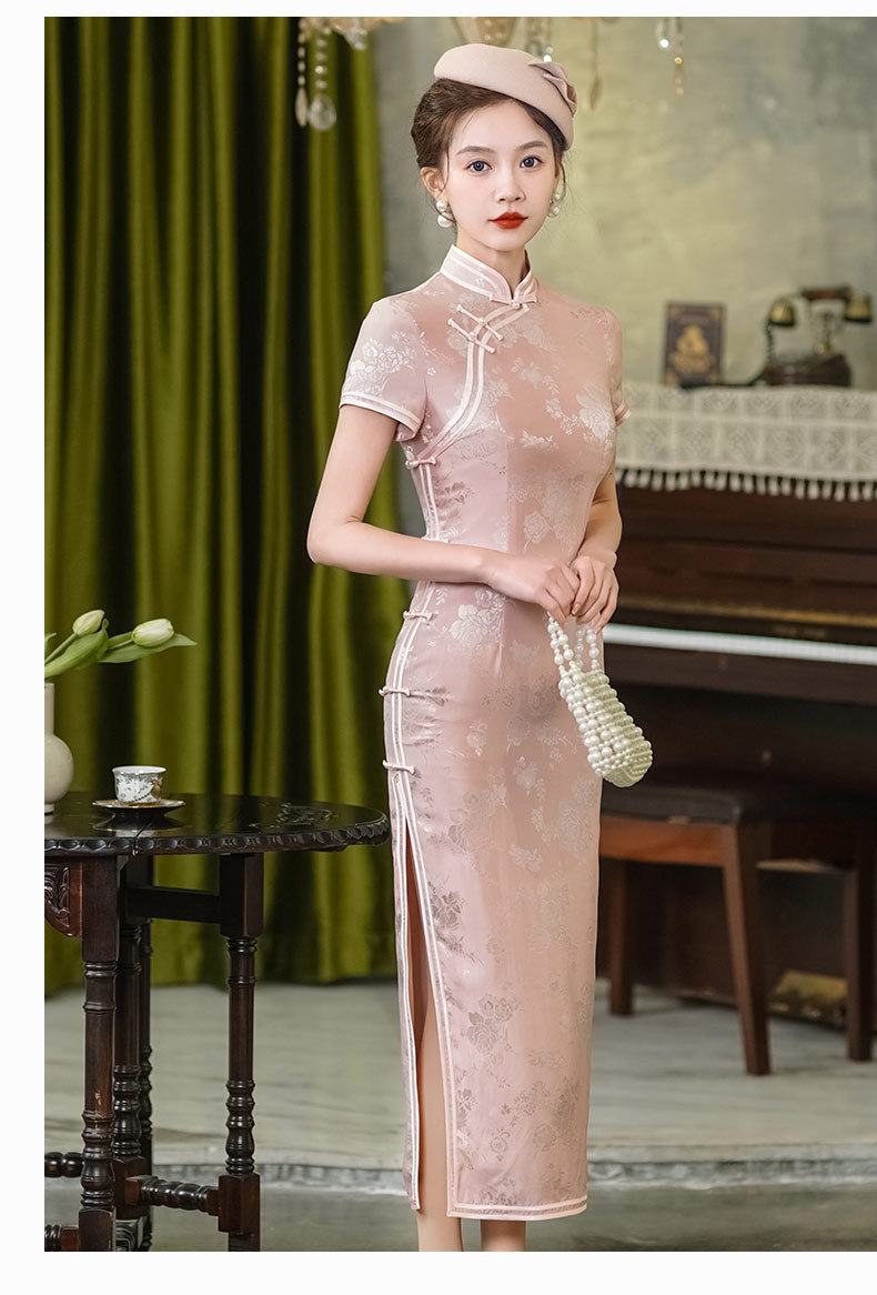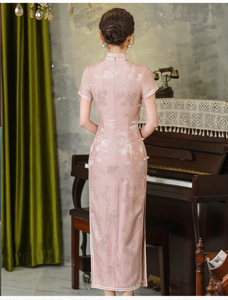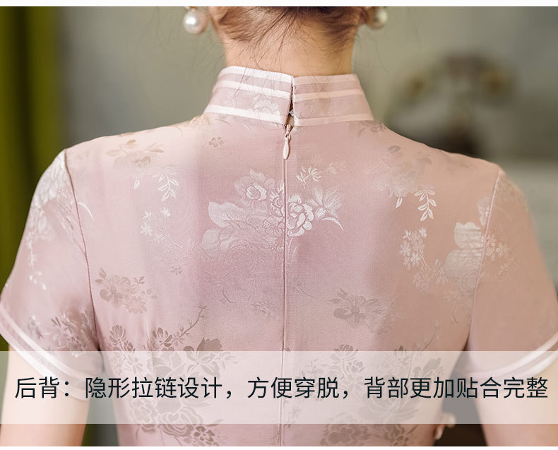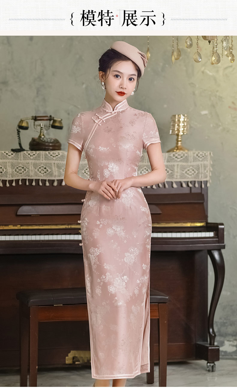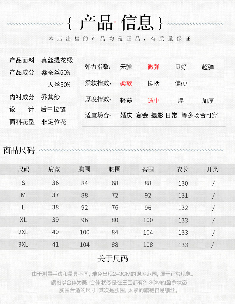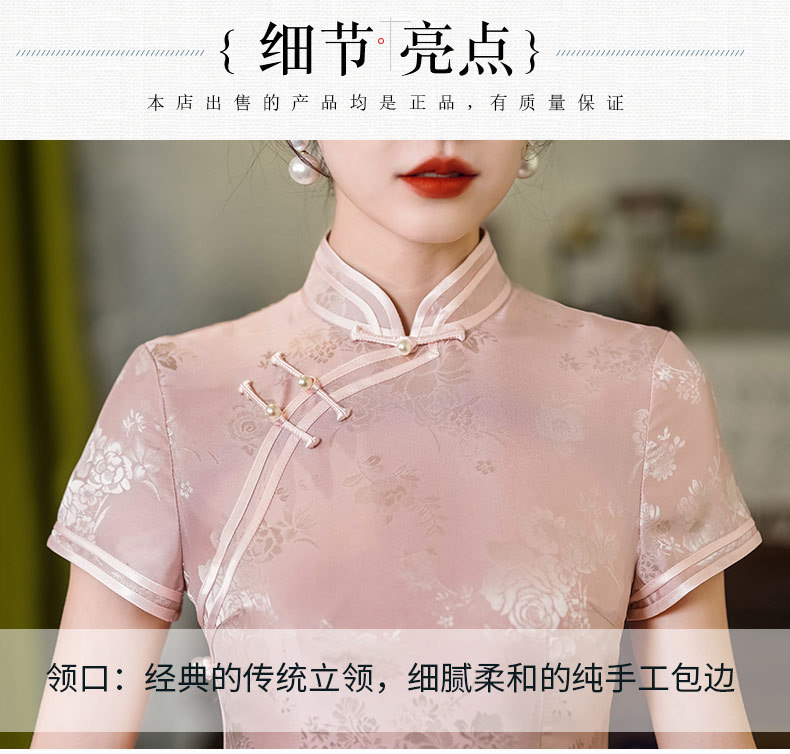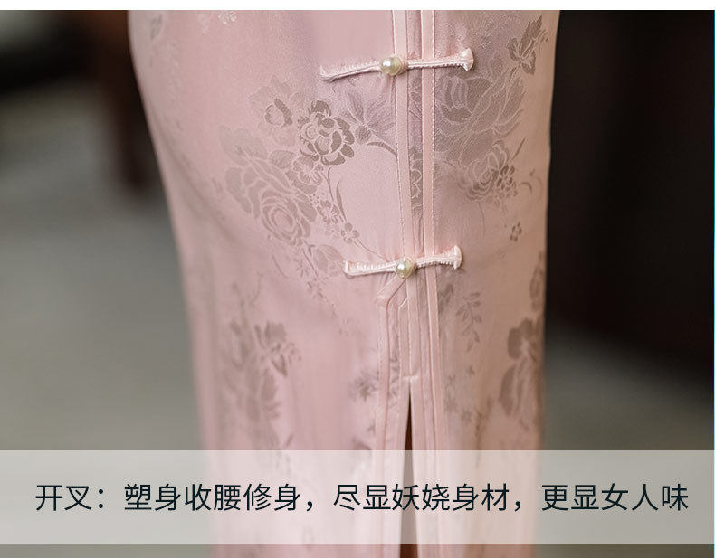 WX-新款真丝旗袍手工缝制高端气质长款改良版桑蚕丝修身礼服日常